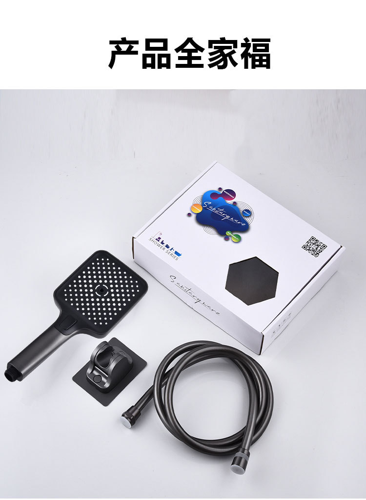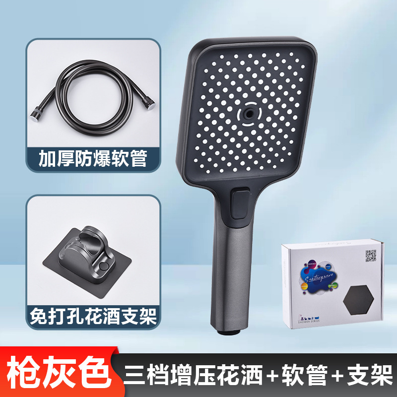 • 스퀘어 [건그레이 패키지] 3단 슈퍼차저 샤워 + 1.5m 호스 + 브라켓
