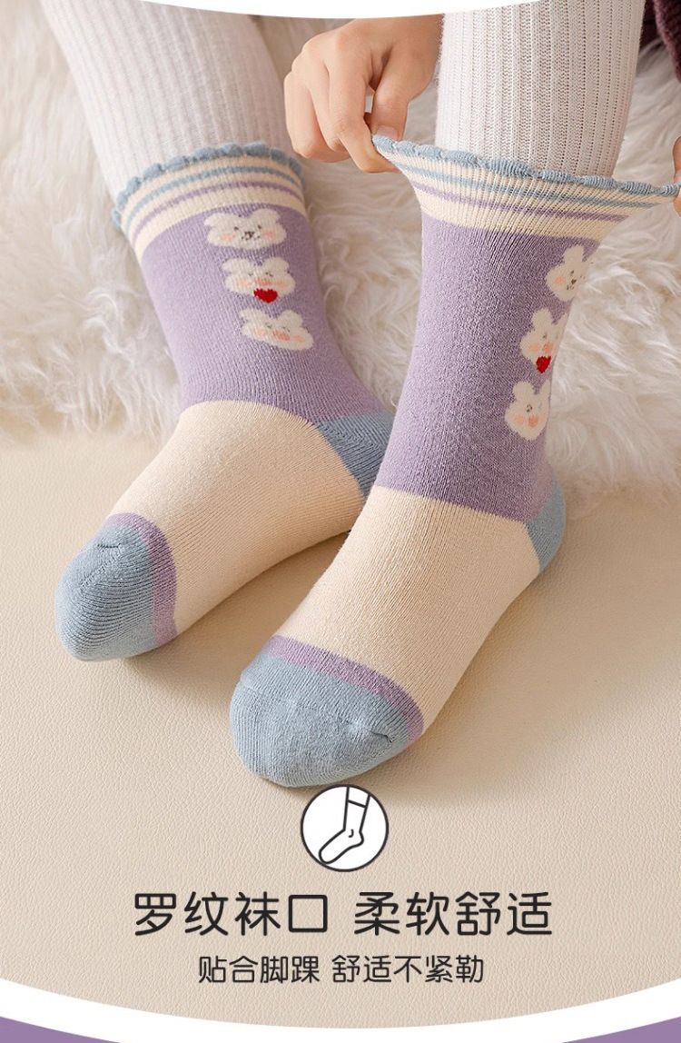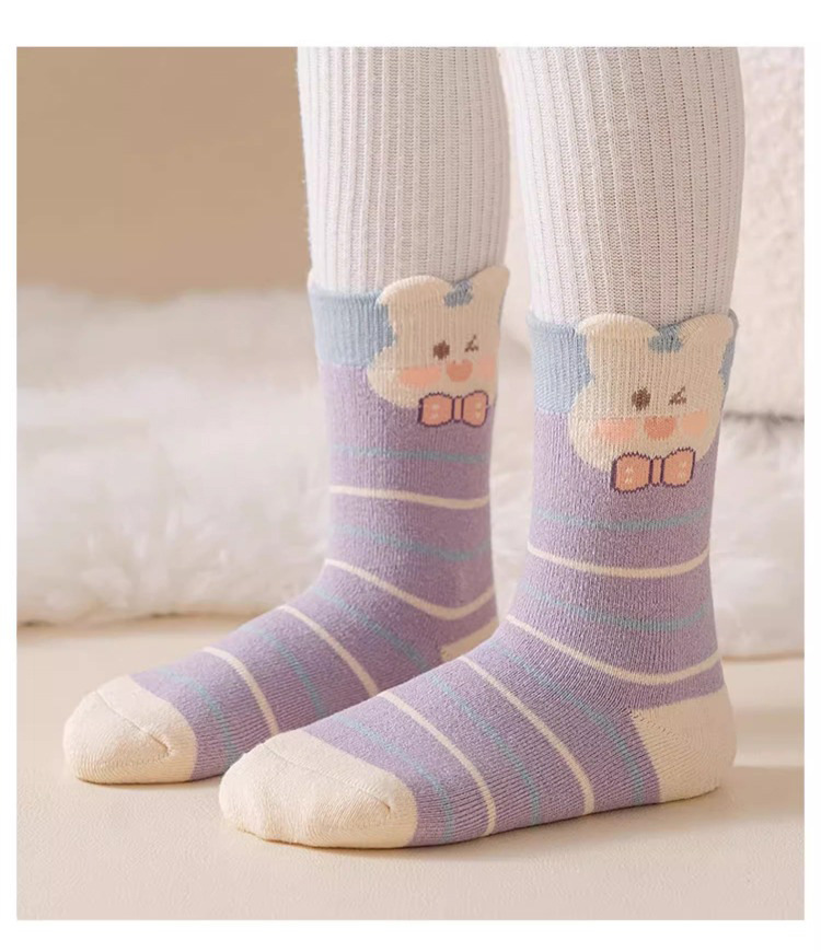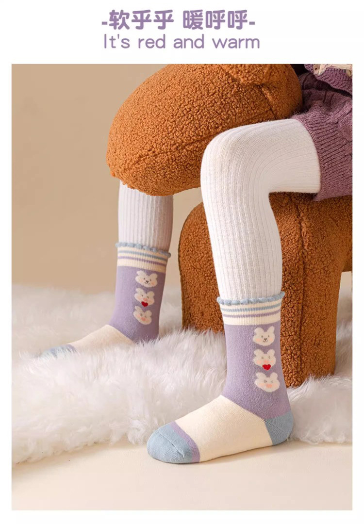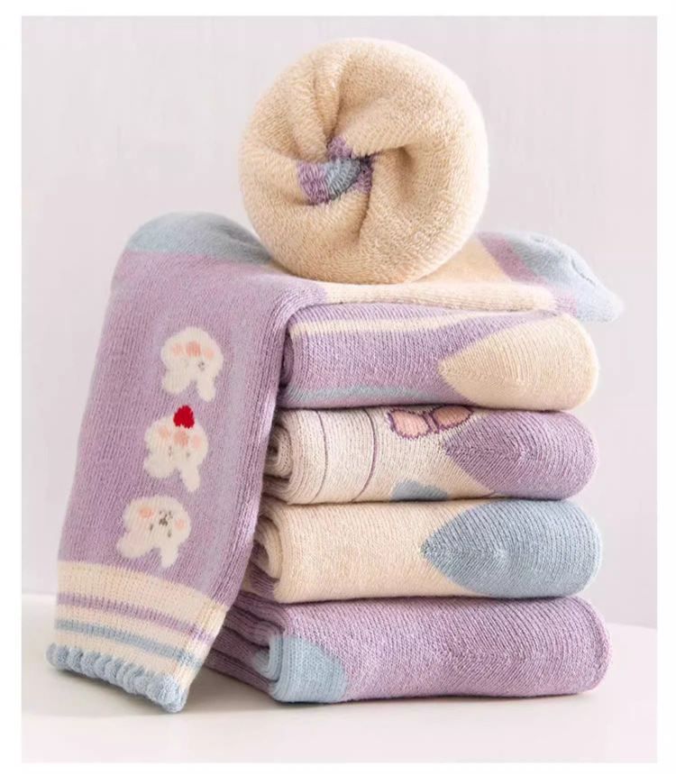 [직접] 여자 두꺼운 양말 겨울 두꺼운 어린이 양말 가을과 겨울 어린이 긴 테리 양말 기모
