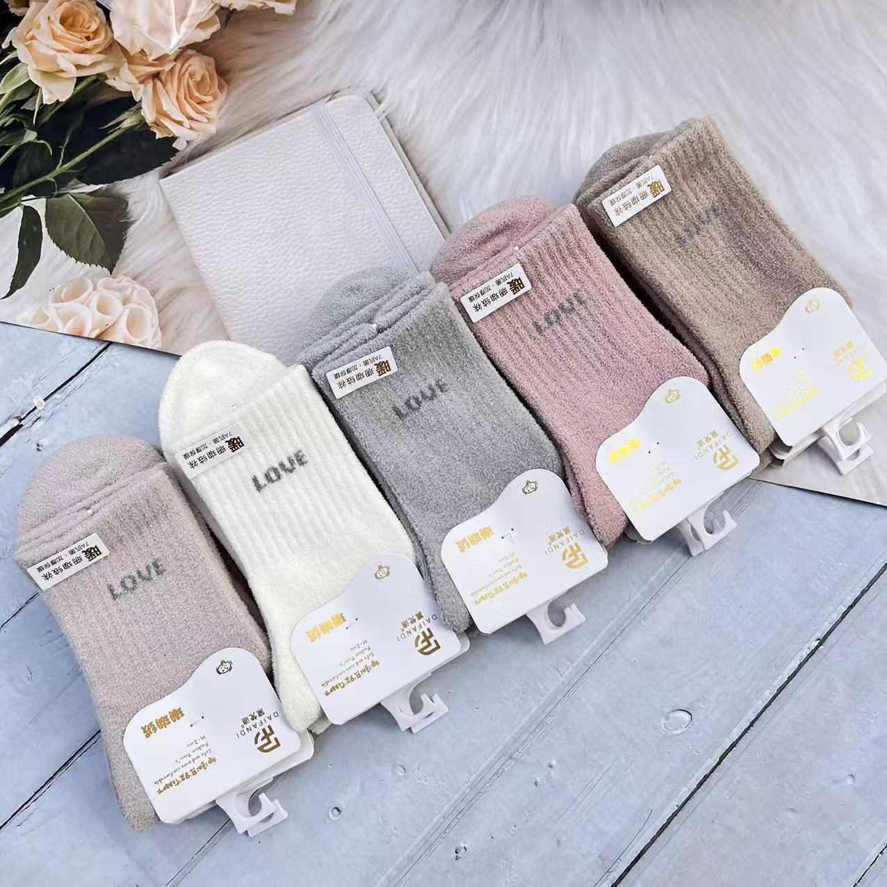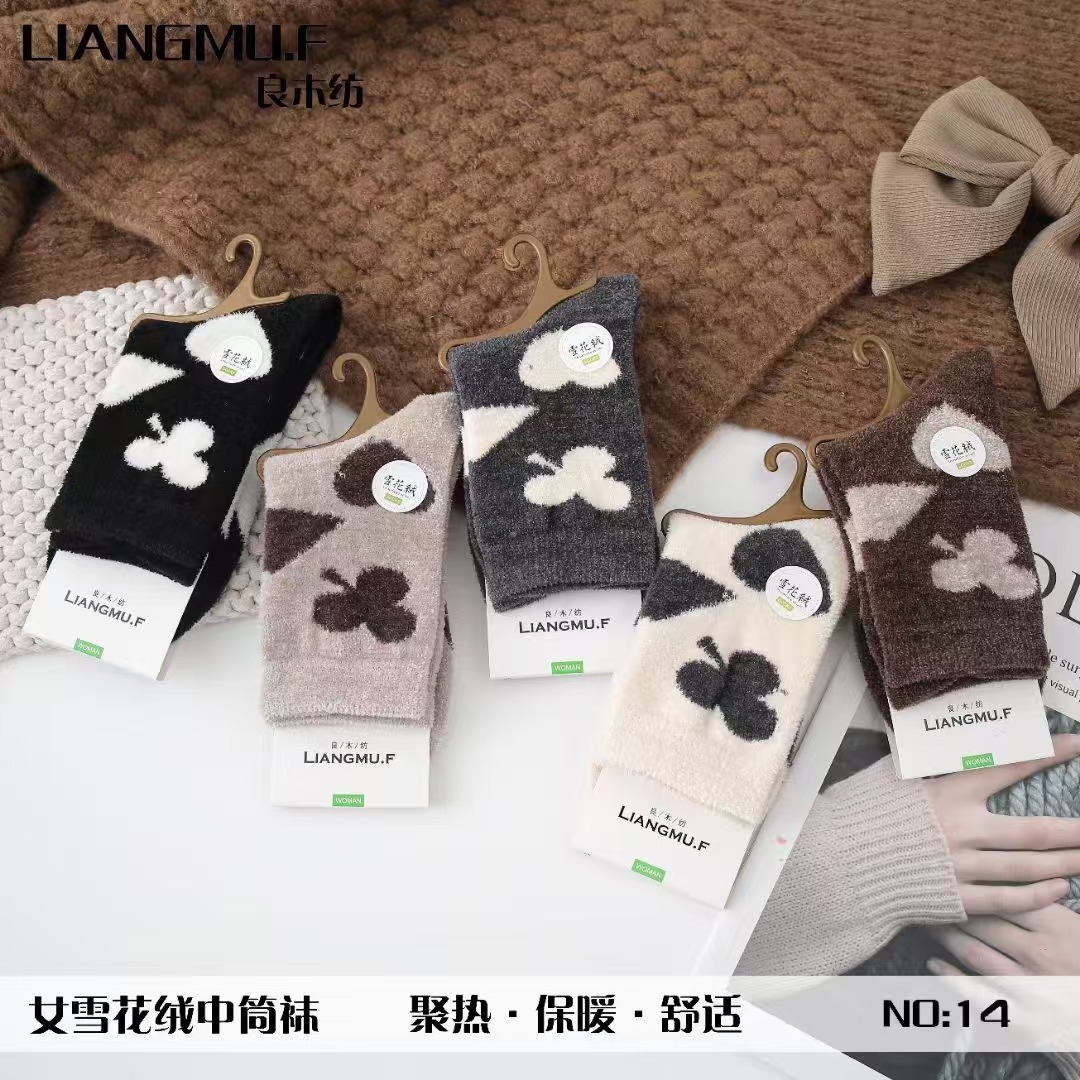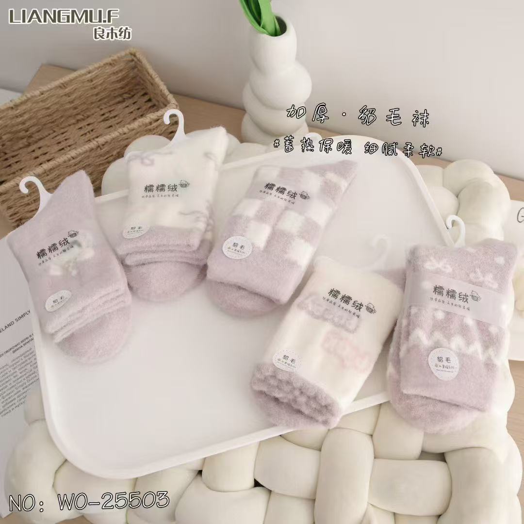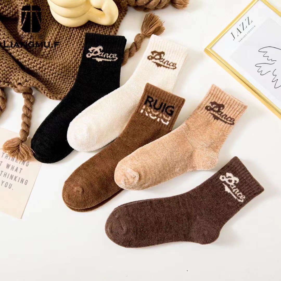 량무팡 두꺼운 산호양털 양면 알파카 양털 양말 여성용 중목 양말 겨울용 두꺼운 양털 양말 털이 많은 산후 양말스토어 가기