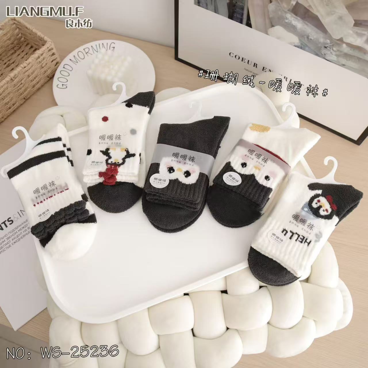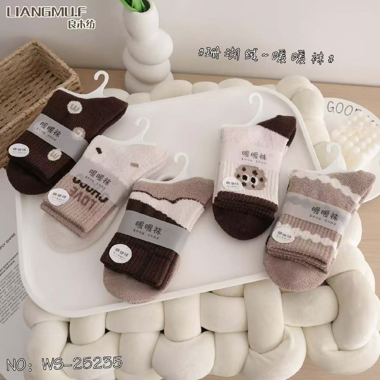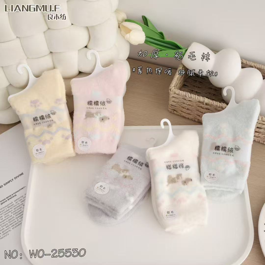 량무팡 두꺼운 산호양털 양면 알파카 양털 양말 여성용 중목 양말 겨울용 두꺼운 양털 양말 털이 많은 산후 양말스토어 가기