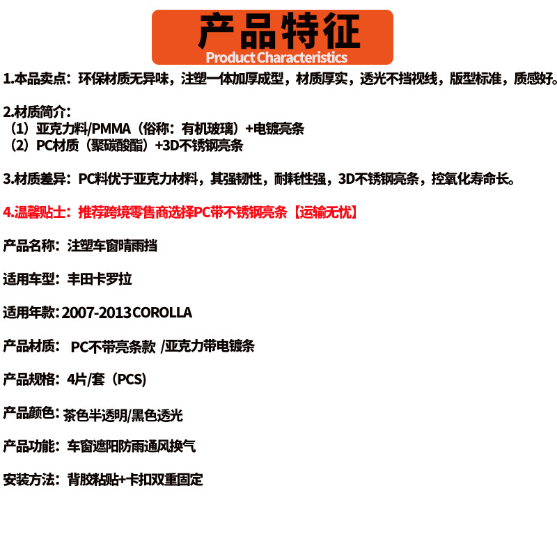 Toyota Corolla 레인 쉴드 2007-13toyotacorollaWindow 바이저 비 눈썹에 적합스토어 가기