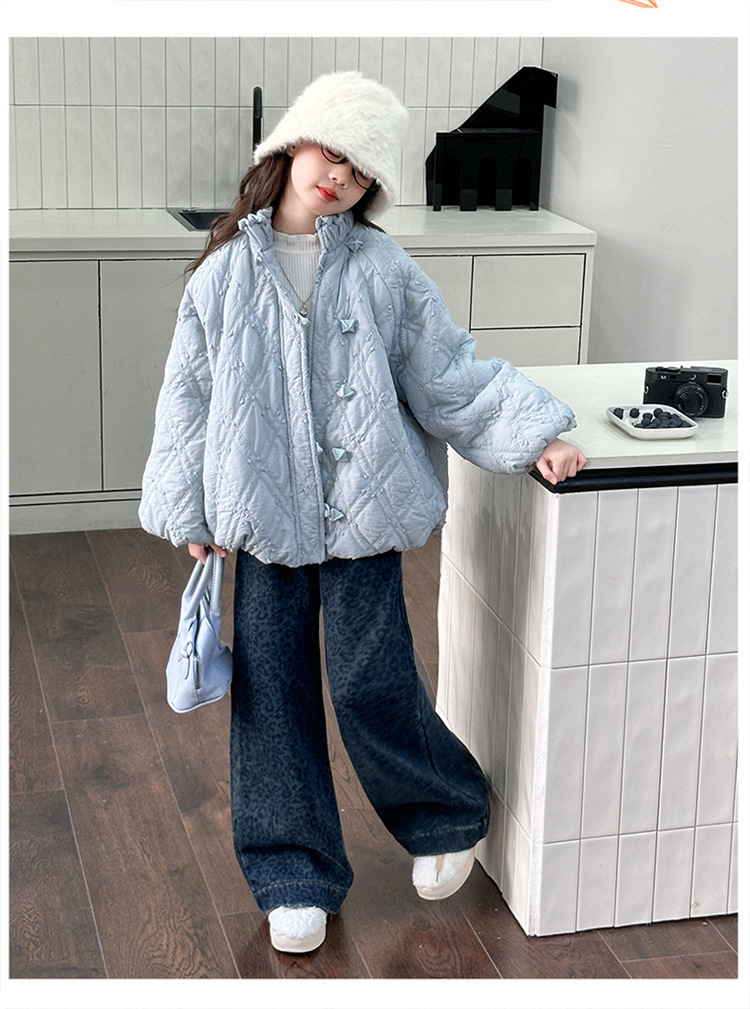 여자 면화 패딩 재킷 코트 2024 겨울 새로운 스타일 소녀 기모 패딩 버드 칼라 빵면 패딩 코트스토어 가기