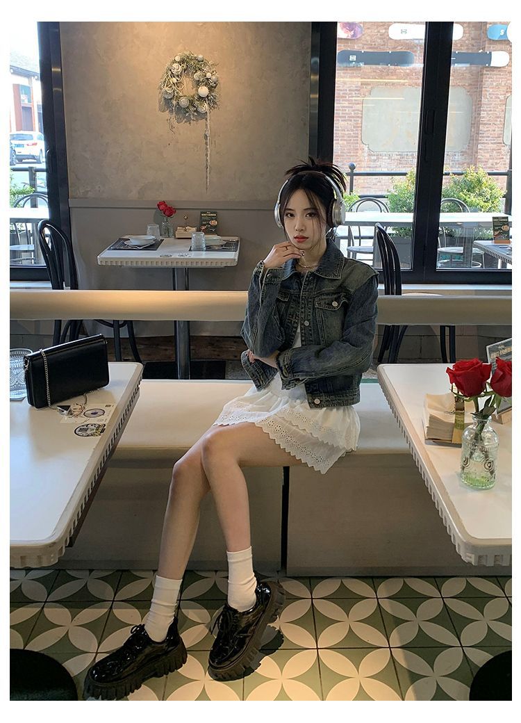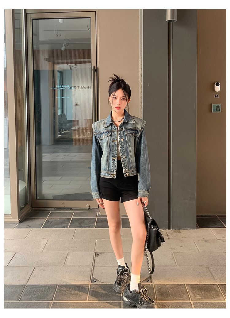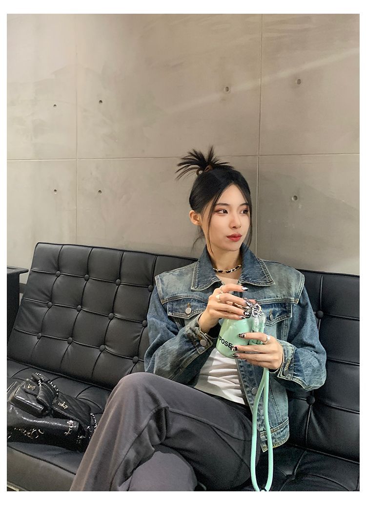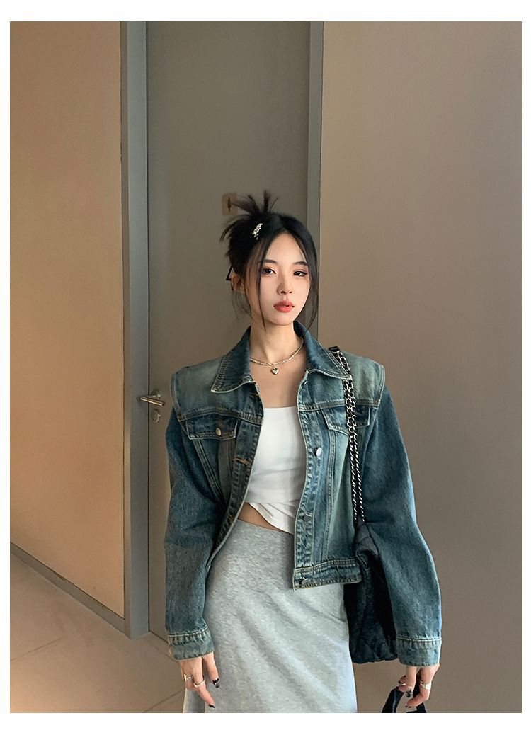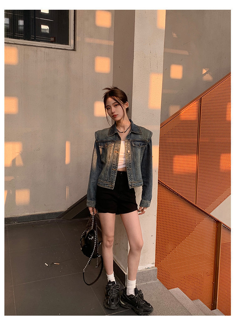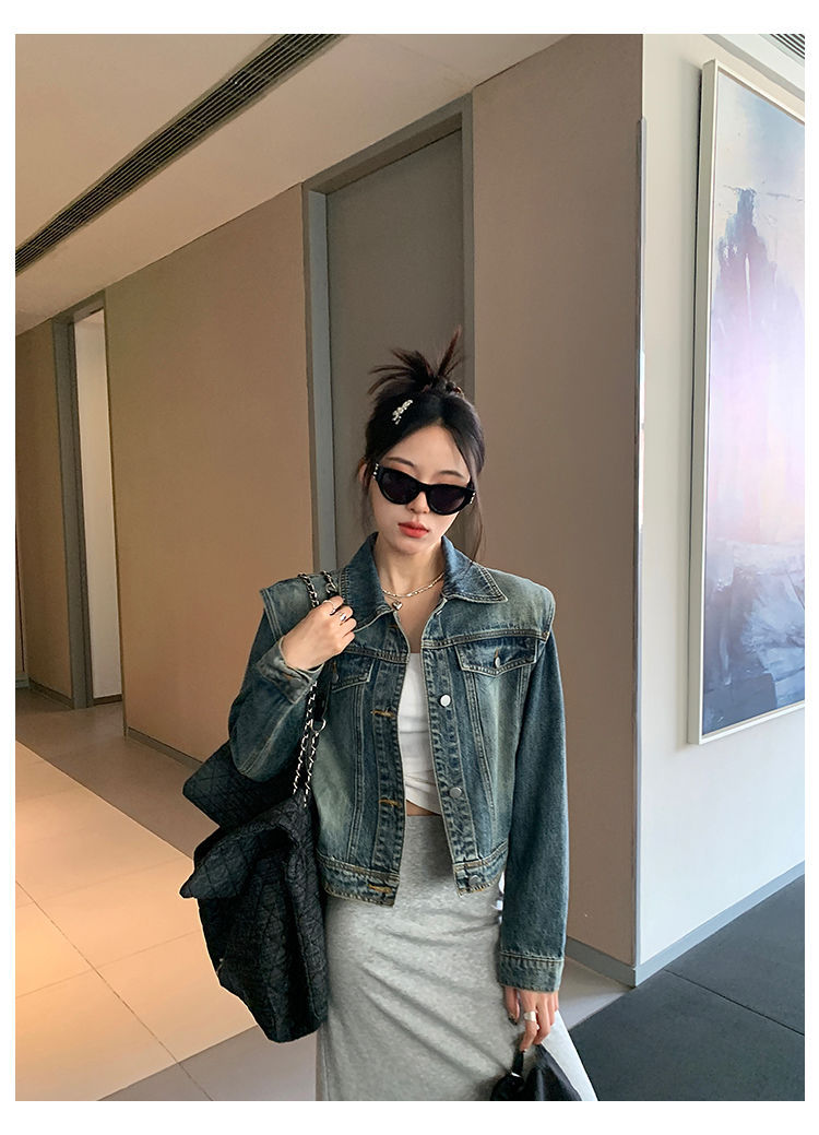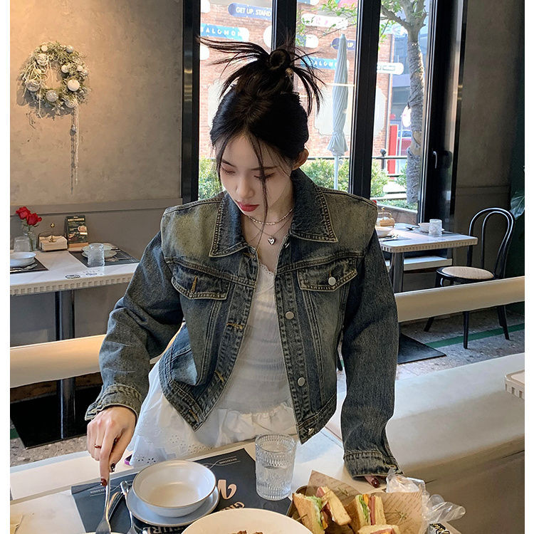 아메리칸 스타일 레트로 쇼트 데님 재킷 여성의 봄 새로운 세탁 디자인 센스 루즈 에이지 감소 올 매치 탑 재킷스토어 가기