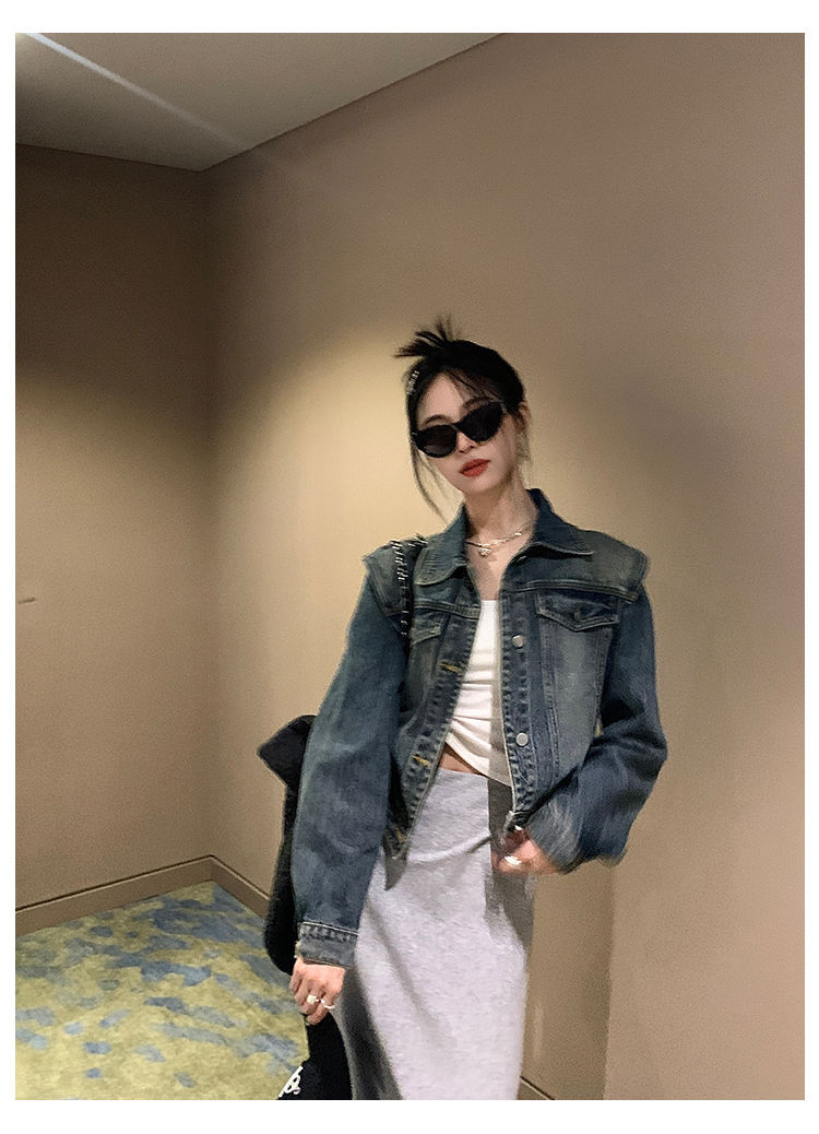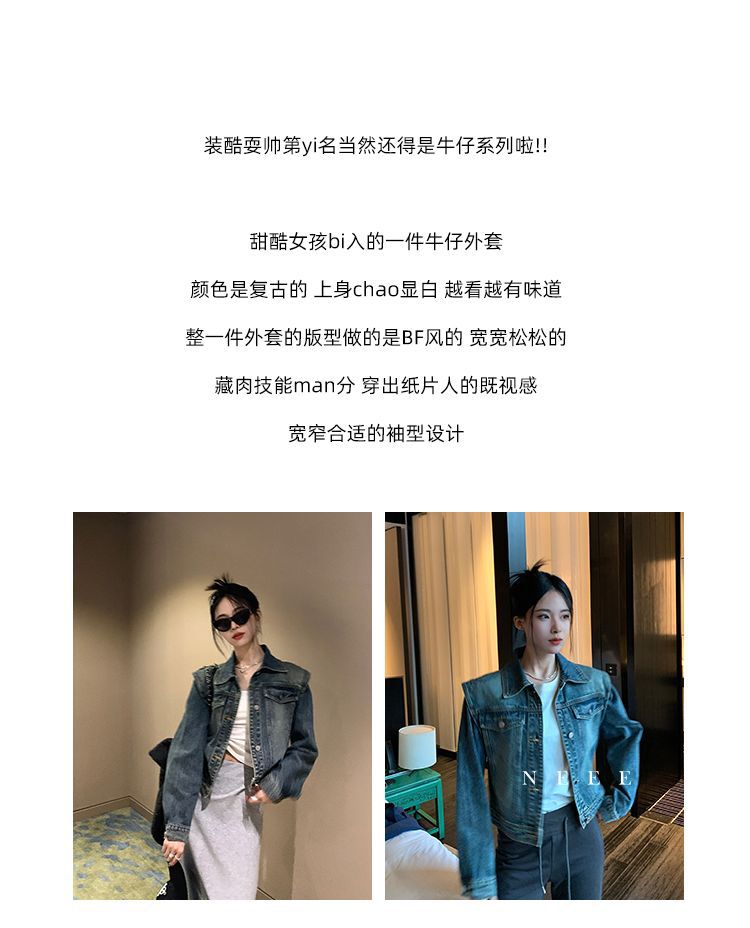 아메리칸 스타일 레트로 쇼트 데님 재킷 여성의 봄 새로운 세탁 디자인 센스 루즈 에이지 감소 올 매치 탑 재킷