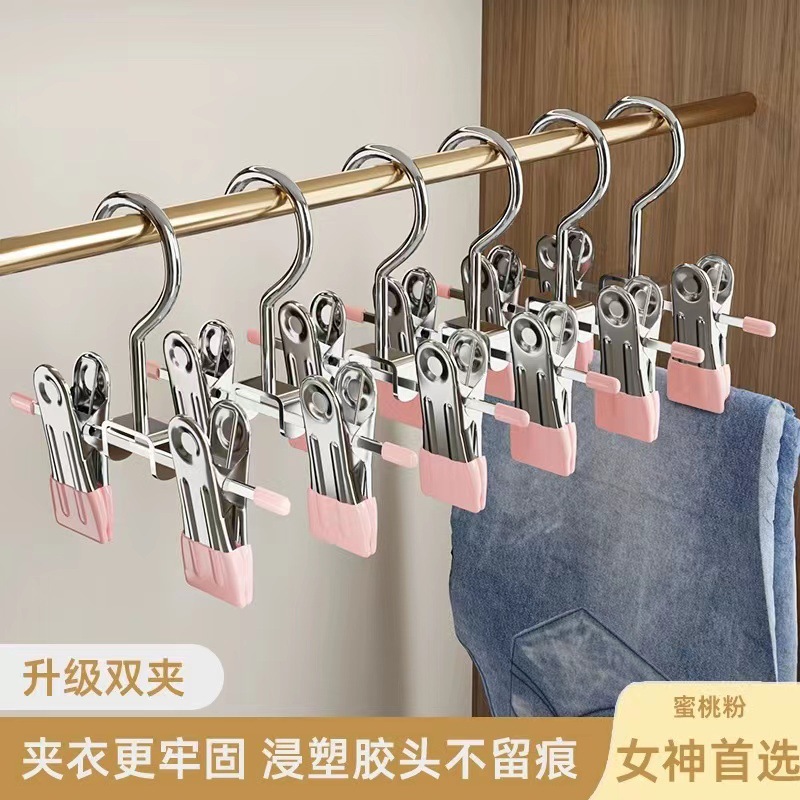 바지 클립 가정용 tracless 스테인레스 스틸 다기능 스커트 후크 바지 저장 아티팩트 단일 클립 옷걸이스토어 가기