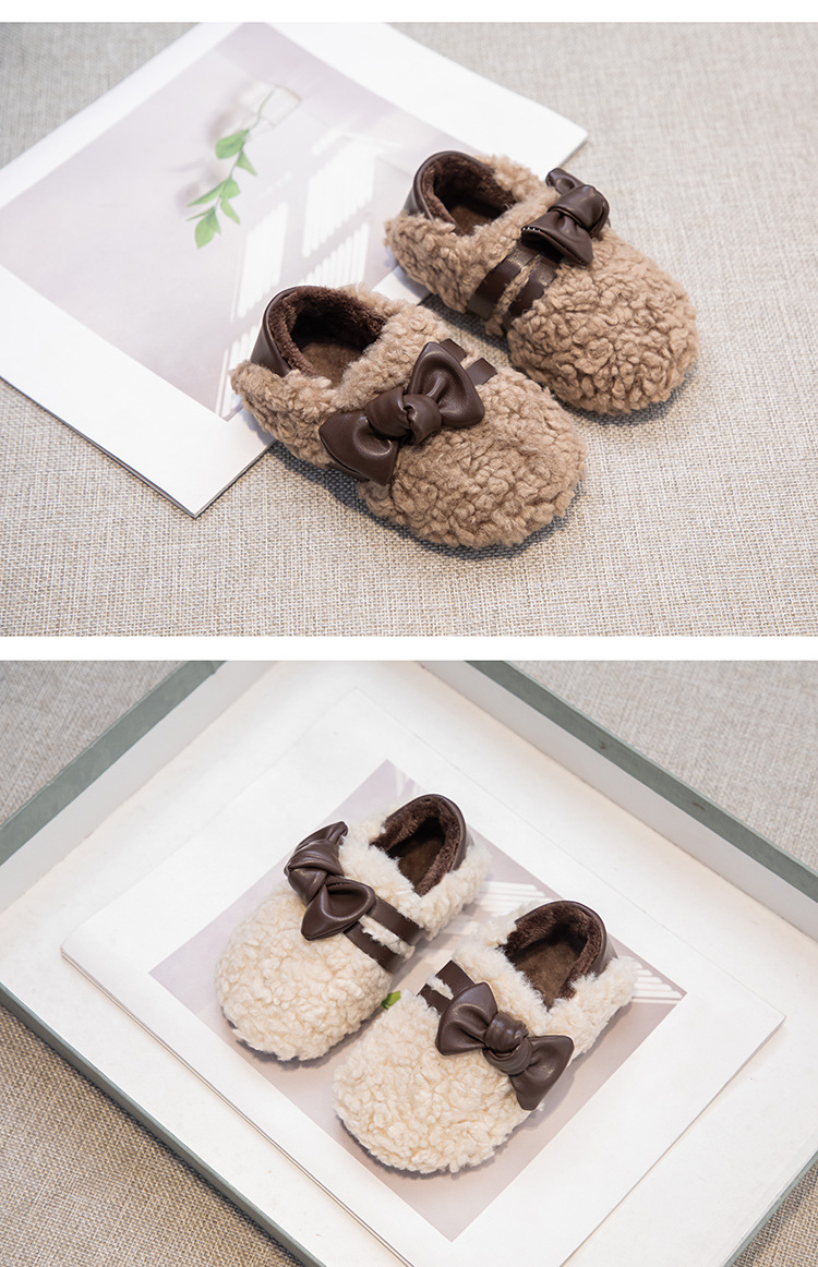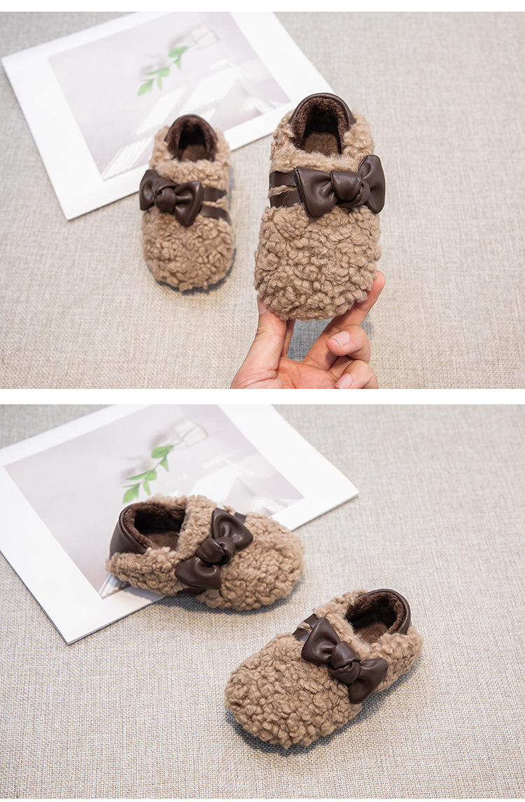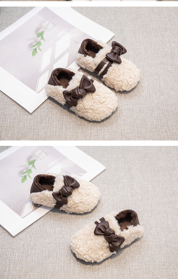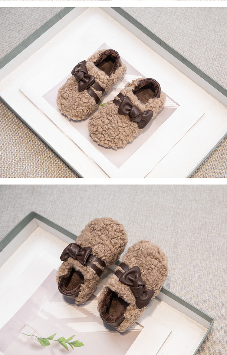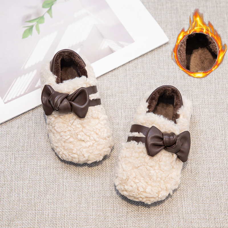 아동 패션 리본 2025 가을 겨울 신상 플러스 벨벳 보온 면화 신발 여성용 슬립온 두꺼운 밑창 패션 털신스토어 가기