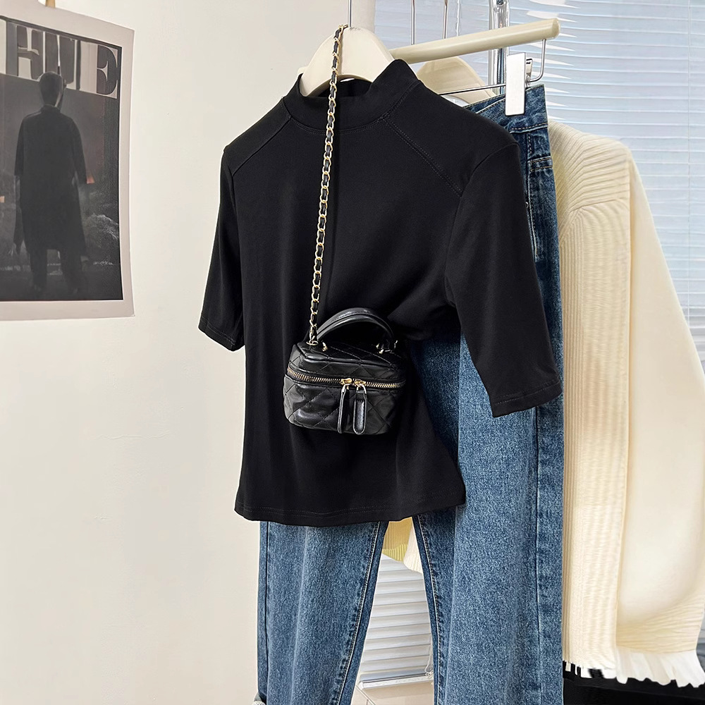 이른 가을 새로운 독일 벨벳 티셔츠 여성용 하프 슬리브 내부 슬림베이스 셔츠 올 매치 솔리드 컬러 미들 슬리브 탑