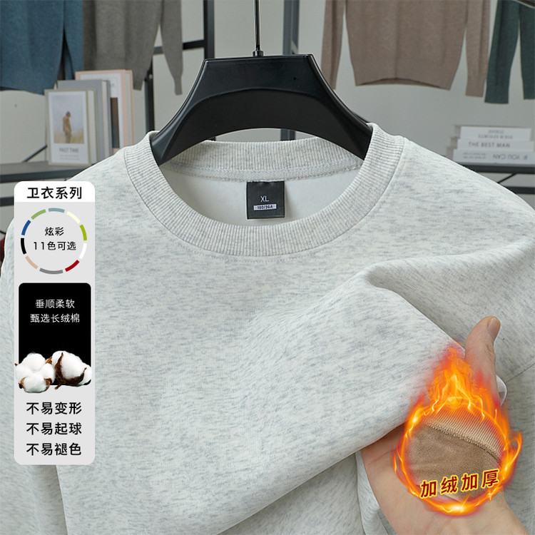 420g 헤비 코튼 스웨터 2024 가을/겨울 새 기모 두꺼운 따뜻한 긴 소매 티셔츠 남성용 크루 넥베이스 셔츠스토어 가기