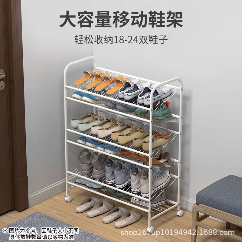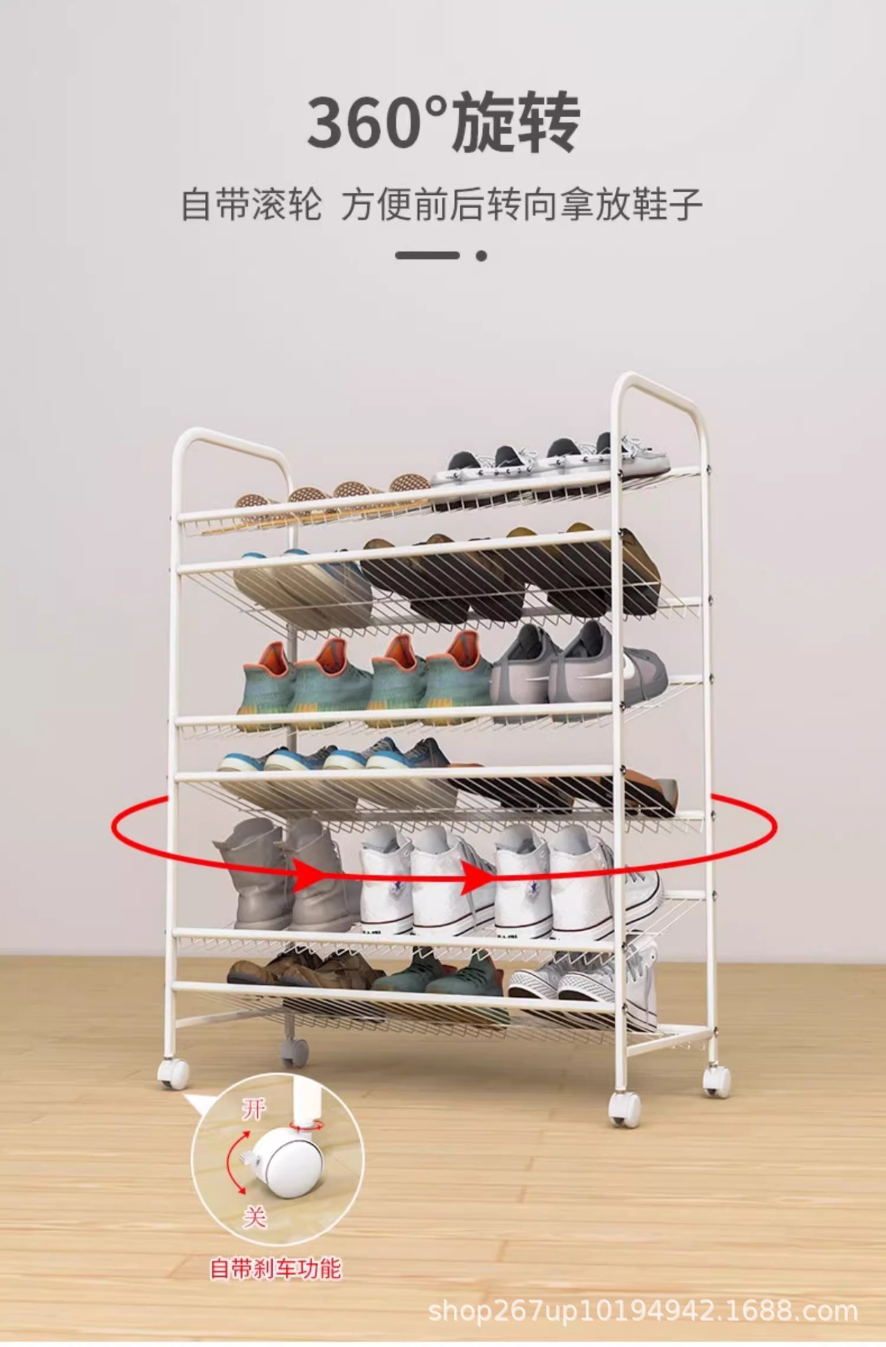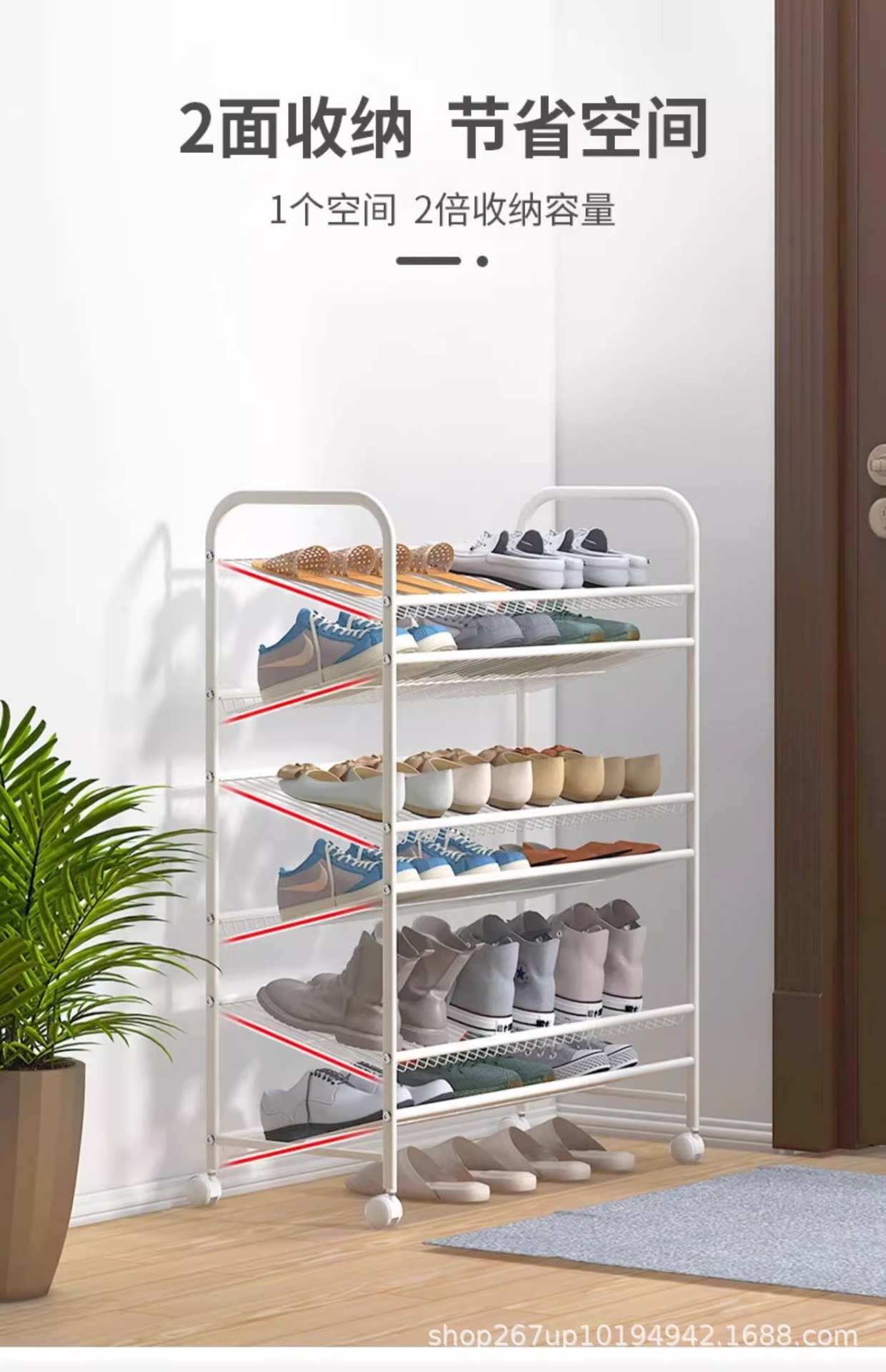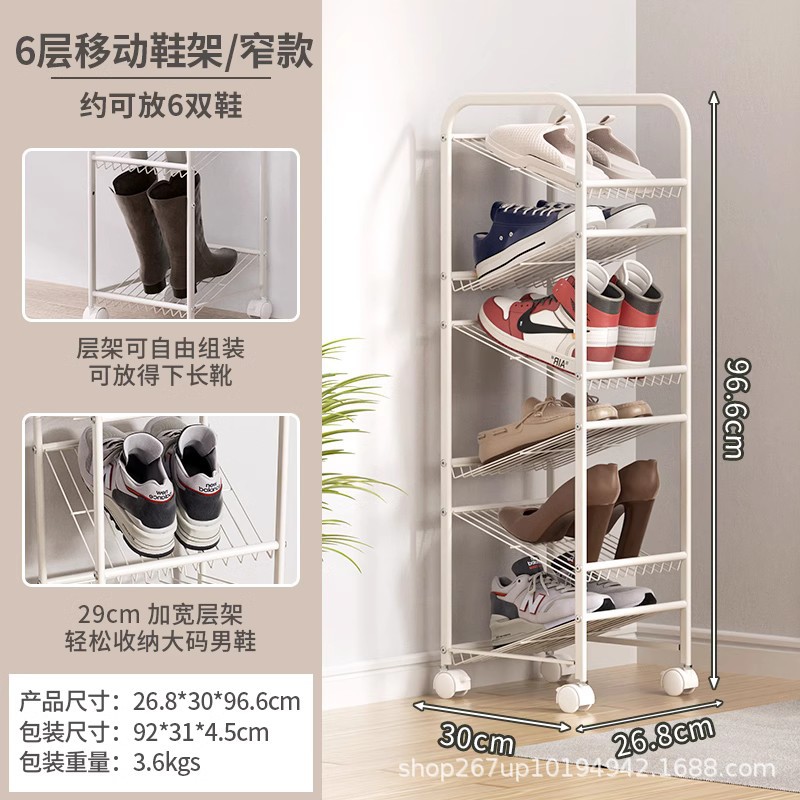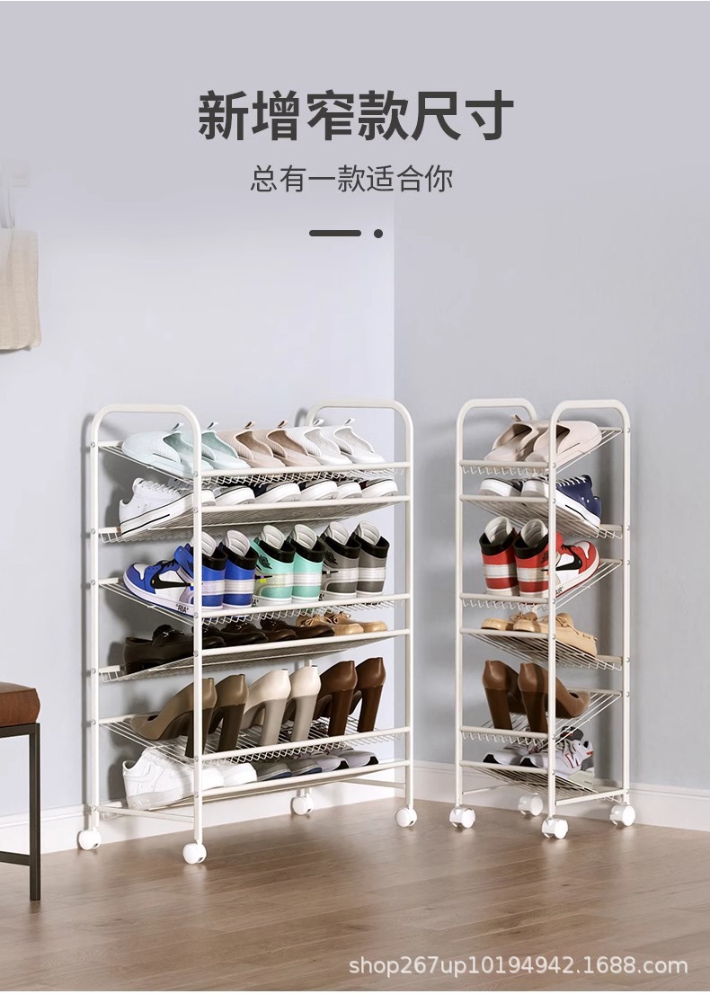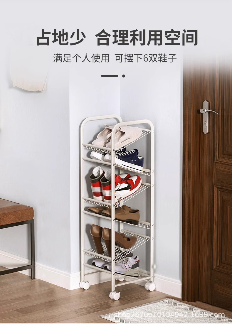 롤러가있는 신발 랙 이동식 아이언 신발 캐비닛 좁은 출입구 좁은 출입구 렌탈 하우스 스토리지 랙 양면
