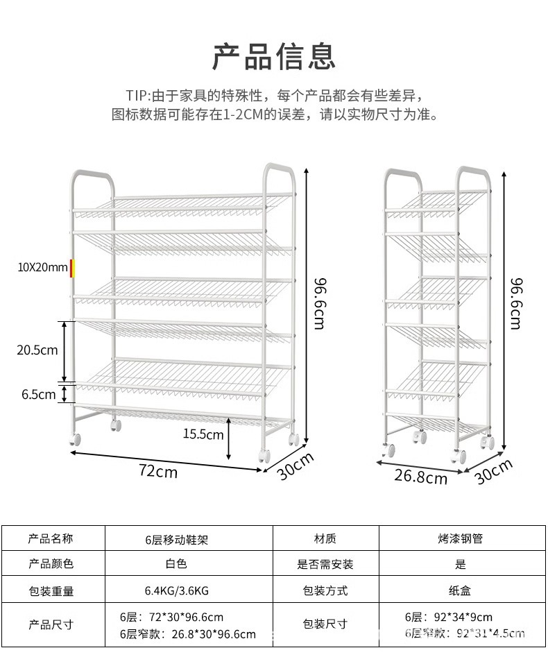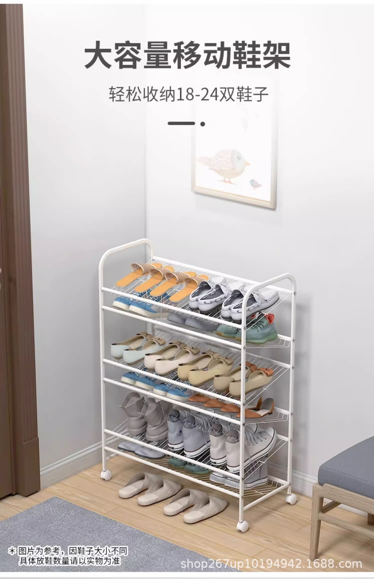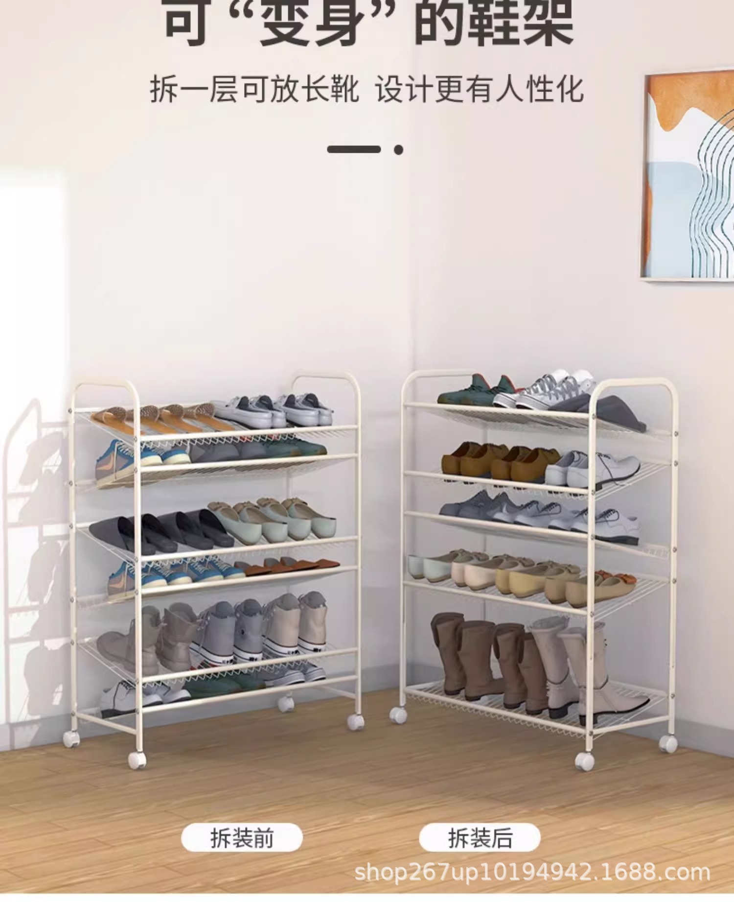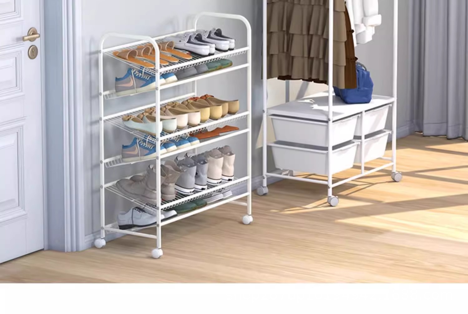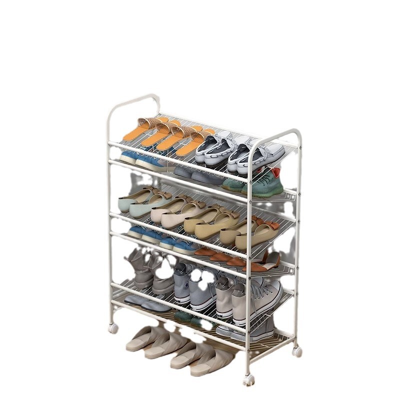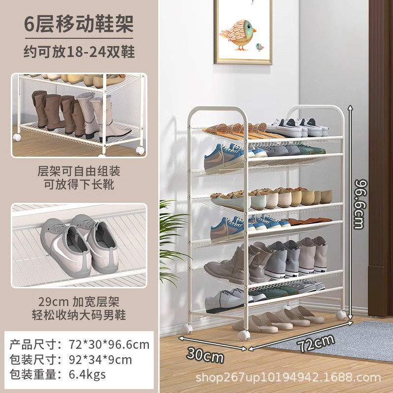 롤러가있는 신발 랙 이동식 아이언 신발 캐비닛 좁은 출입구 좁은 출입구 렌탈 하우스 스토리지 랙 양면