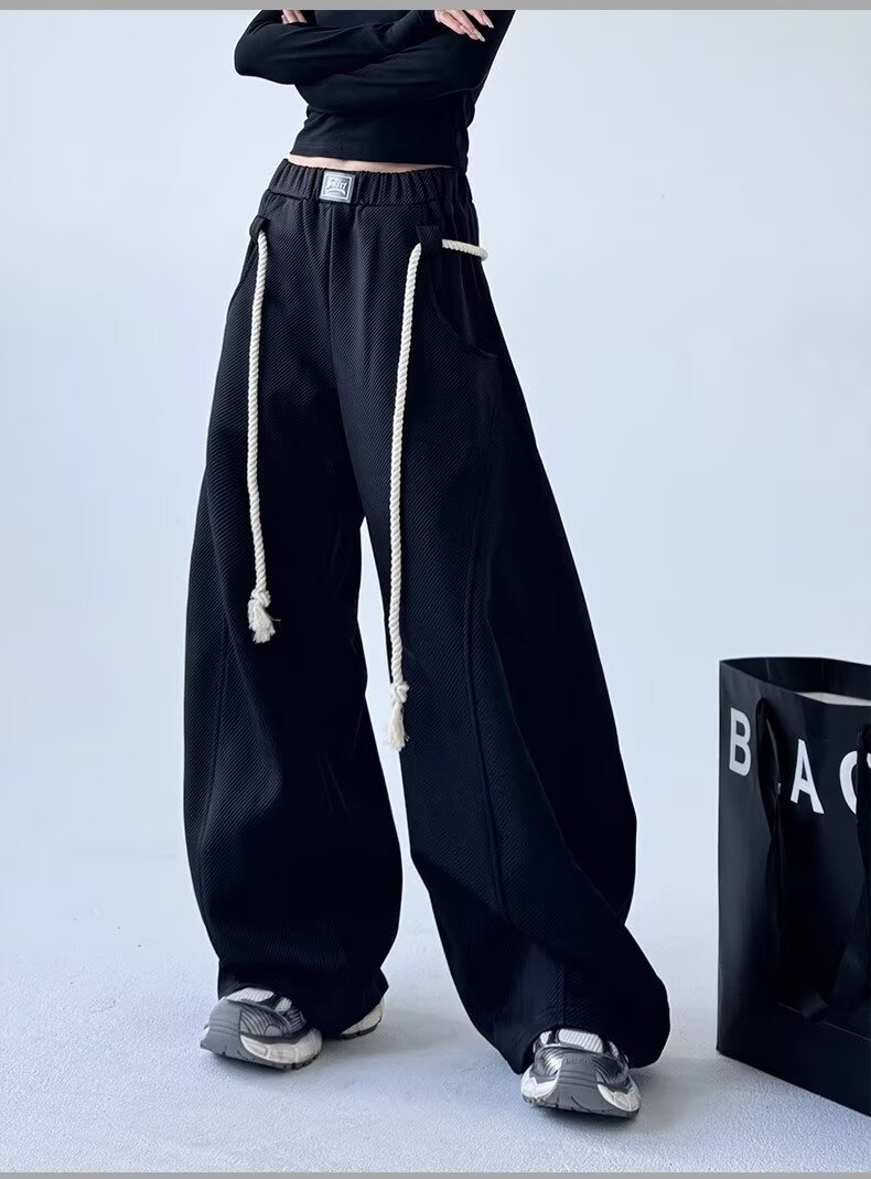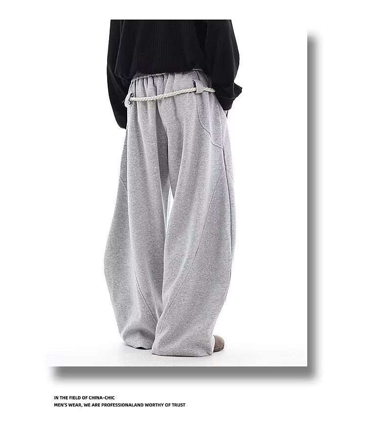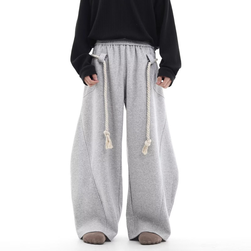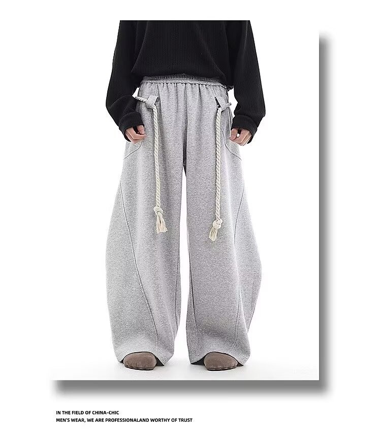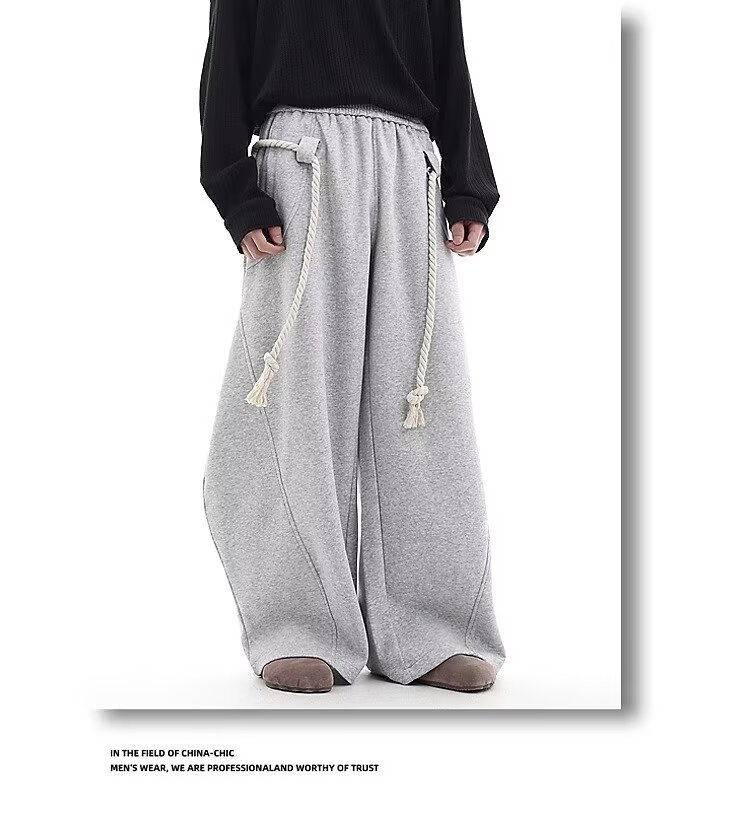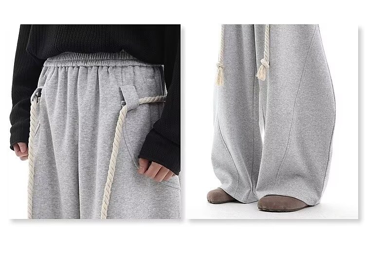 니치 디자인 센스 수제 두꺼운 로프 와이드 레그 마체테 바지 남자 아메리칸 스타일 레트로 스포츠 바지 느슨한 바닥 캐주얼 스웨트 팬츠스토어 가기