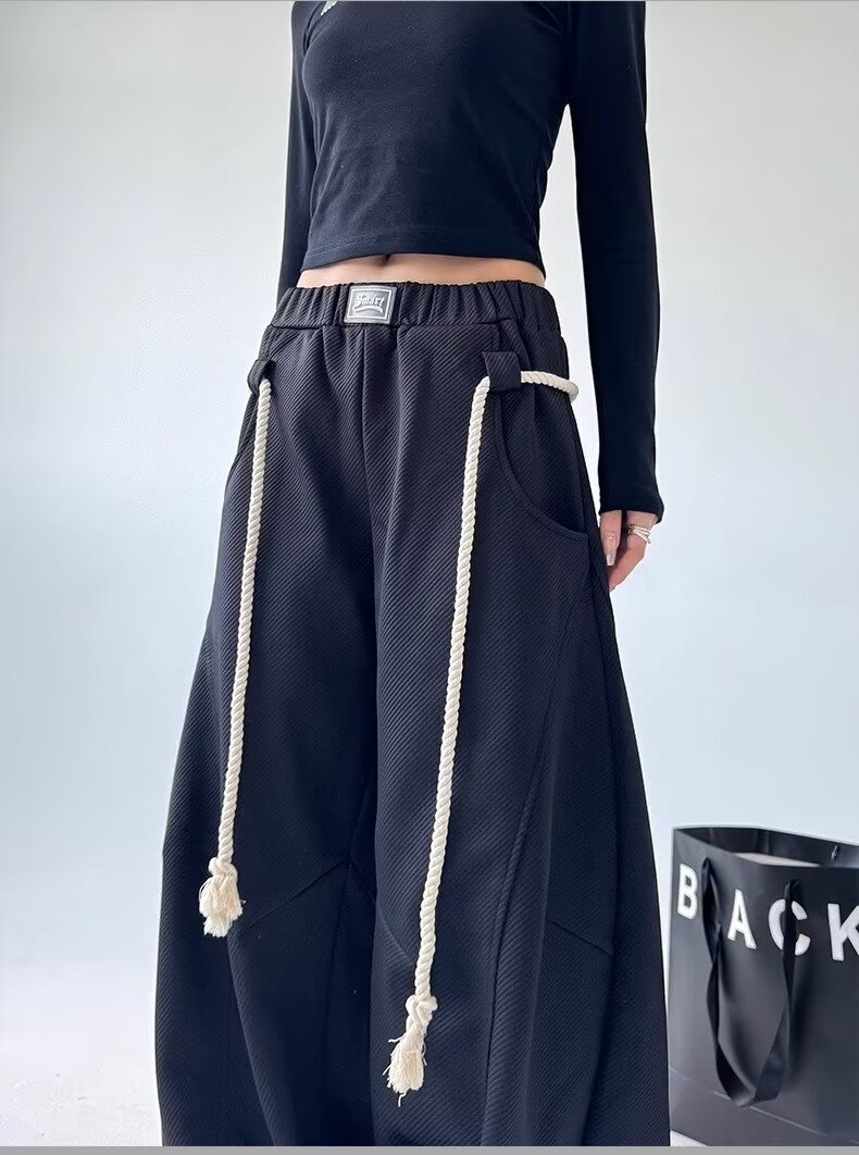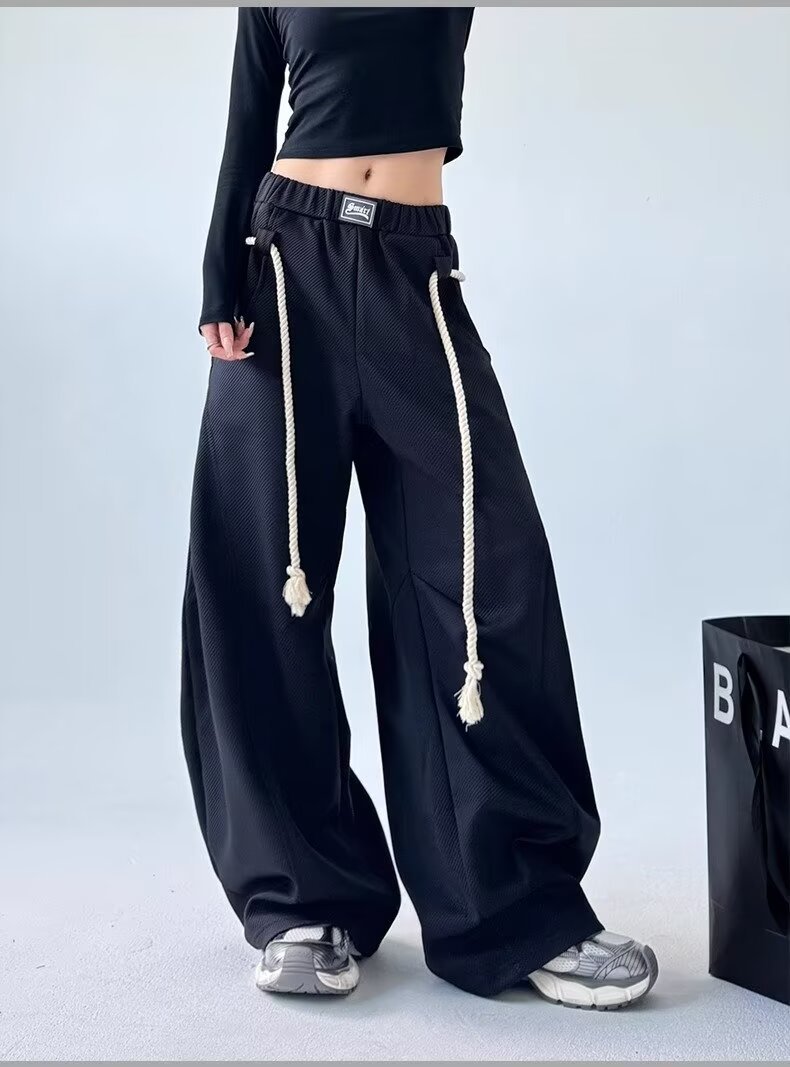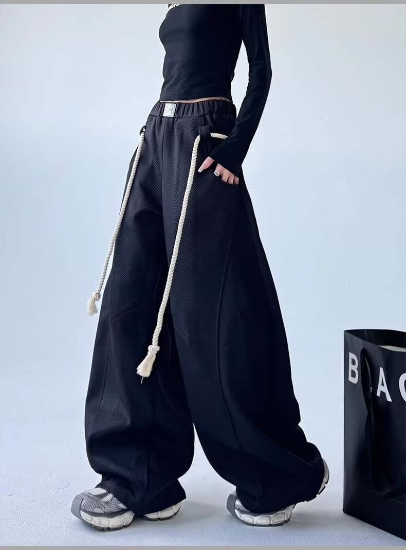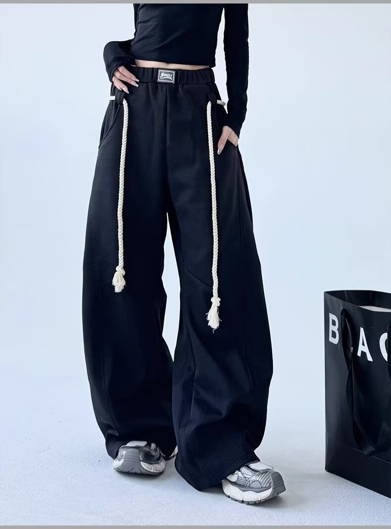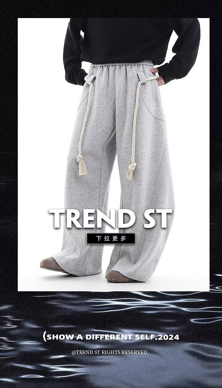니치 디자인 센스 수제 두꺼운 로프 와이드 레그 마체테 바지 남자 아메리칸 스타일 레트로 스포츠 바지 느슨한 바닥 캐주얼 스웨트 팬츠스토어 가기