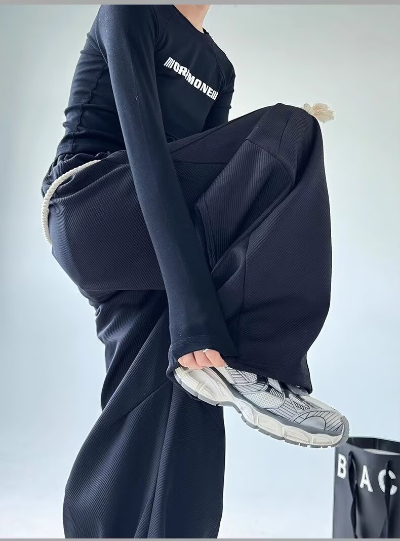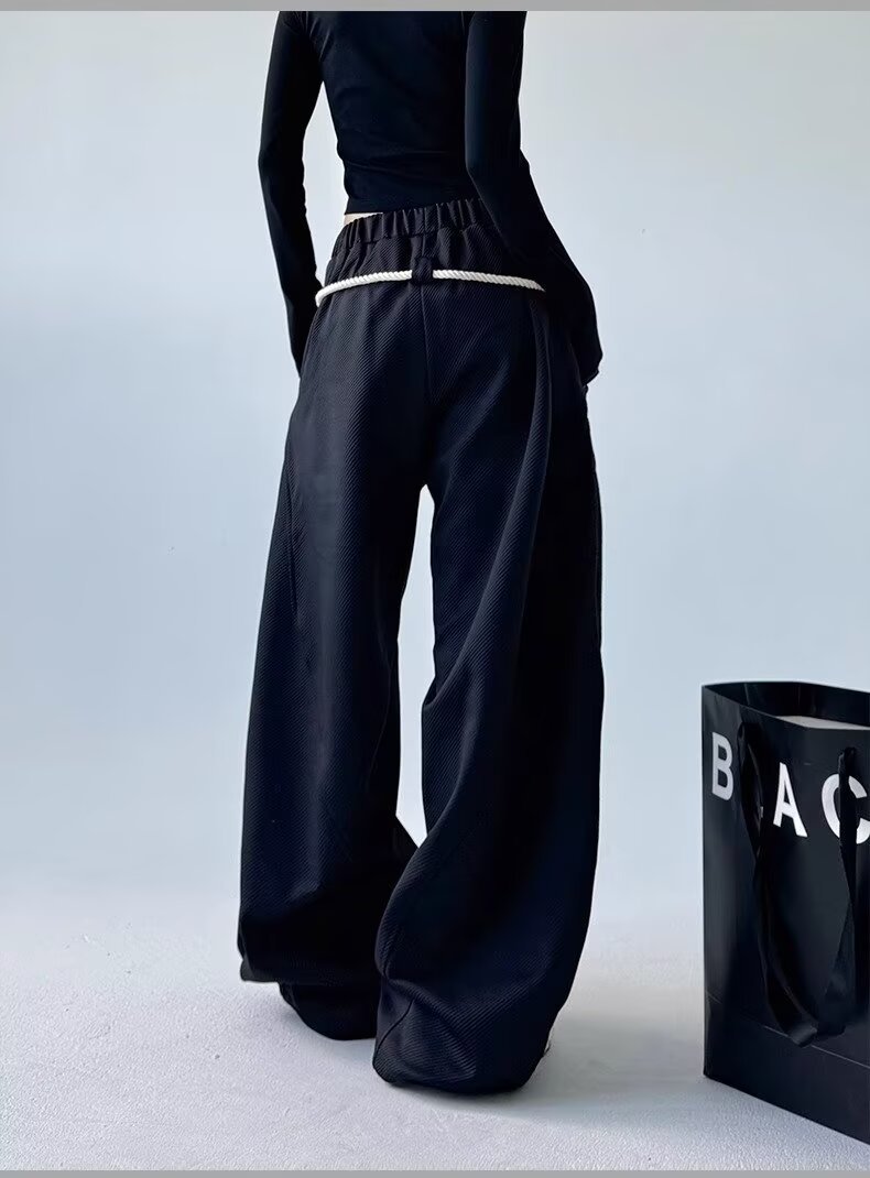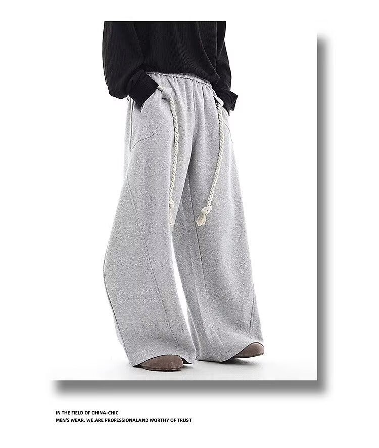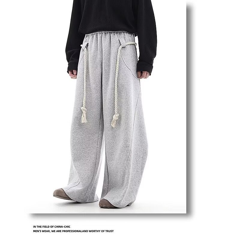 니치 디자인 센스 수제 두꺼운 로프 와이드 레그 마체테 바지 남자 아메리칸 스타일 레트로 스포츠 바지 느슨한 바닥 캐주얼 스웨트 팬츠