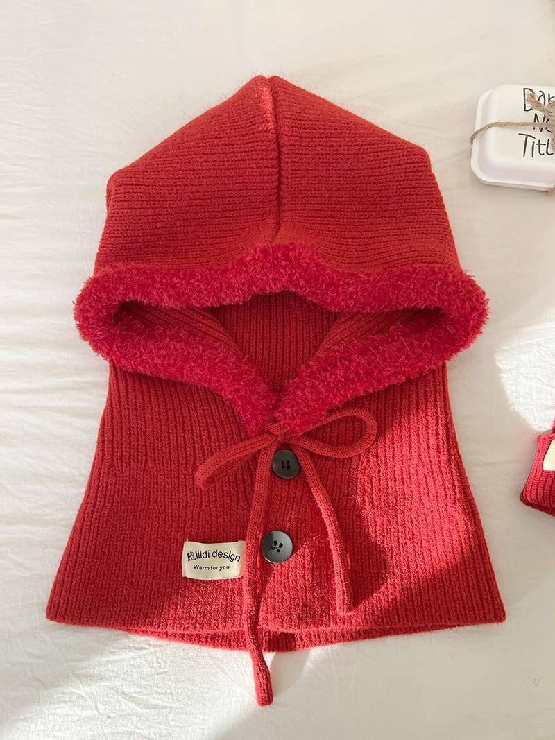 Balakrafa 온라인 빨간 모자 여성 한국 겨울 따뜻한 목 통합 헤드 기어 귀 보호 울 모자 니트