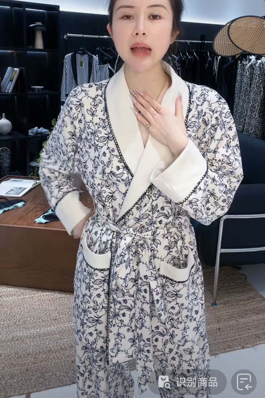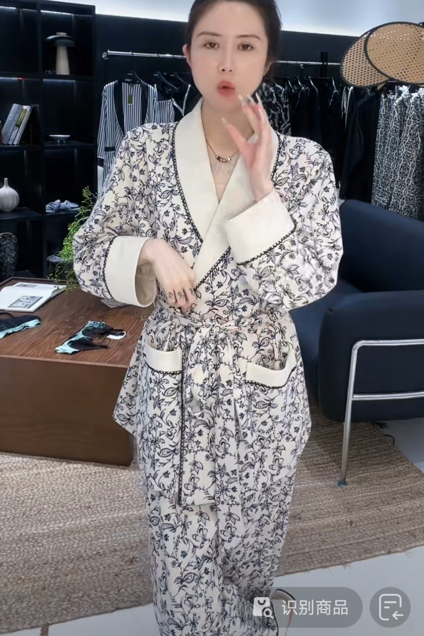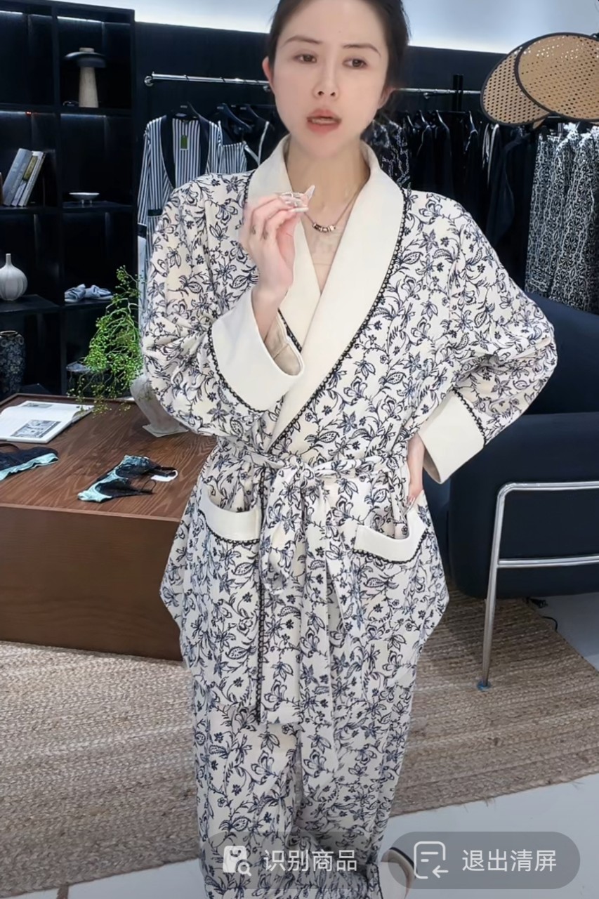 2025년 신상 텍스처 원단 여성 잠옷 홈웨어 세트 심플한 허리라인 롱 스타일 럭셔리 스타일 틈새 디자인스토어 가기