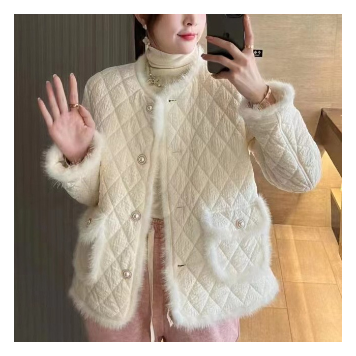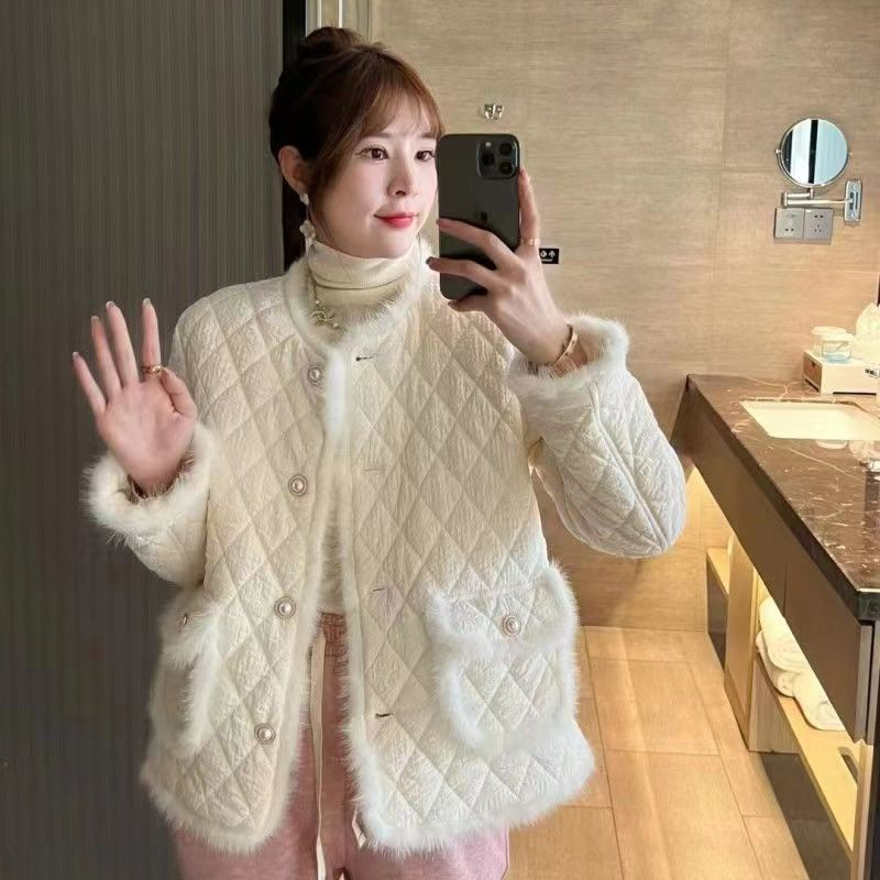 샤넬 스타일 올 매치 코튼 두꺼운 코튼 패딩 재킷 여자의 2024 가을 및 겨울 새로운 봉제 스티칭 마름모꼴 우아한 카디건 재킷