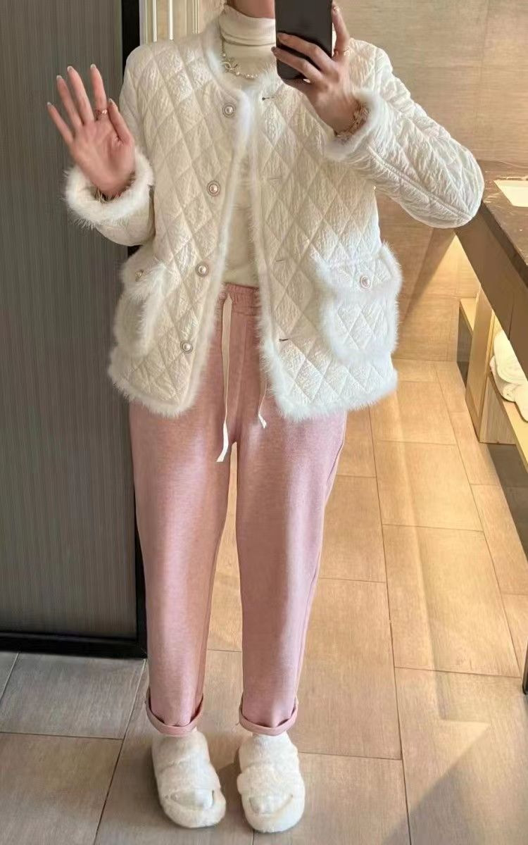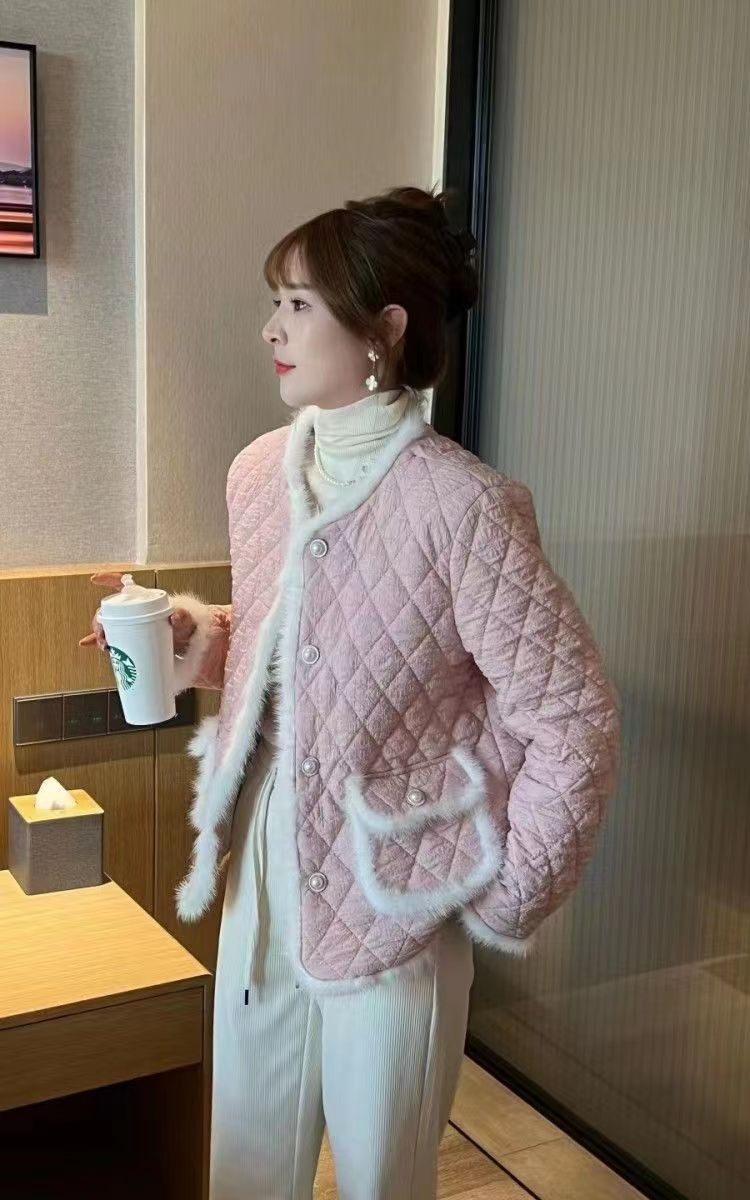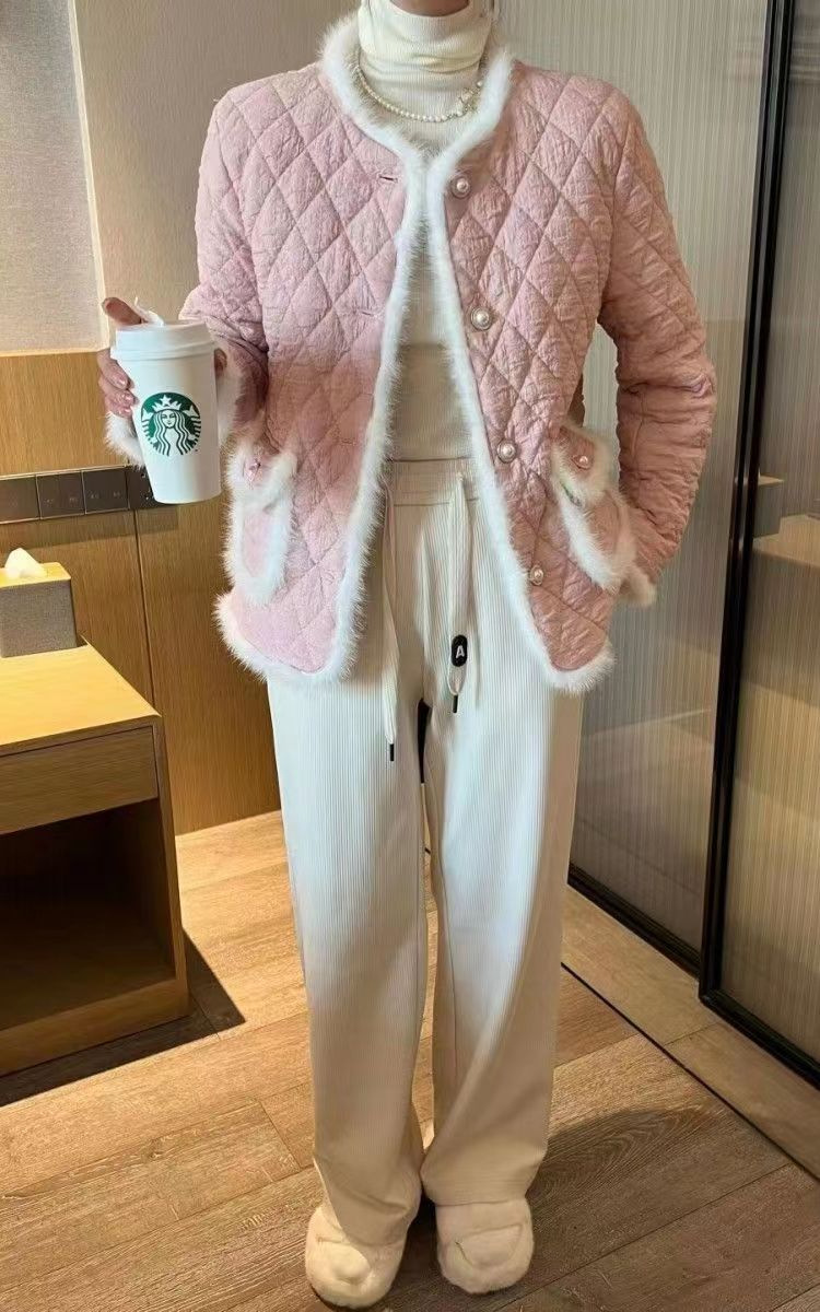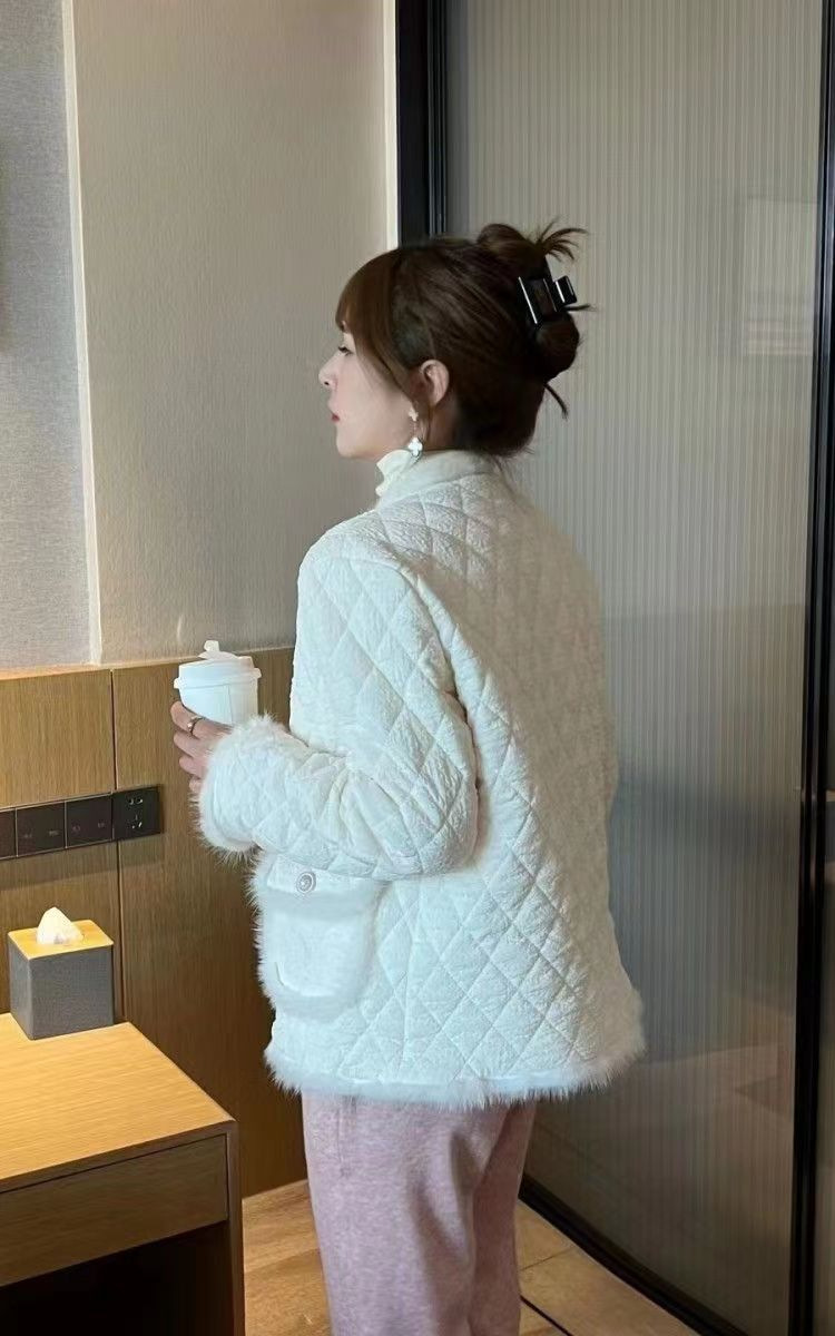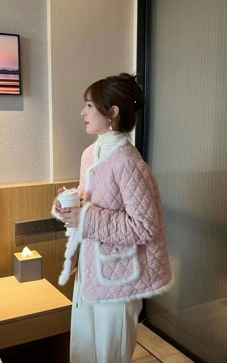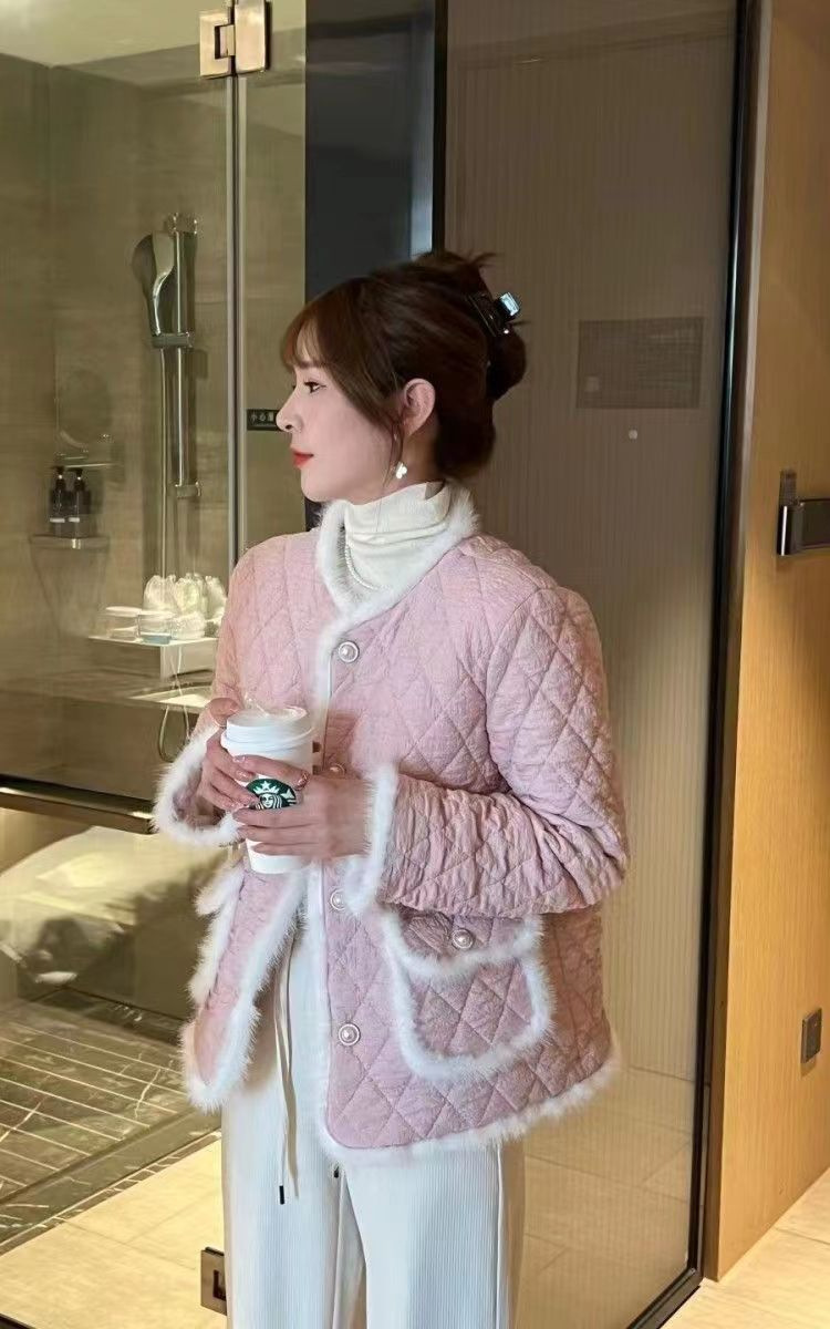 샤넬 스타일 올 매치 코튼 두꺼운 코튼 패딩 재킷 여자의 2024 가을 및 겨울 새로운 봉제 스티칭 마름모꼴 우아한 카디건 재킷스토어 가기