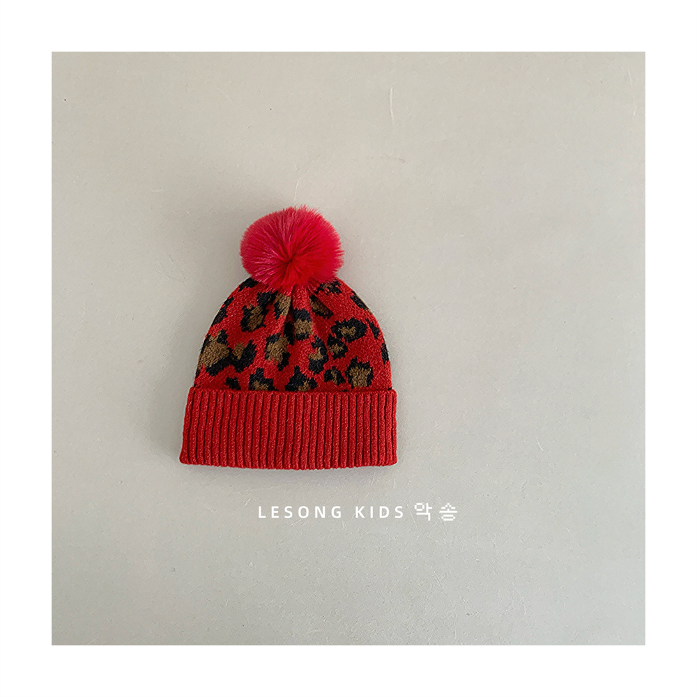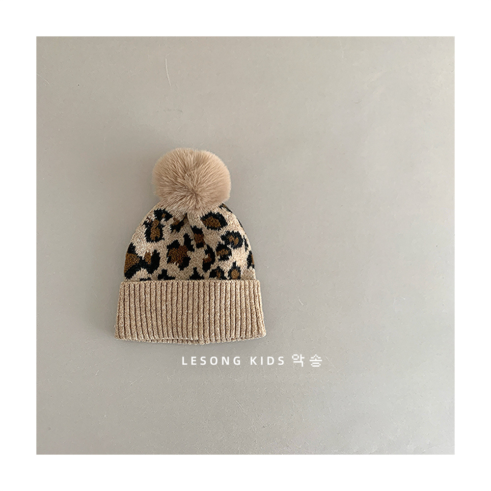 2024新秋冬保暖个性时尚豹纹儿童针织帽