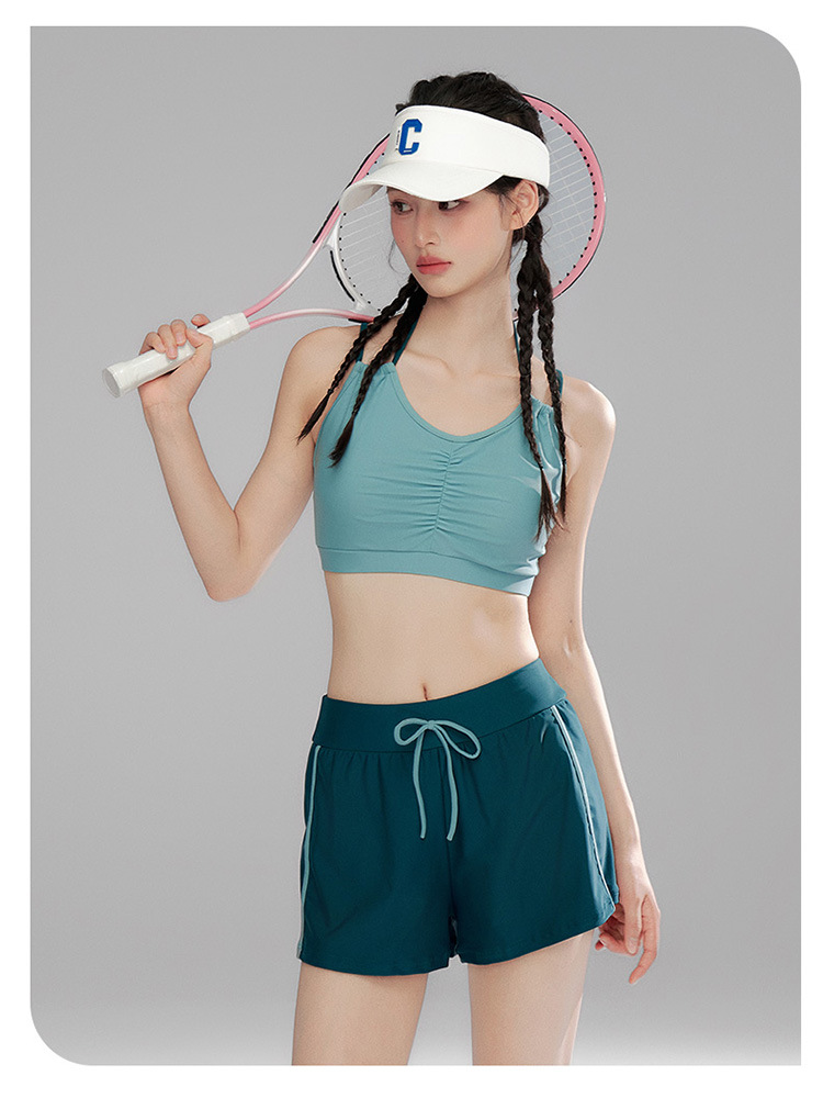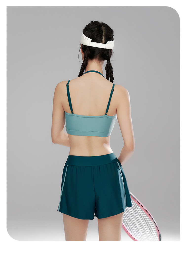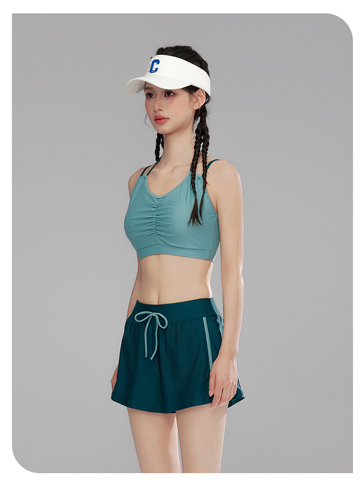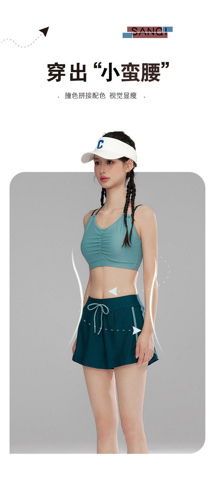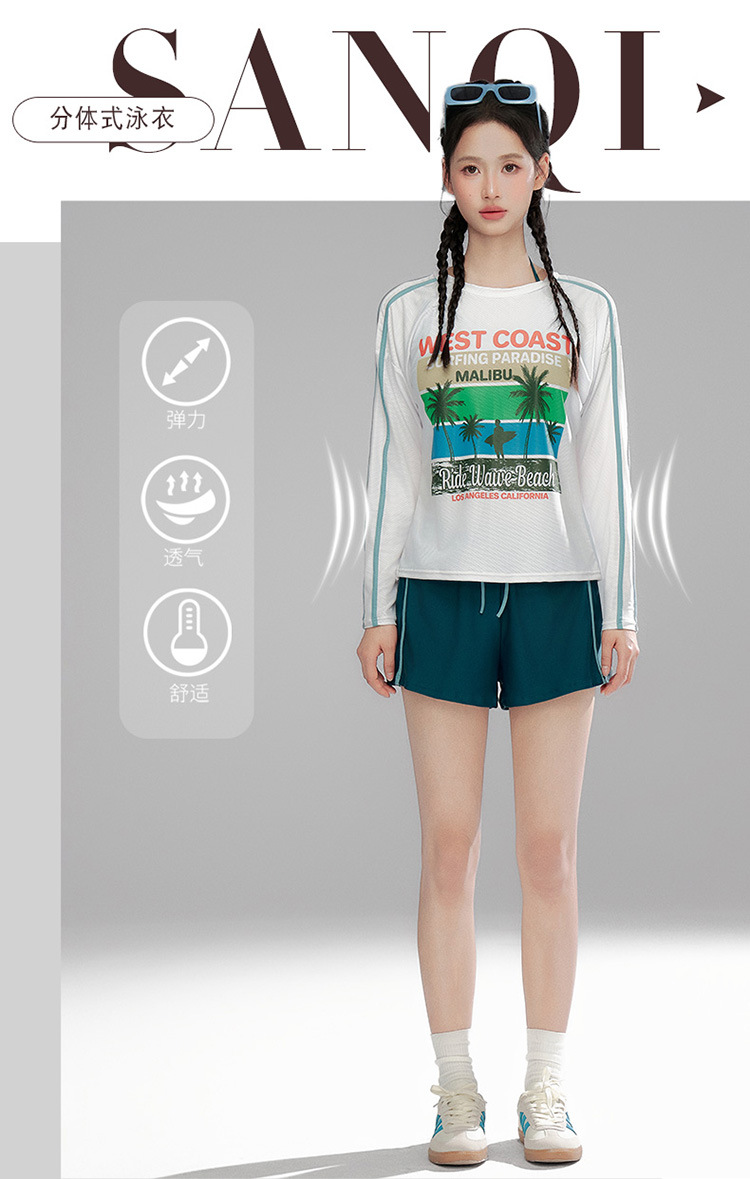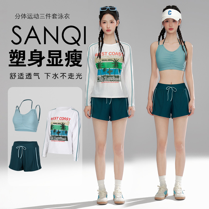 Sanqi 수영복 여성의 2024 새로운 온천 해변 휴가 3 피스 세트 분할 보수적 수영복 선스크린 수영복스토어 가기