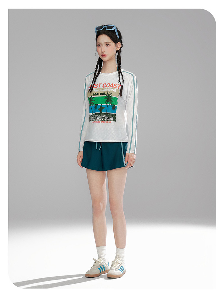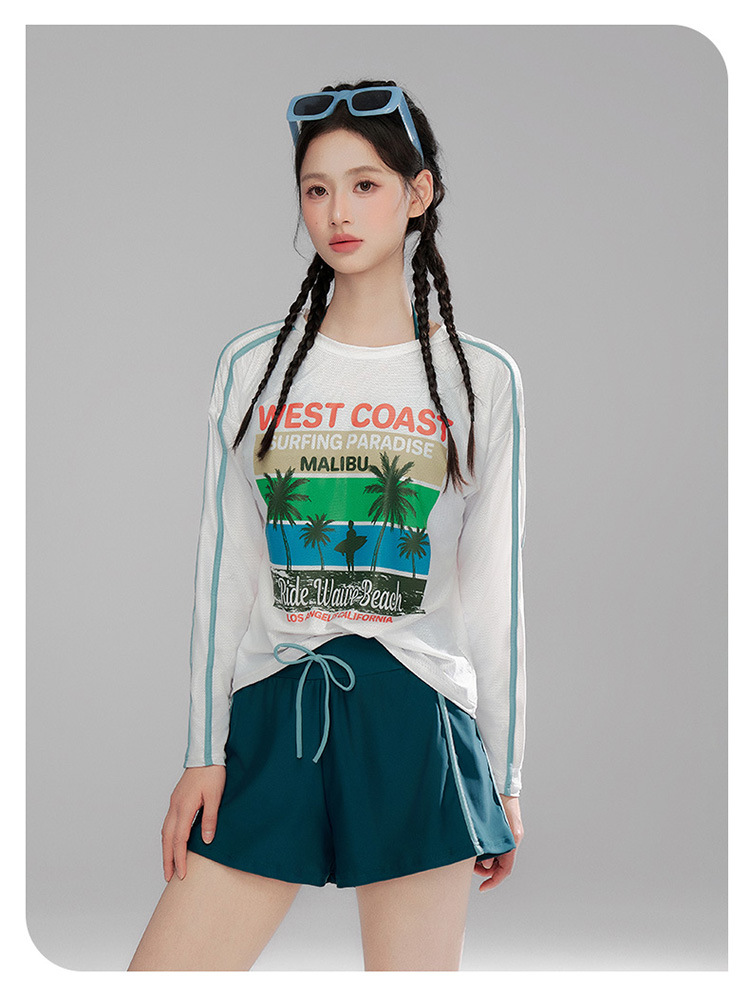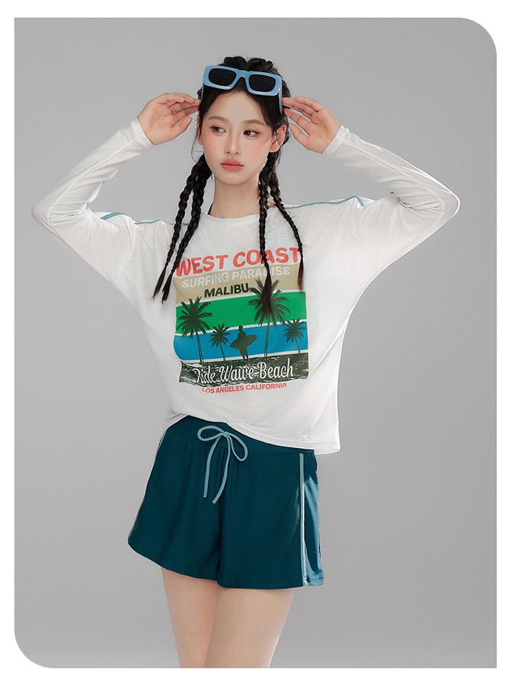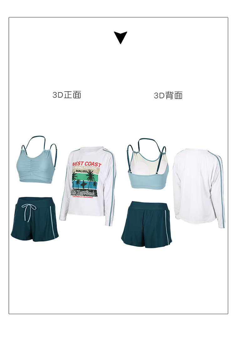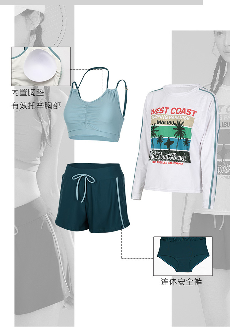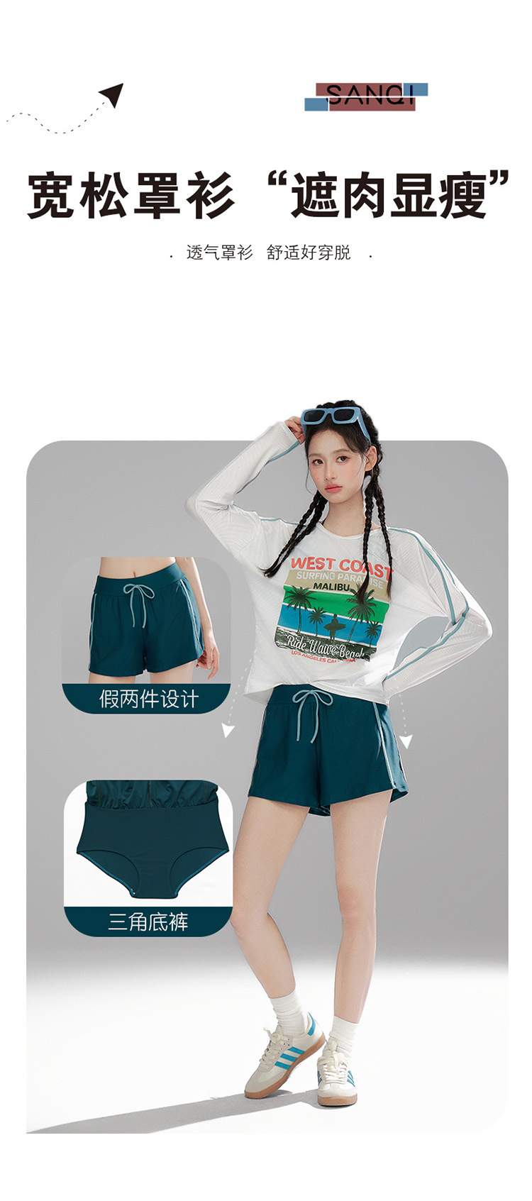 Sanqi 수영복 여성의 2024 새로운 온천 해변 휴가 3 피스 세트 분할 보수적 수영복 선스크린 수영복