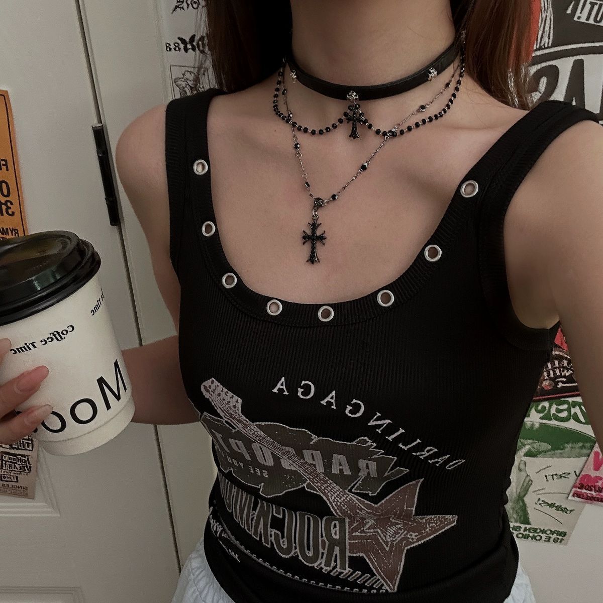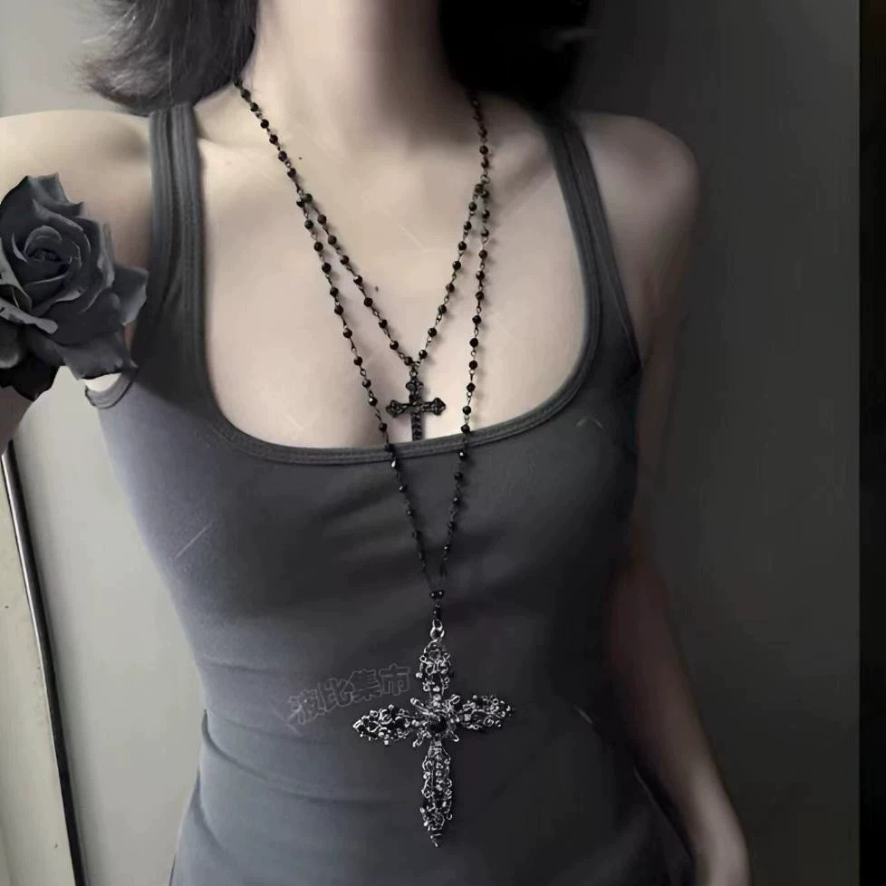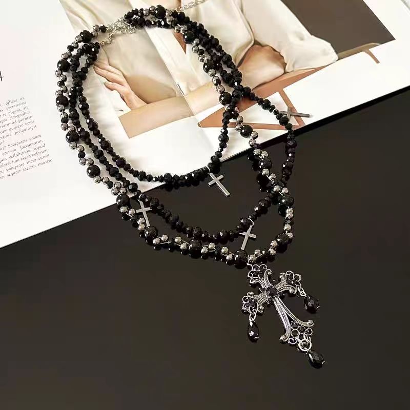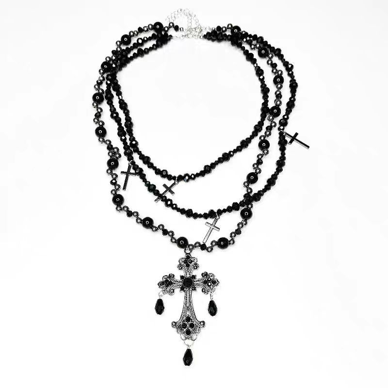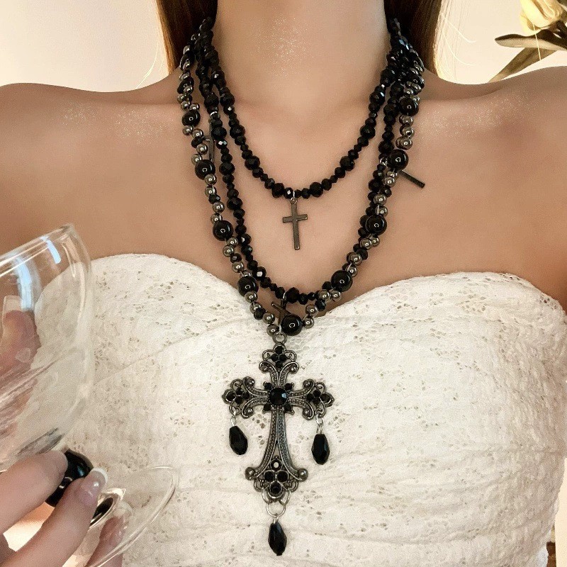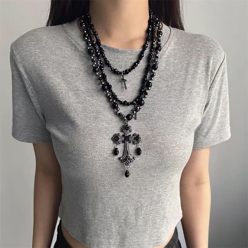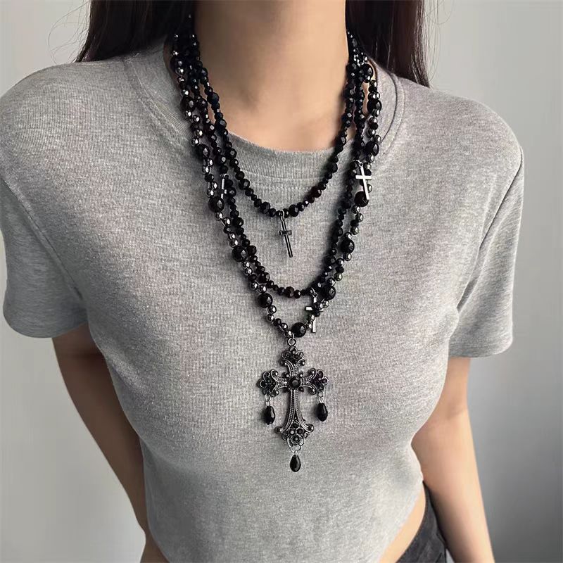 달콤한 쿨 블랙 크로스 목걸이 중공업 고딕 펑크 멀티 레이어 초커 스태킹 웨어 레트로 교수형 올 매치 클래 버클 체인