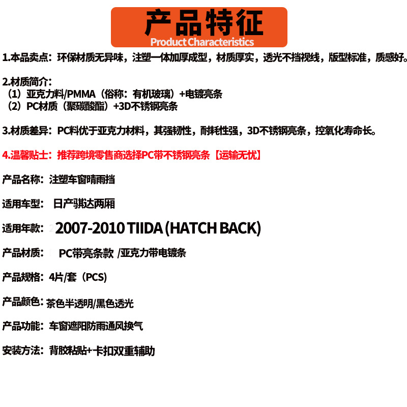 닛산 Tiida 창 비 및 햇빛 해치백 2005-2010window visors에 적합스토어 가기