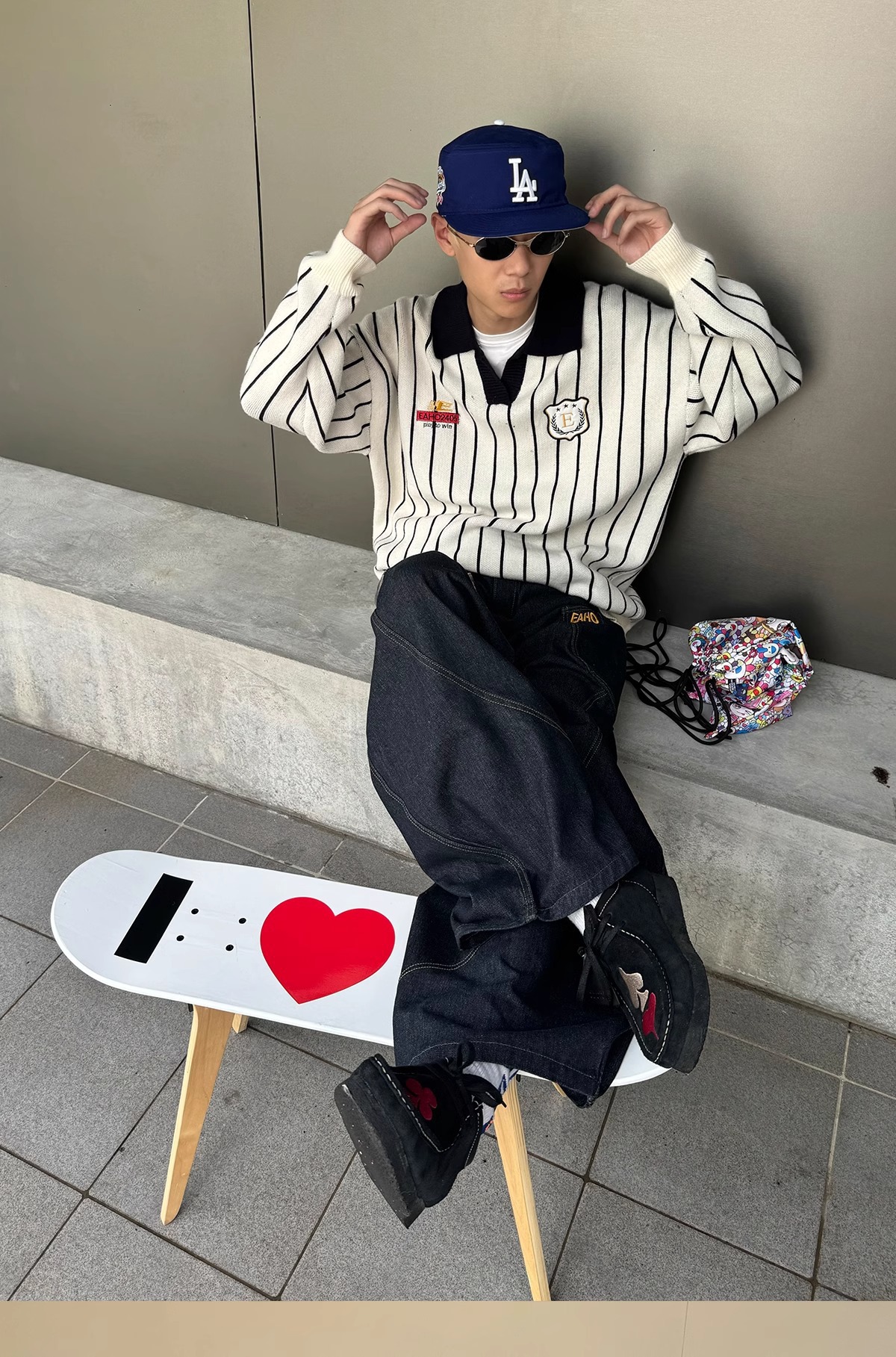 미국 스타일의 격자 무늬 바느질 세탁 청바지 남성 봄과 가을 새로운 느슨한 패셔너블 캐주얼 와이드 레그 마체테 롱 팬츠