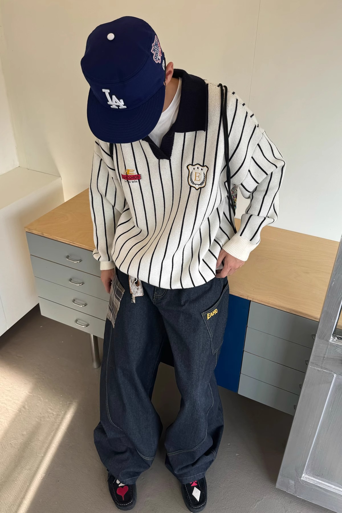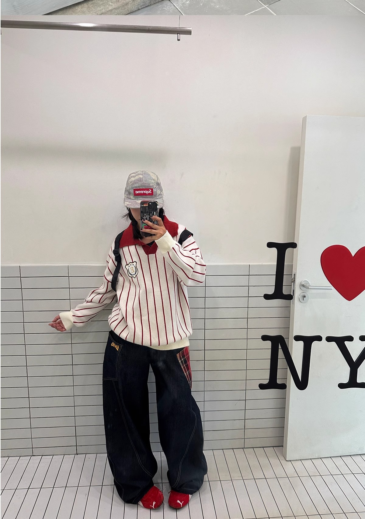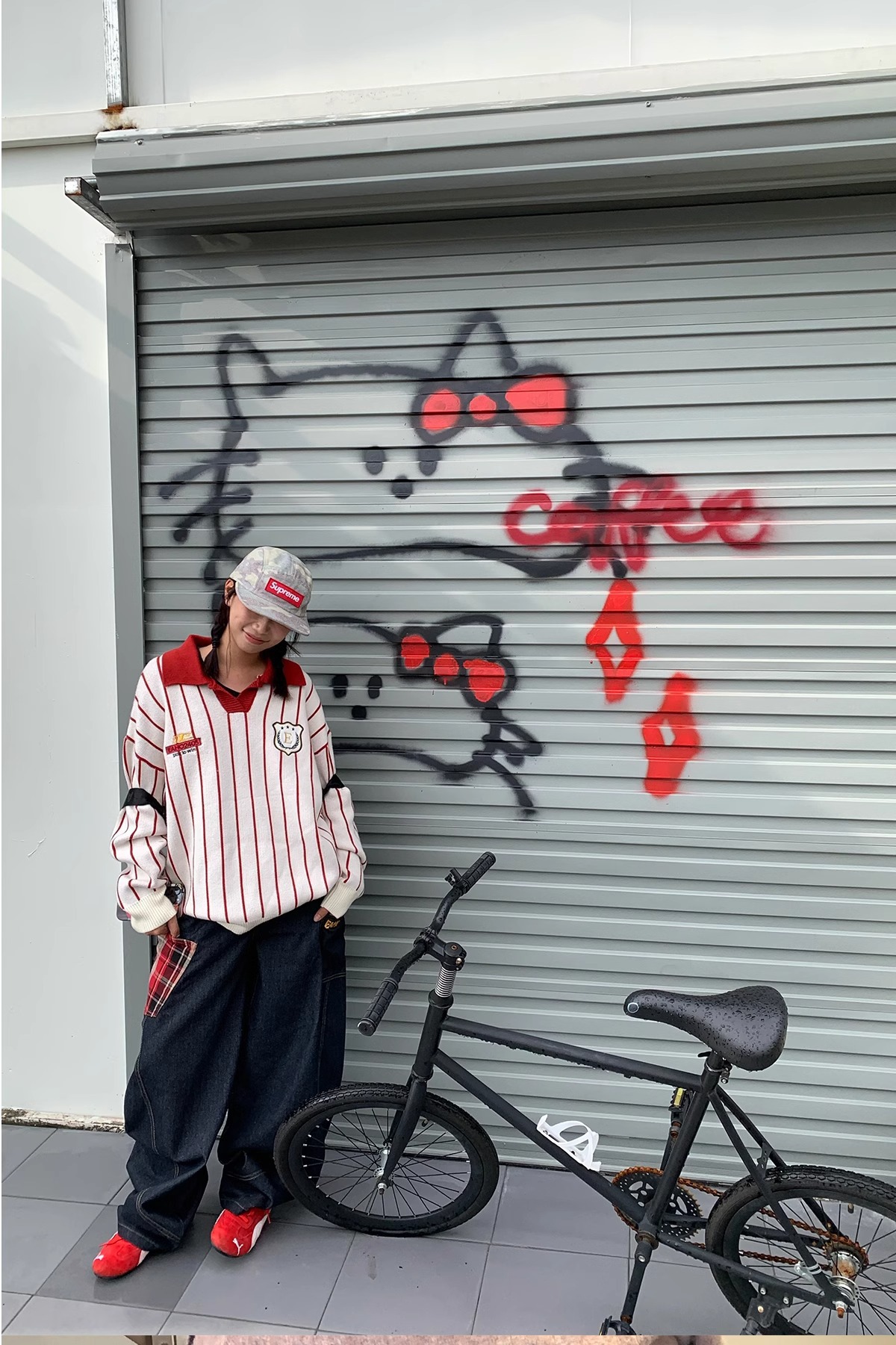 미국 스타일의 격자 무늬 바느질 세탁 청바지 남성 봄과 가을 새로운 느슨한 패셔너블 캐주얼 와이드 레그 마체테 롱 팬츠스토어 가기