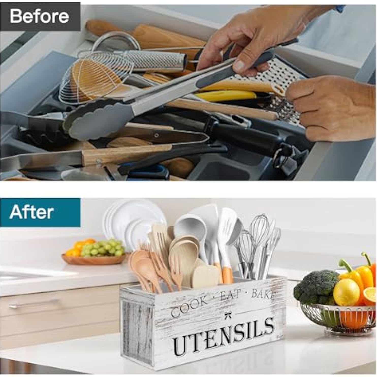 국경 간 주방 식기 보관 상자 조리대 나이프와 포크 보관 상자 주방 카운터 나무 요리 도구 분류 브래킷스토어 가기