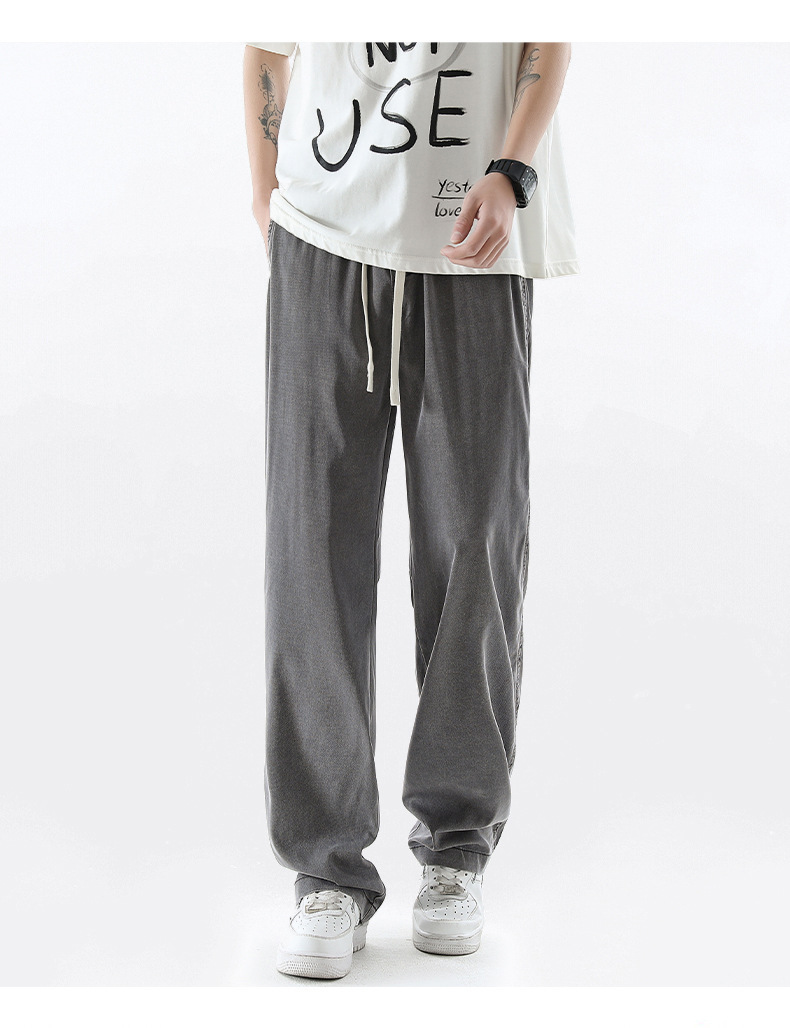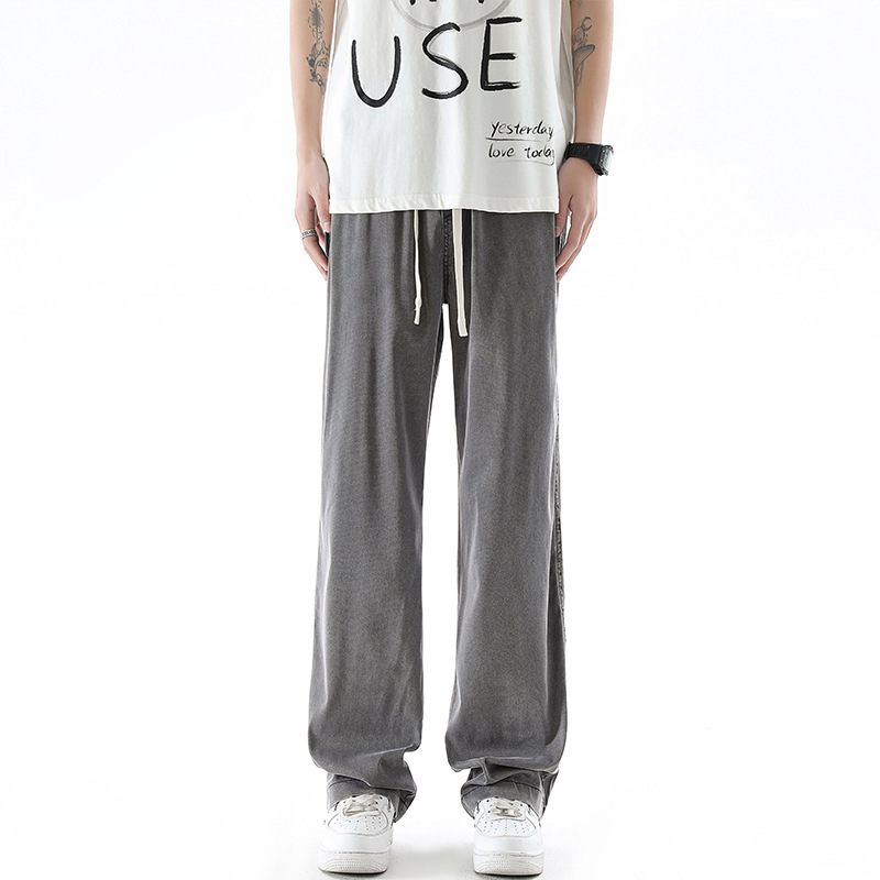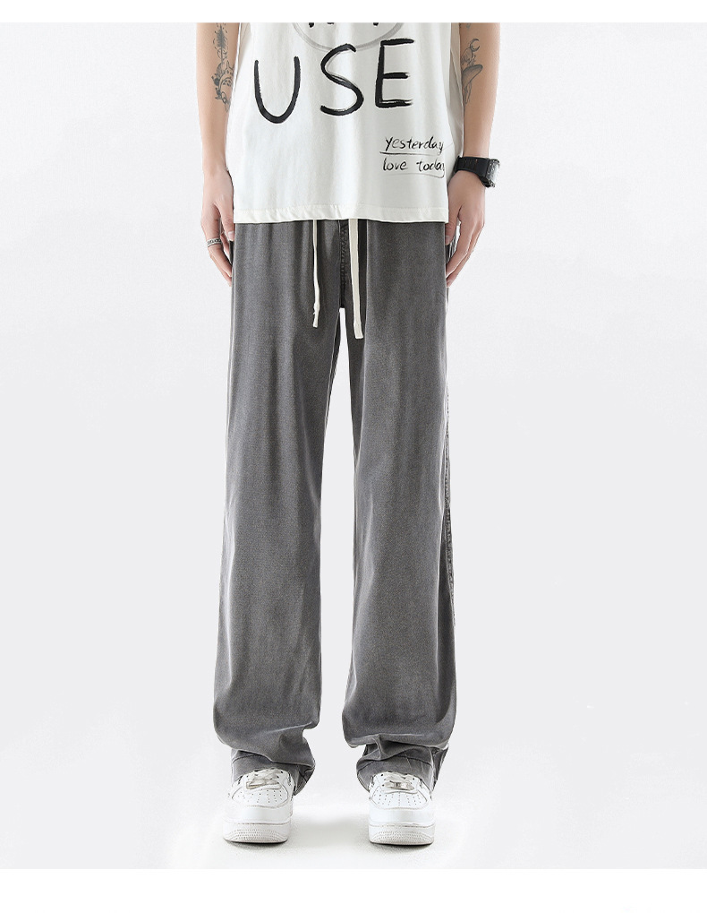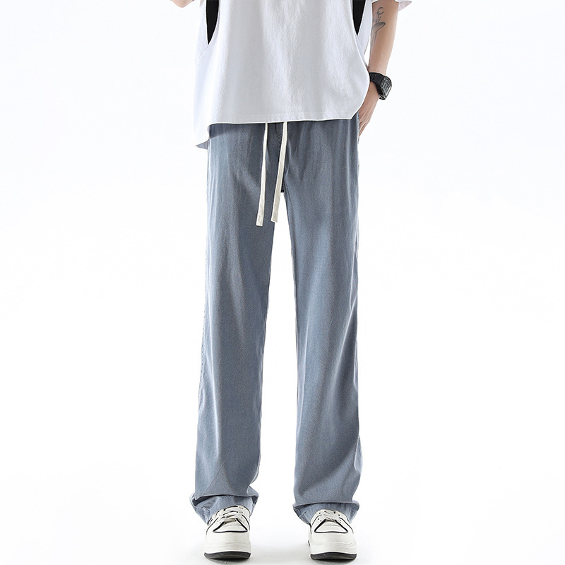 2024 여름 새로운 텐셀 청바지 남성 패션 트렌드 아이스 실크 캐주얼 루즈 스트레이트 올 매치 롱 바지스토어 가기