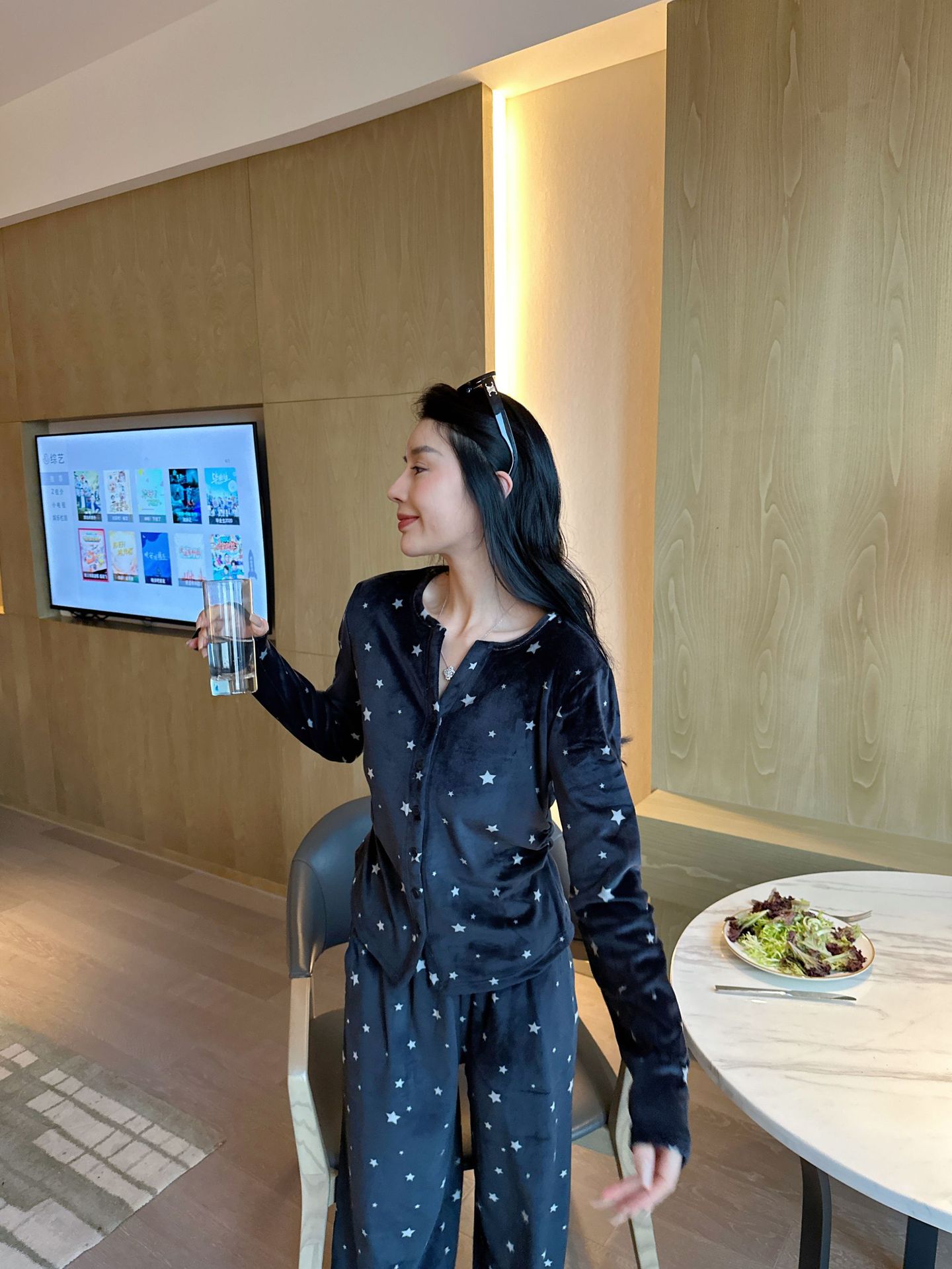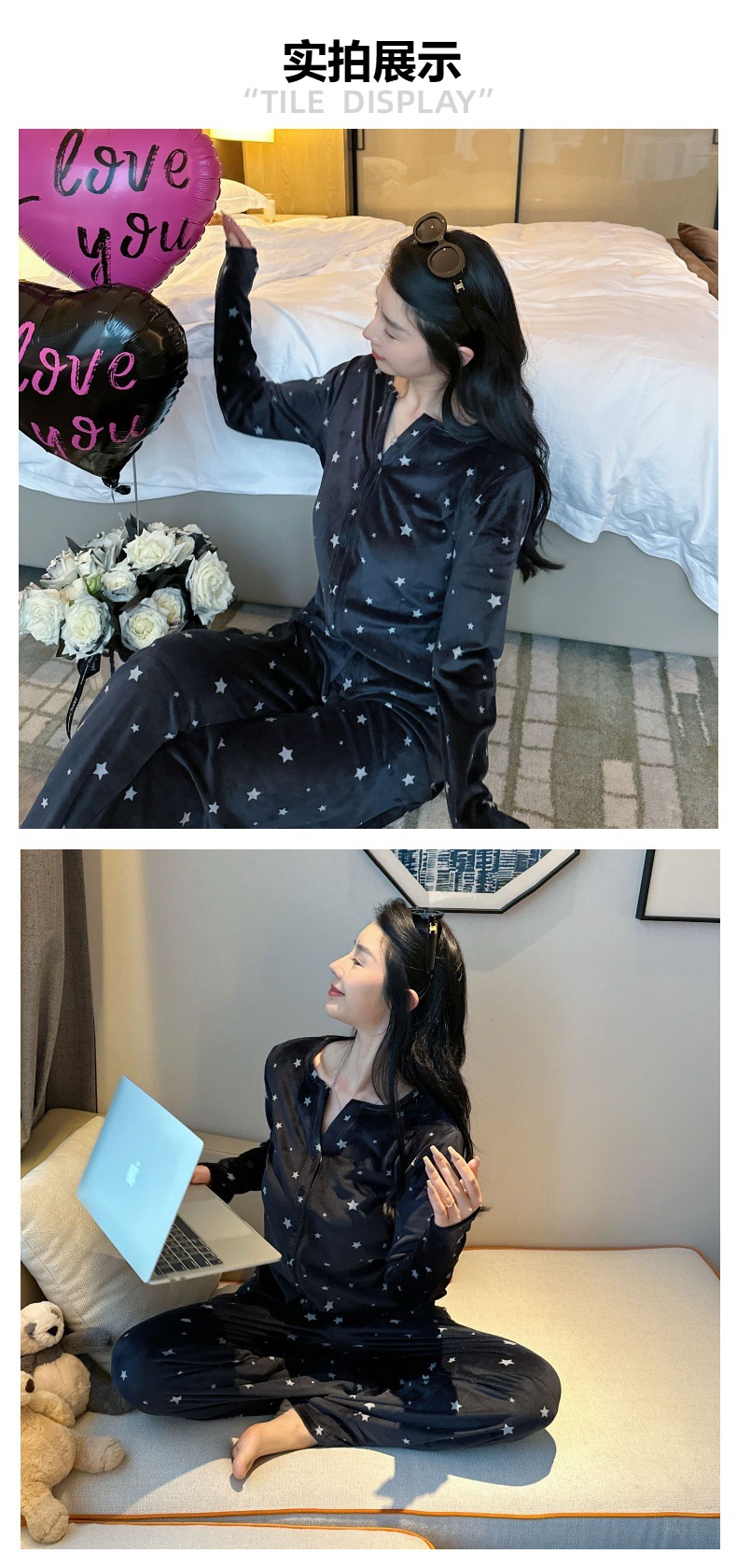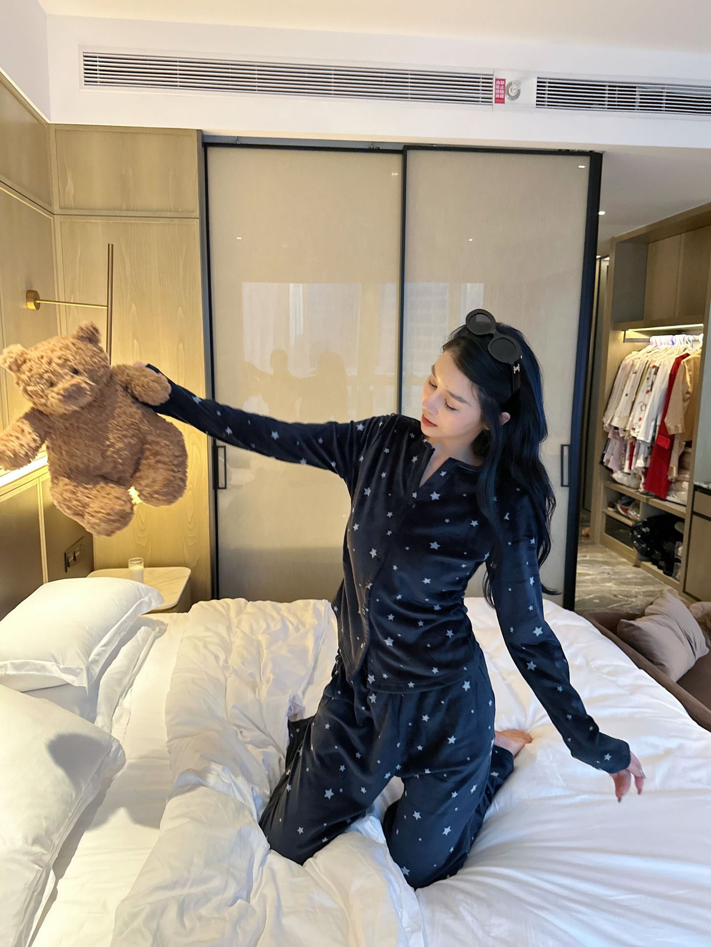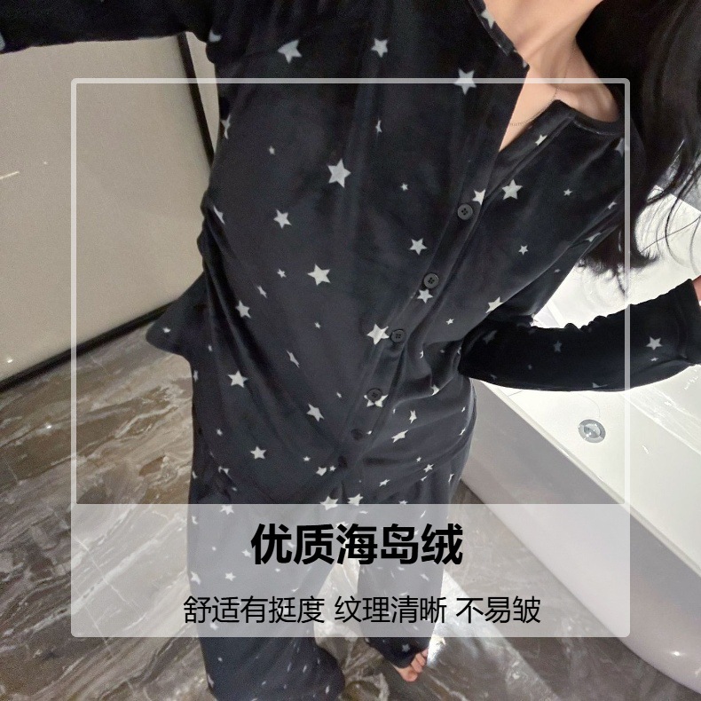 Yase [소원 별] 가을과 겨울 섬 벨벳 숙녀 기모 따뜻한 새 별 인쇄 집 옷