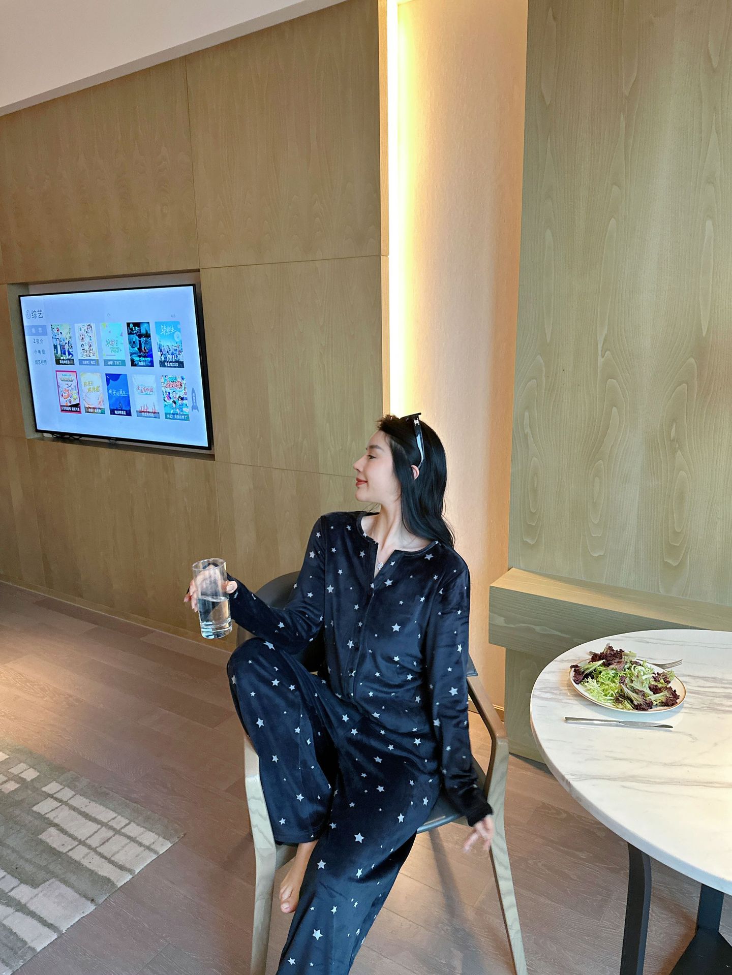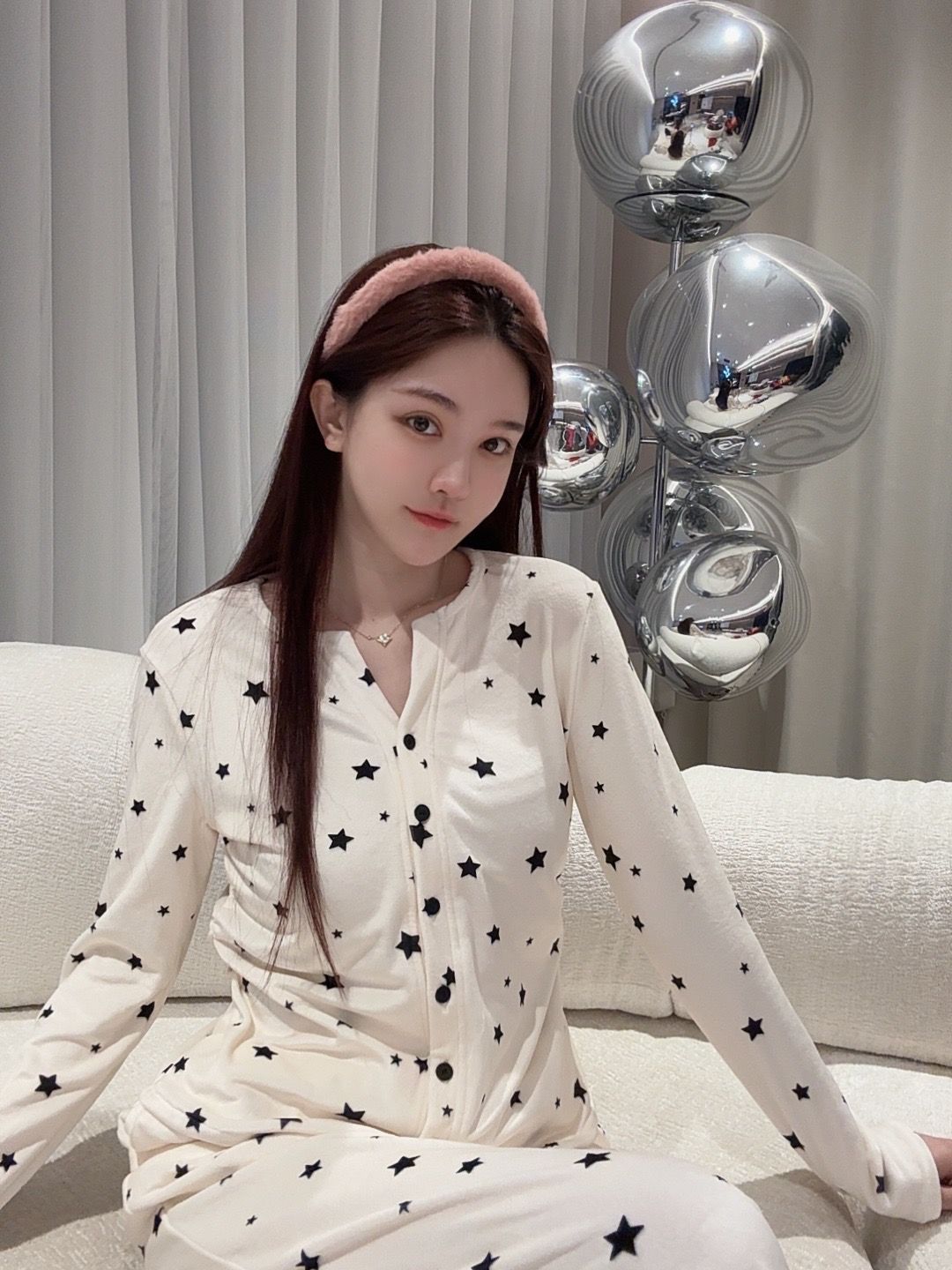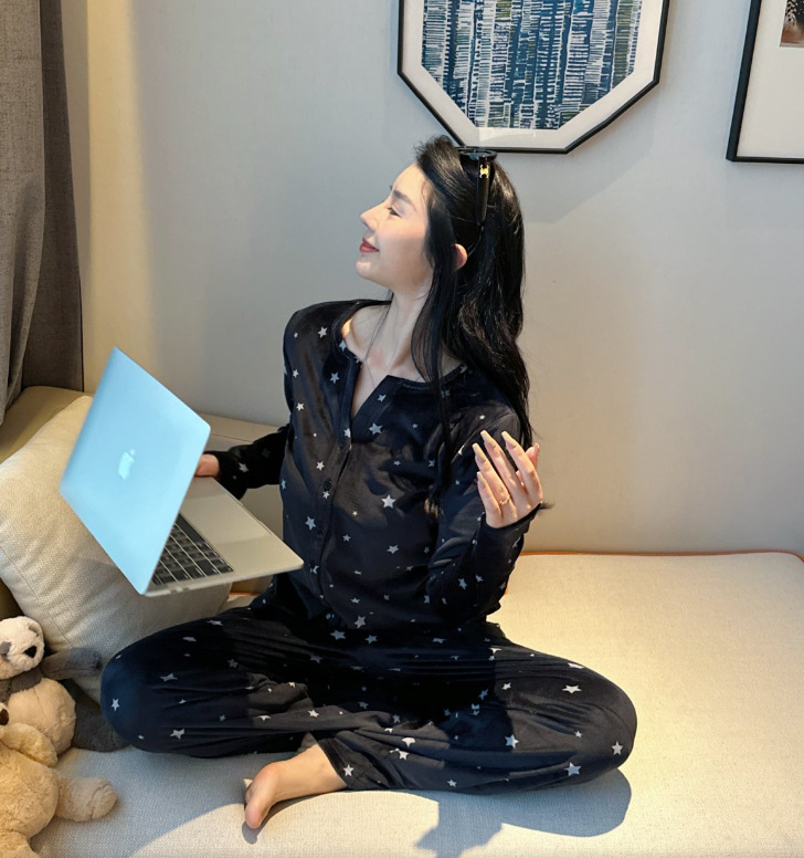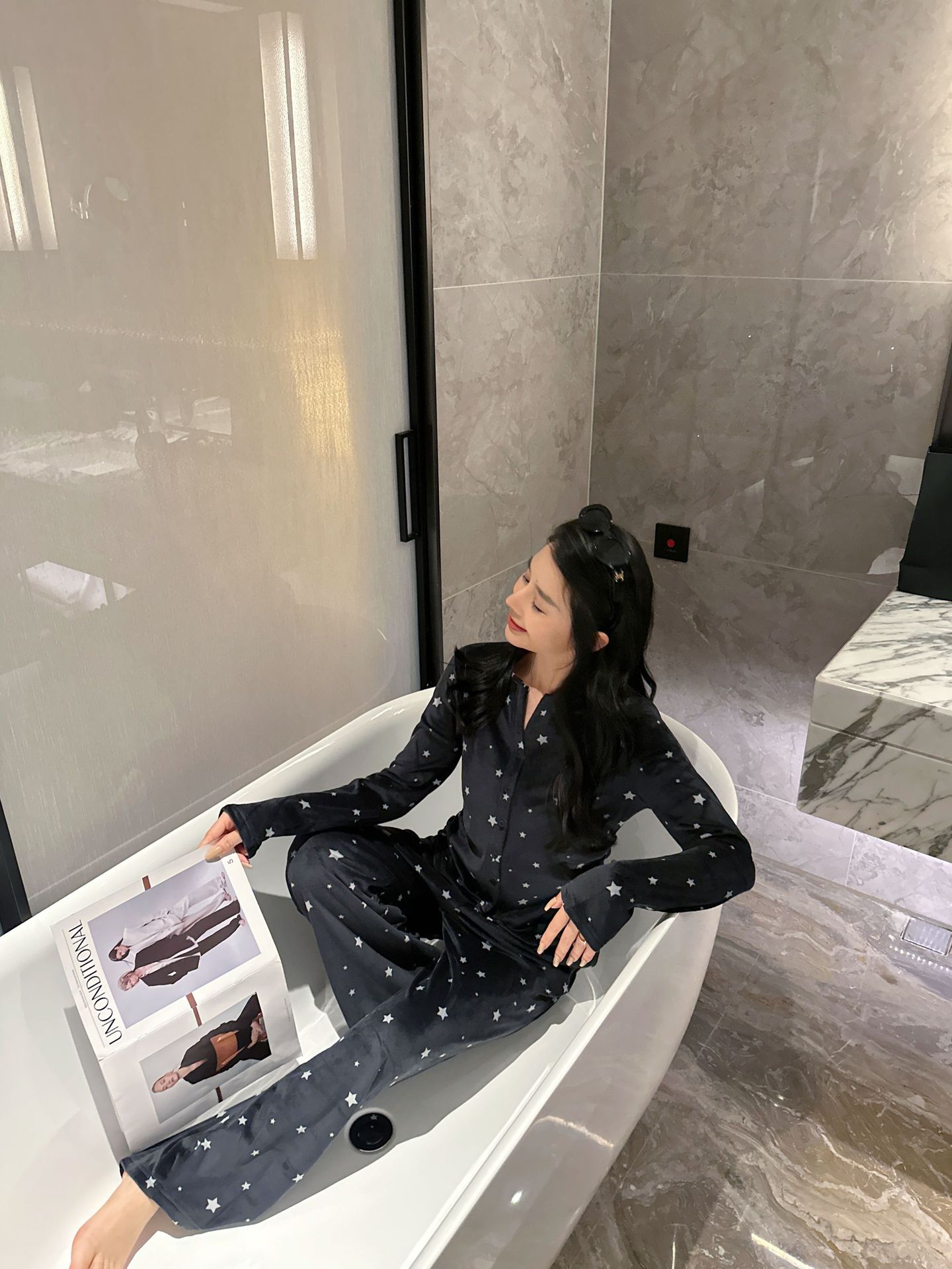 Yase [소원 별] 가을과 겨울 섬 벨벳 숙녀 기모 따뜻한 새 별 인쇄 집 옷