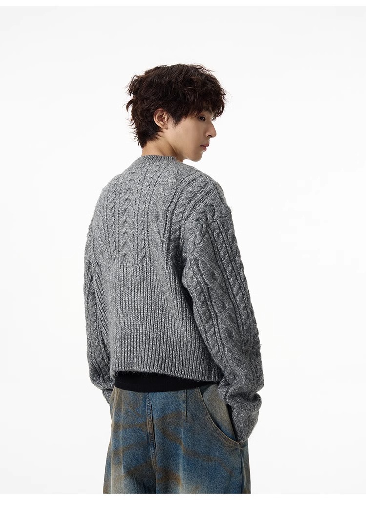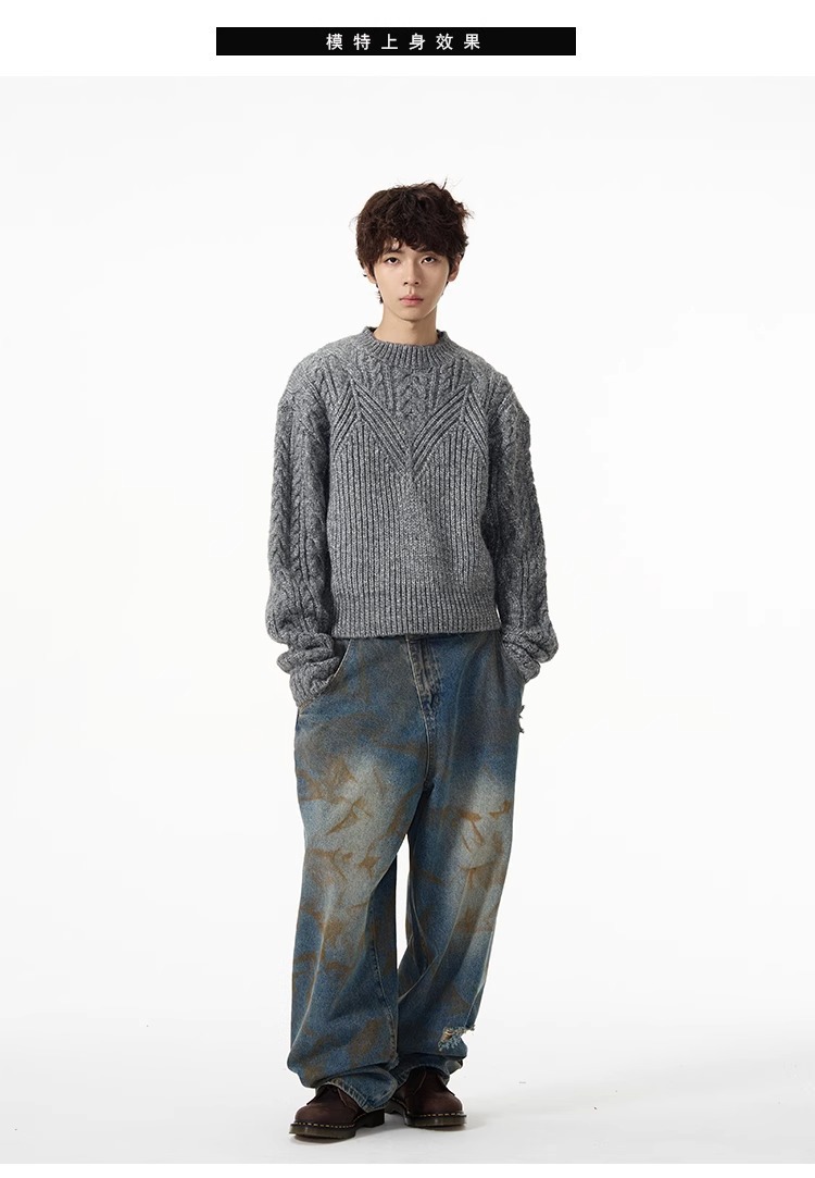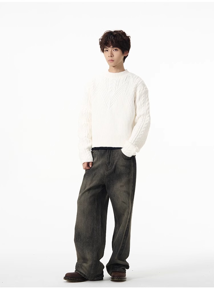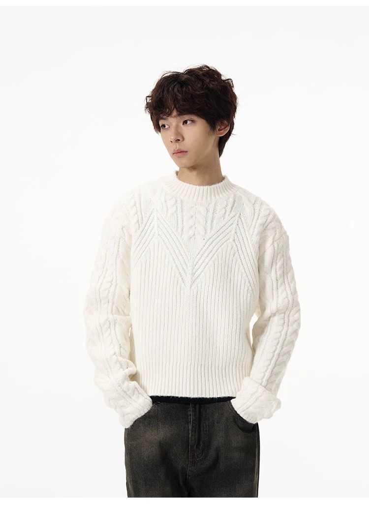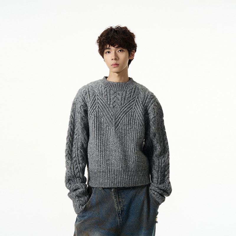 미국 레트로 짧은 게으른 스웨터 남자 가을 겨울 새로운 하이 엔드 트위스트 터틀넥 크루 넥 스웨터 커플 트렌디스토어 가기