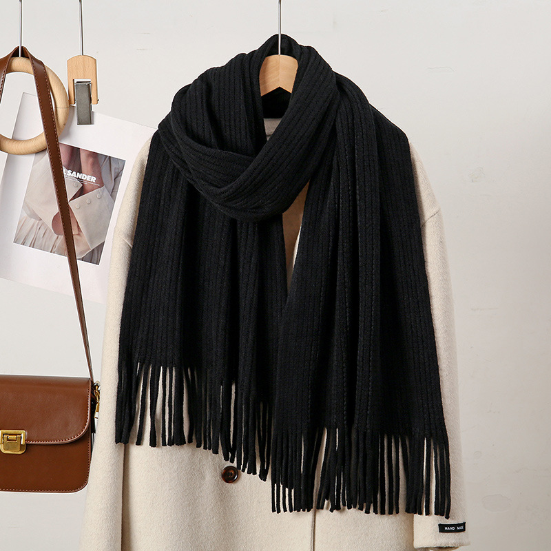 새로운 핫 세일 단색 캐시미어 술 스카프 가을과 겨울 여성의 세련된 올 매치 따뜻한 두꺼운 목도리 스카프