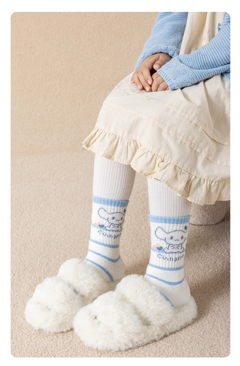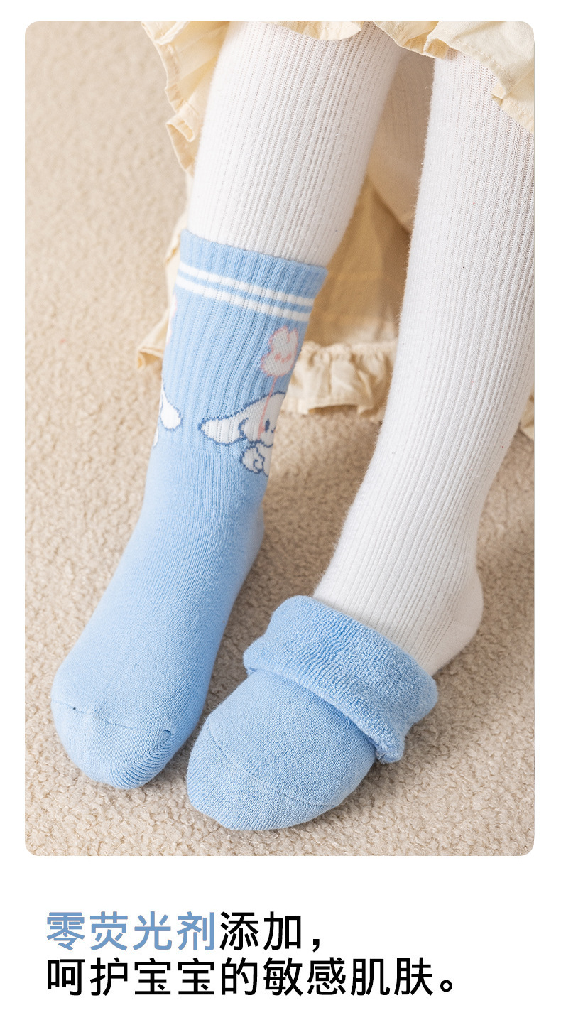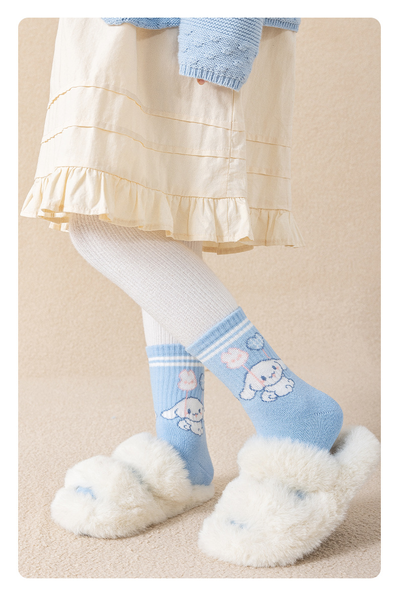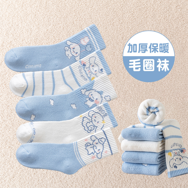 가을과 겨울 어린이 양말 소녀 테리 양말 만화 파란색과 흰색 개 여성 아기 조수 양말은 큰 어린이 면화 양말을 두껍게 도매