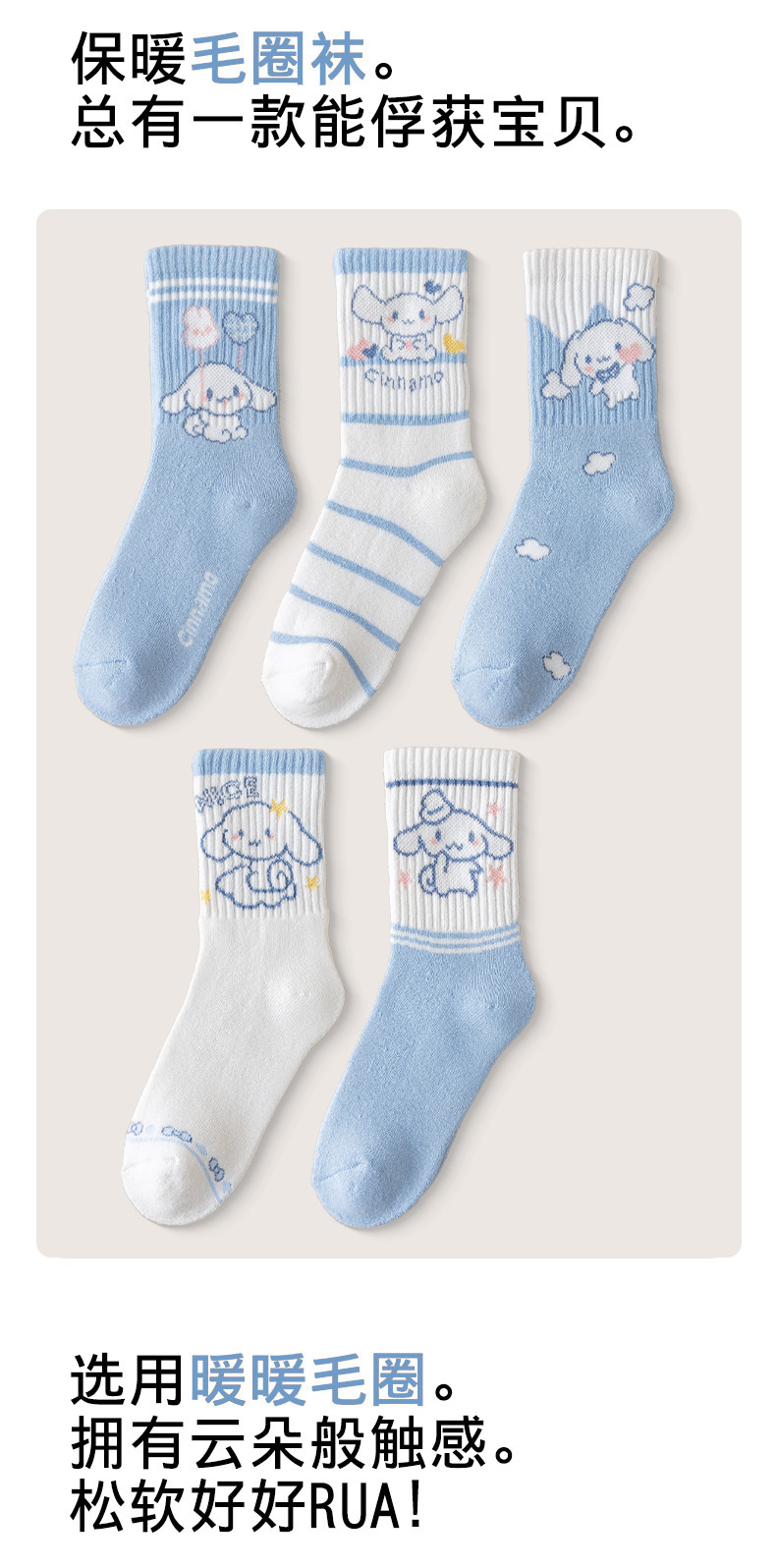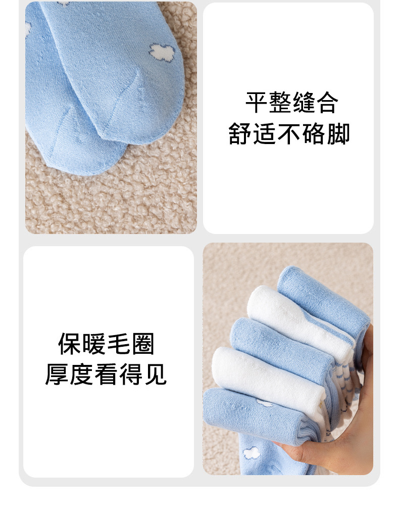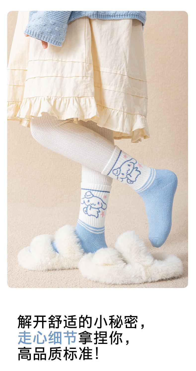 가을과 겨울 어린이 양말 소녀 테리 양말 만화 파란색과 흰색 개 여성 아기 조수 양말은 큰 어린이 면화 양말을 두껍게 도매