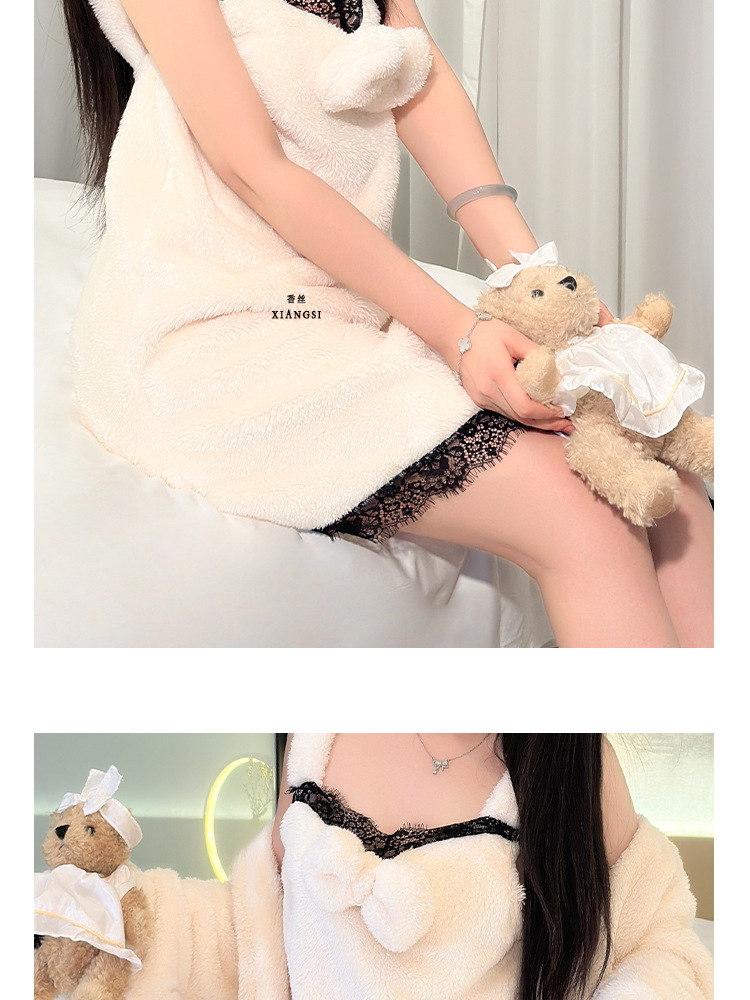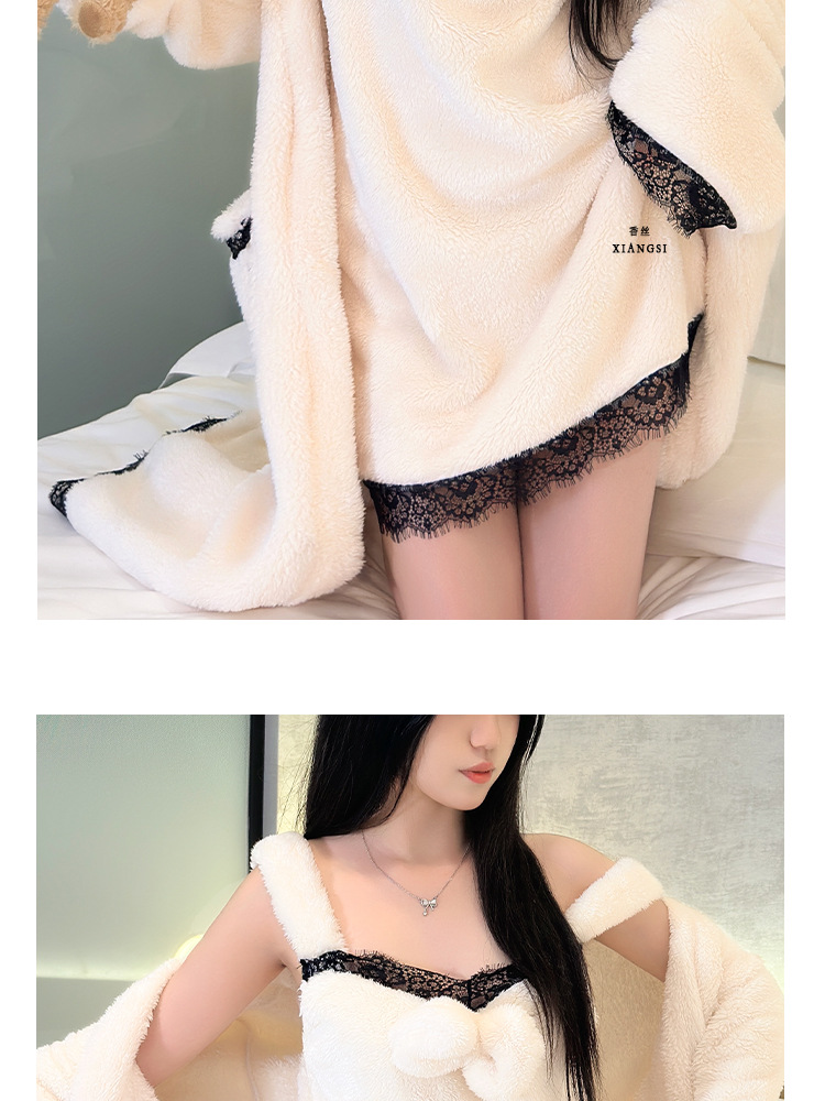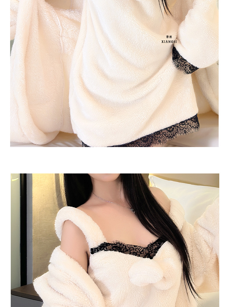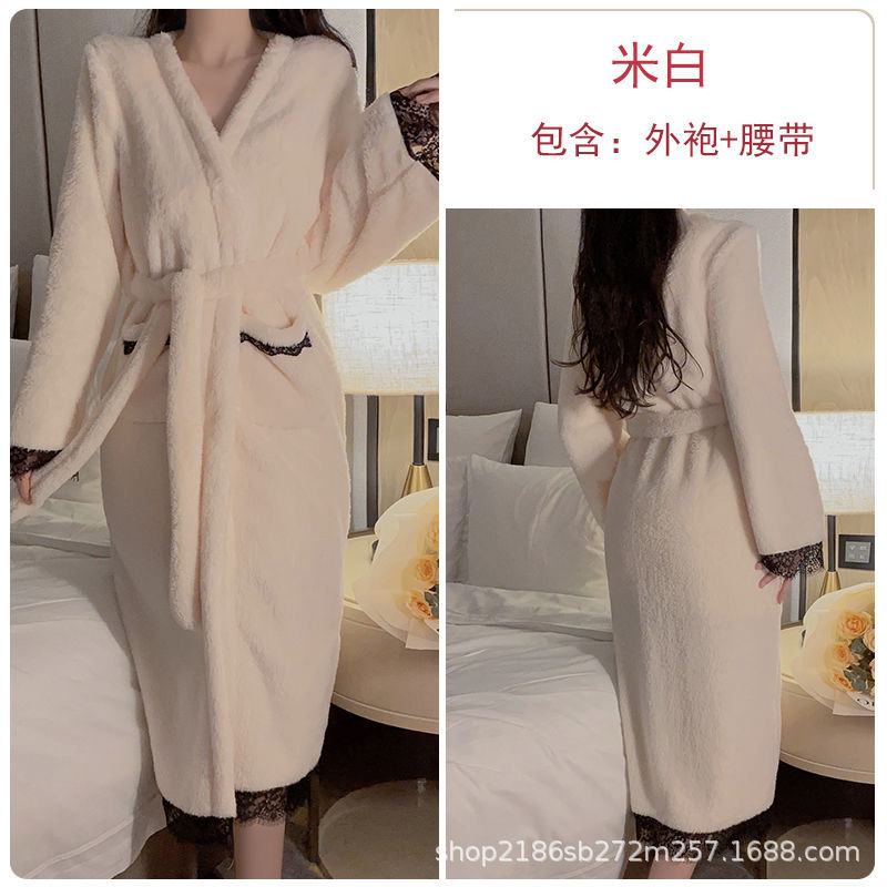 가을과 겨울 순수한 바람 달콤한 따뜻한 레이스 멜빵 패딩 가운 양면 벨벳 레이스 나이트 드레스 2 피스 세트스토어 가기