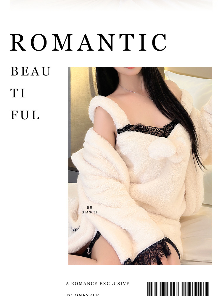 가을과 겨울 순수한 바람 달콤한 따뜻한 레이스 멜빵 패딩 가운 양면 벨벳 레이스 나이트 드레스 2 피스 세트