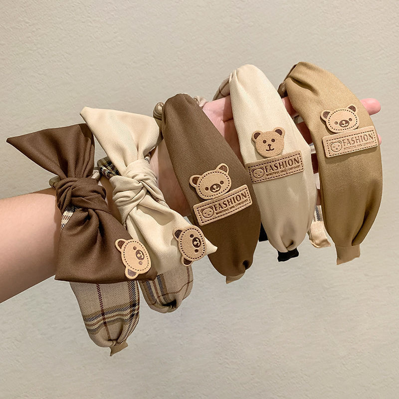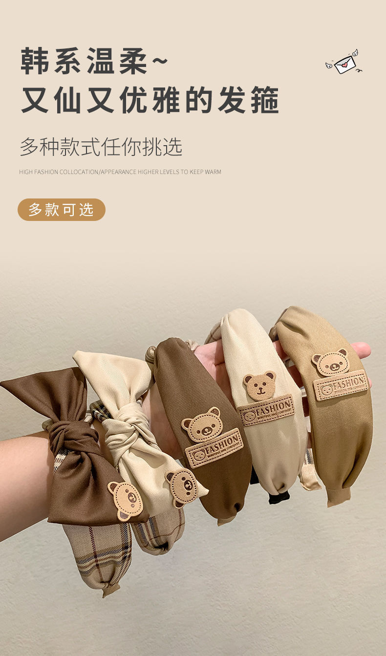 새로운 스타일 기질 활 머리띠 기질 올매치 와이드 브릴 캐슈 플라워 베어 귀여운 머리띠 워시 페이스 메이크업 압력 헤어