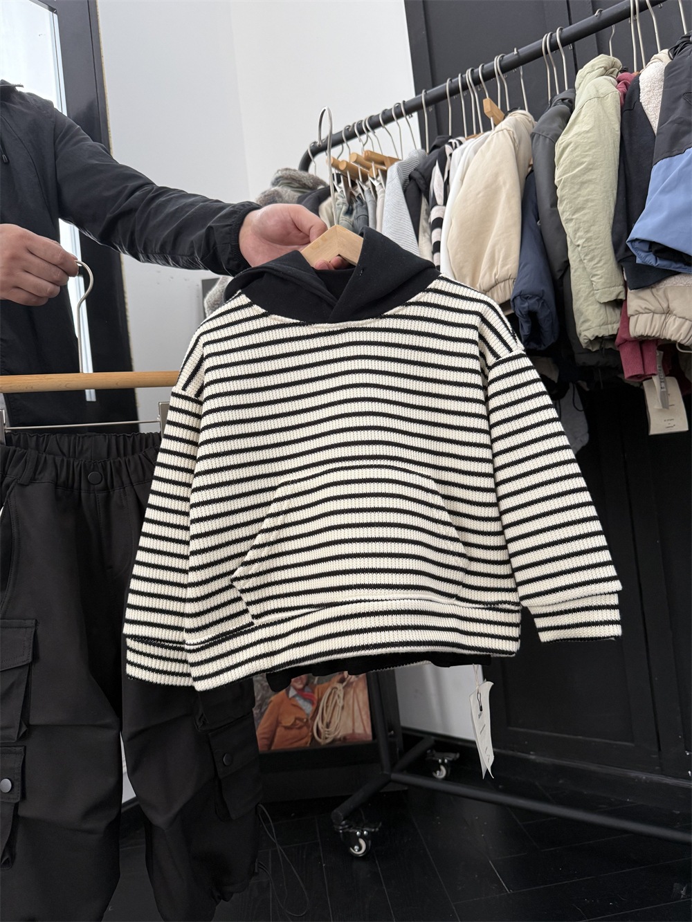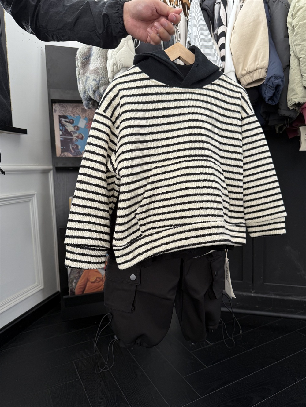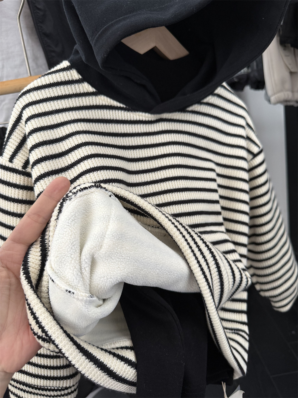 儿童冬季复合一体绒针织条纹卫衣