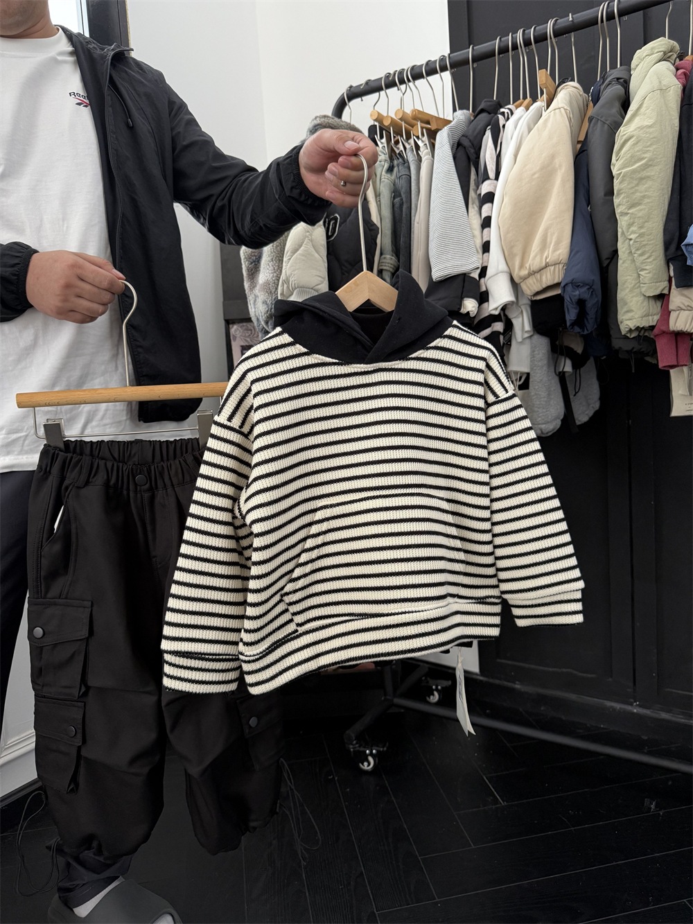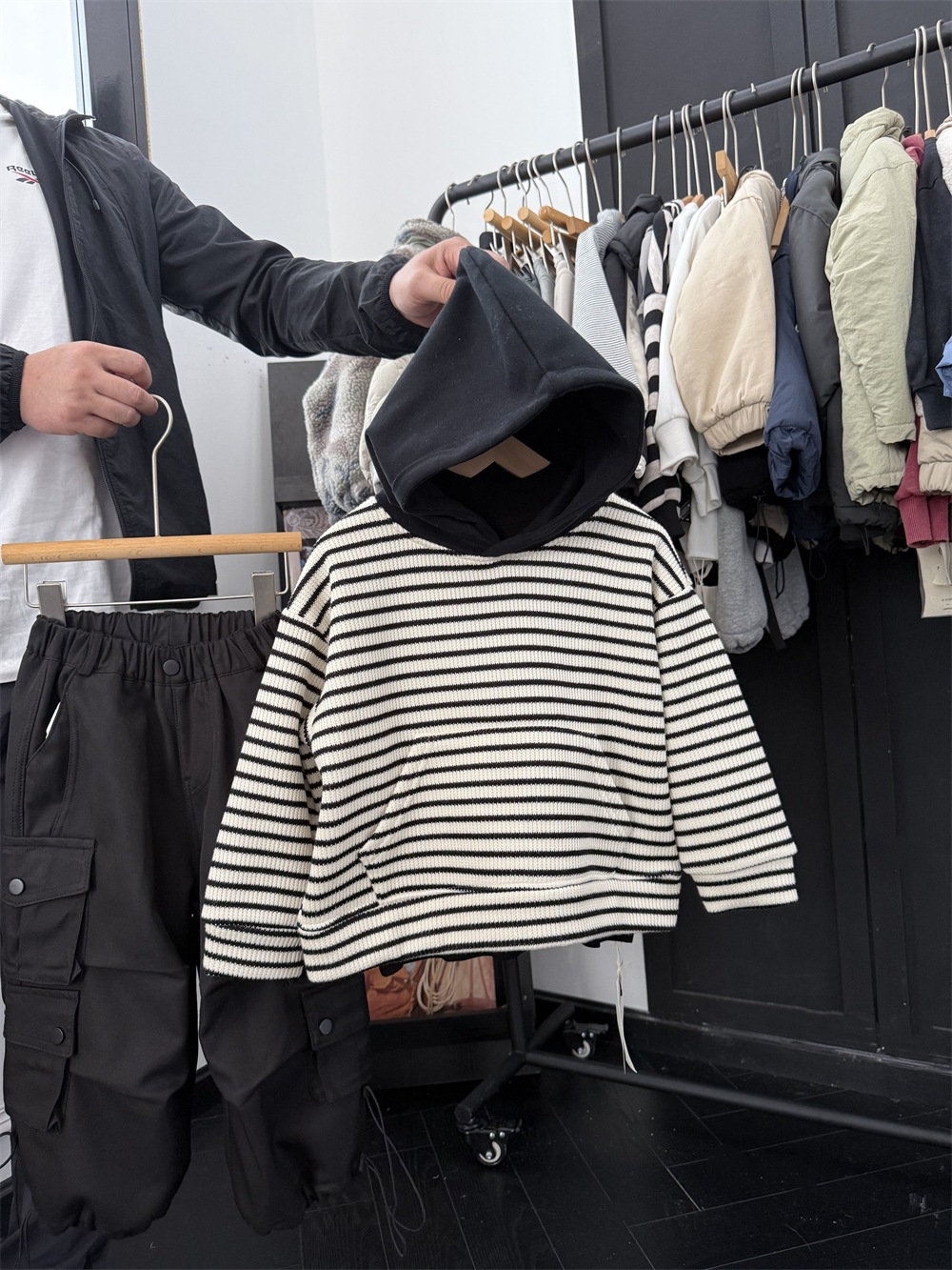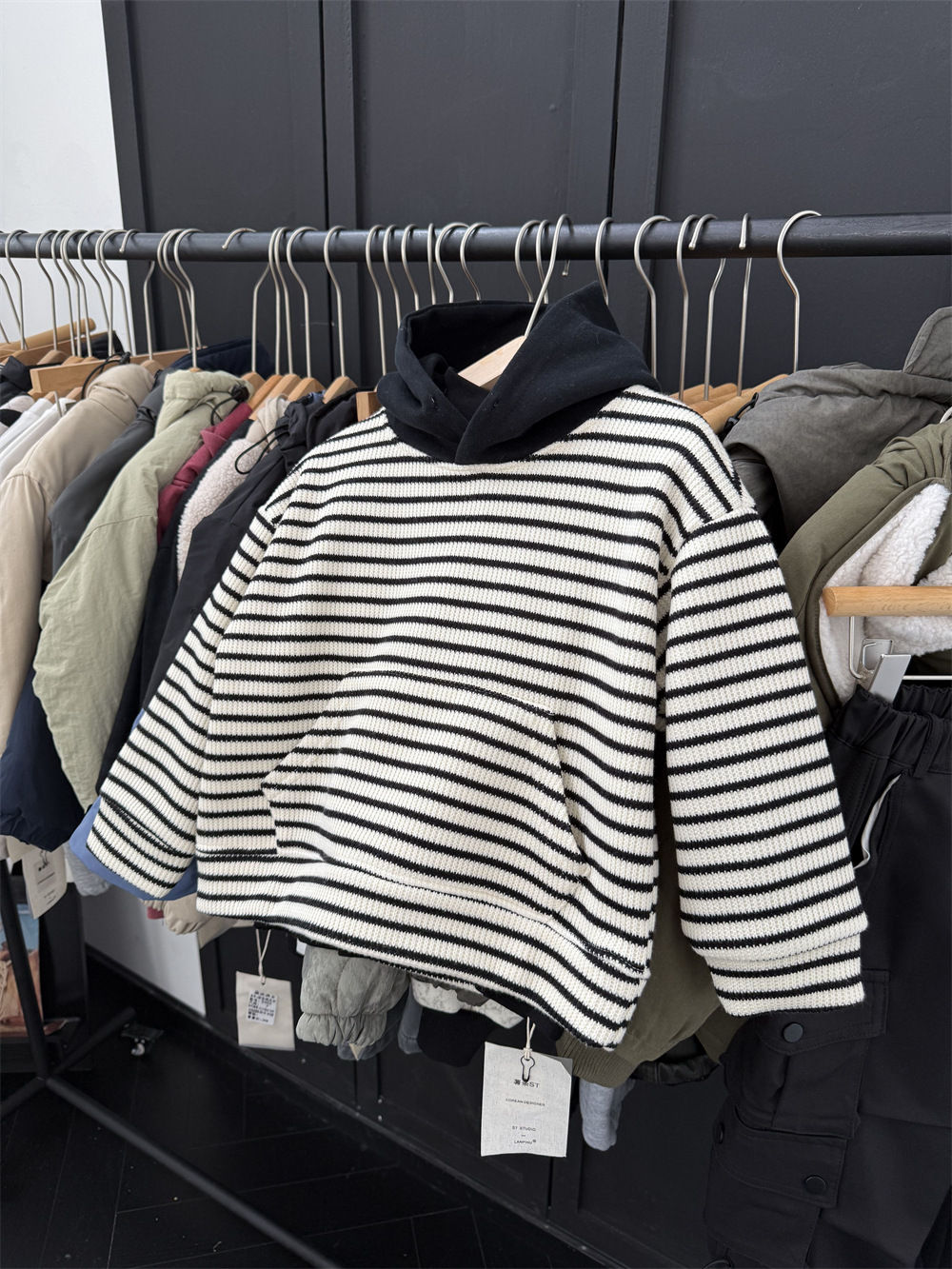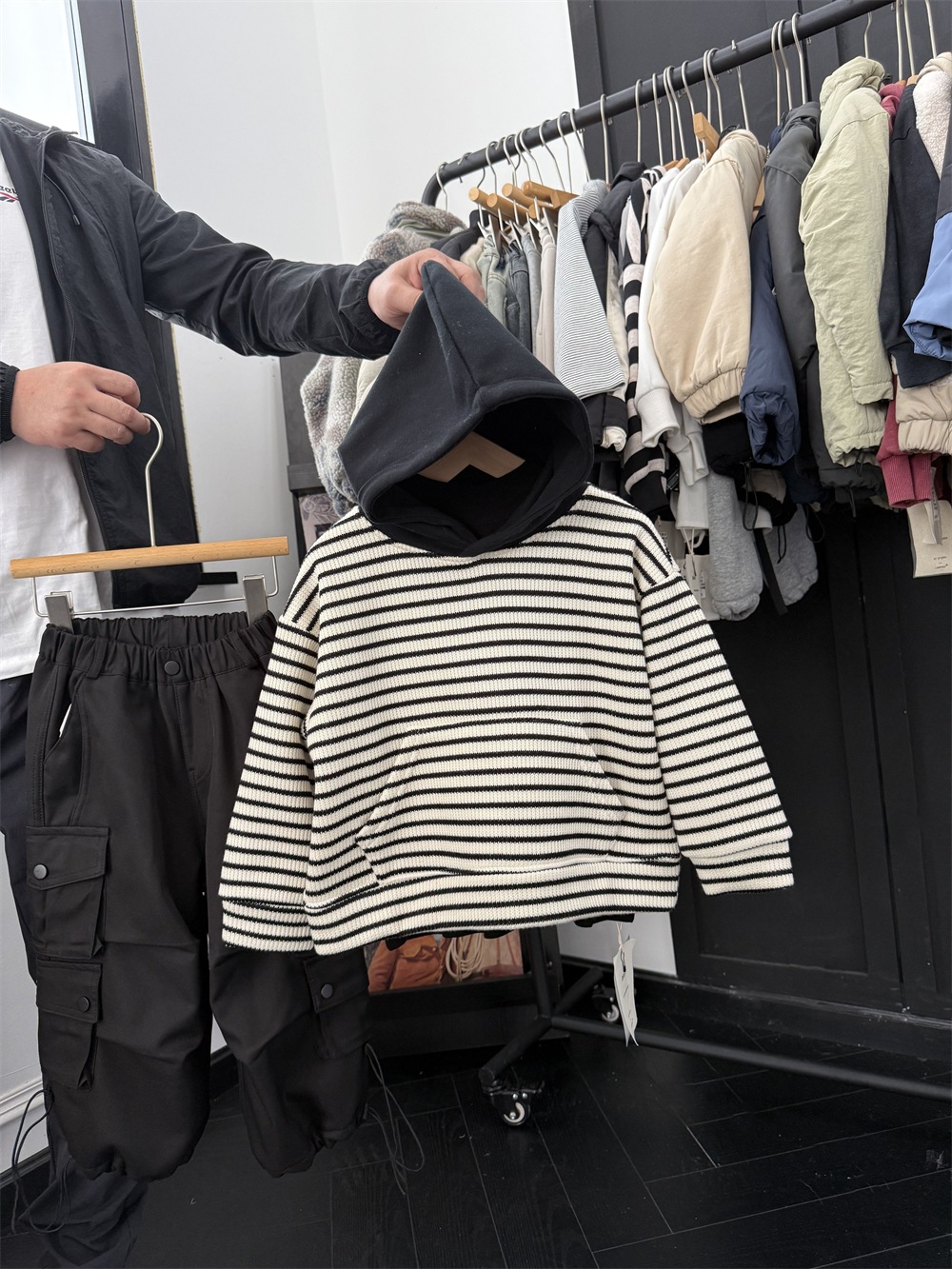 儿童冬季复合一体绒针织条纹卫衣