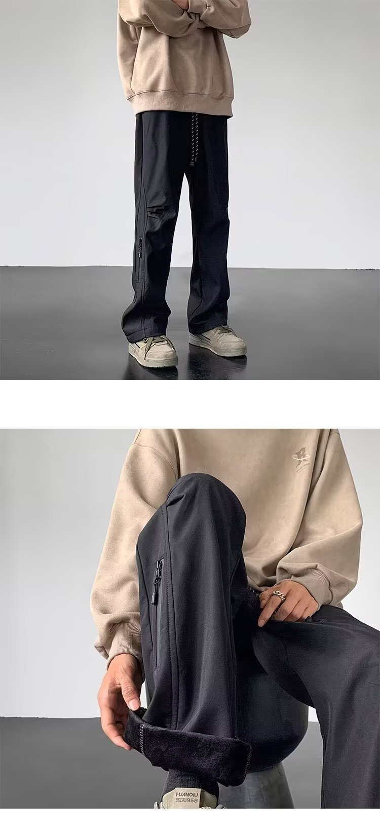 충전 바지 남자의 겨울 기모 두꺼운 따뜻한 지퍼 방수 등산 바지 잘 생긴 느슨한 직선 캐주얼 바지스토어 가기