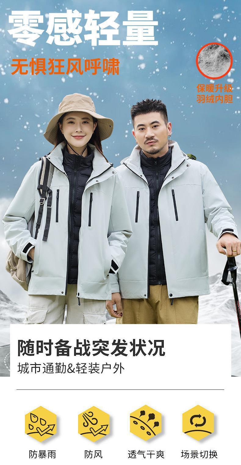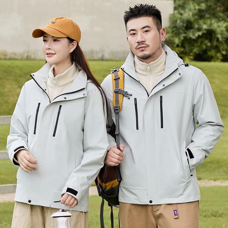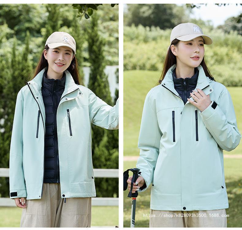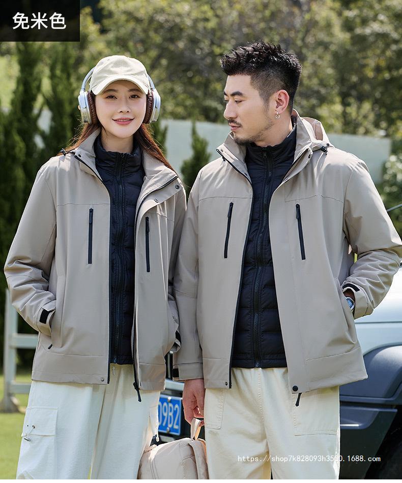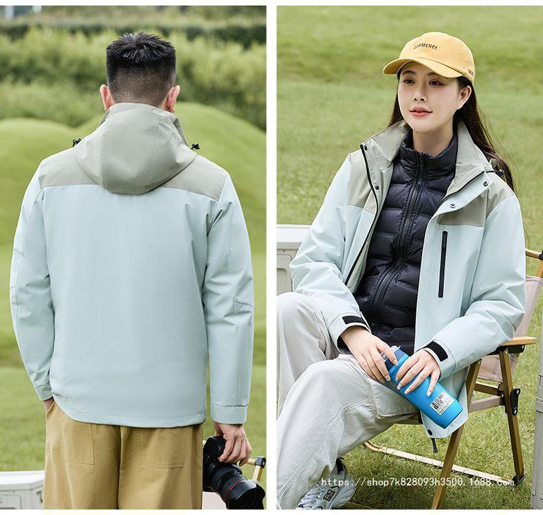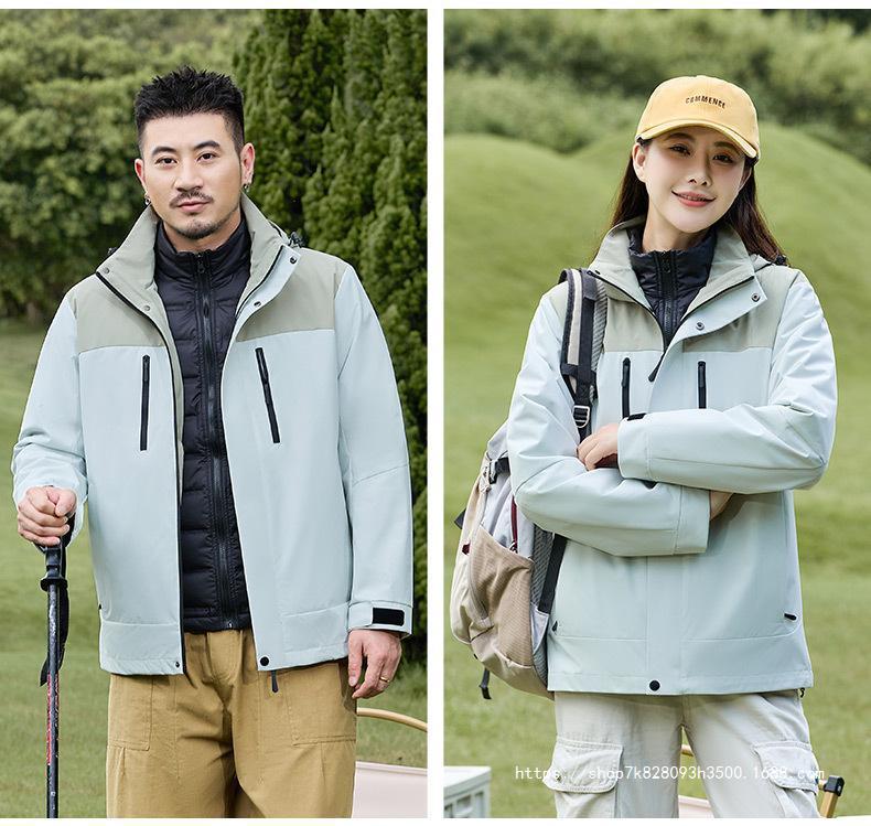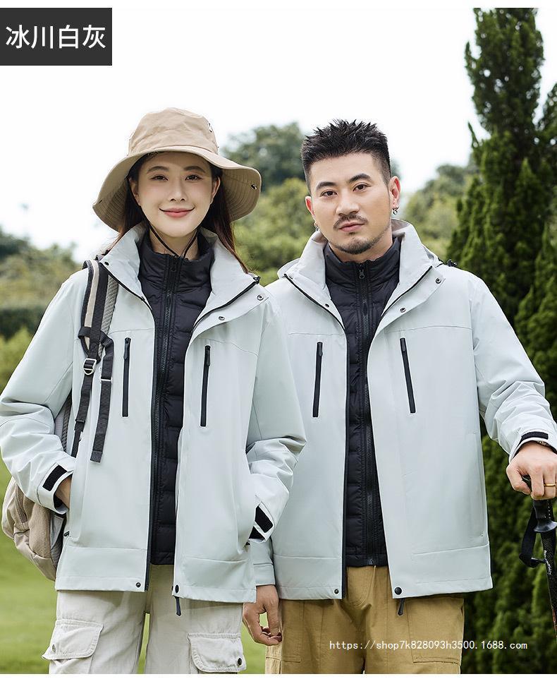 남성용 야외 방풍 방수 3 대 1 분리 가능한 등산 세트 여성용 다운 작업복 자수 없음스토어 가기
