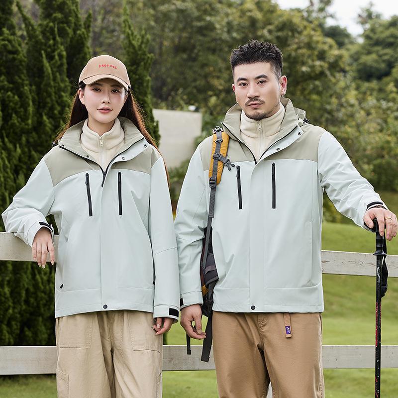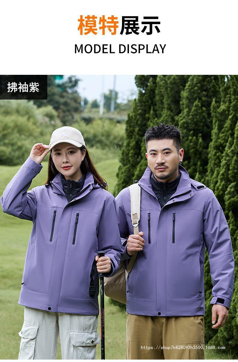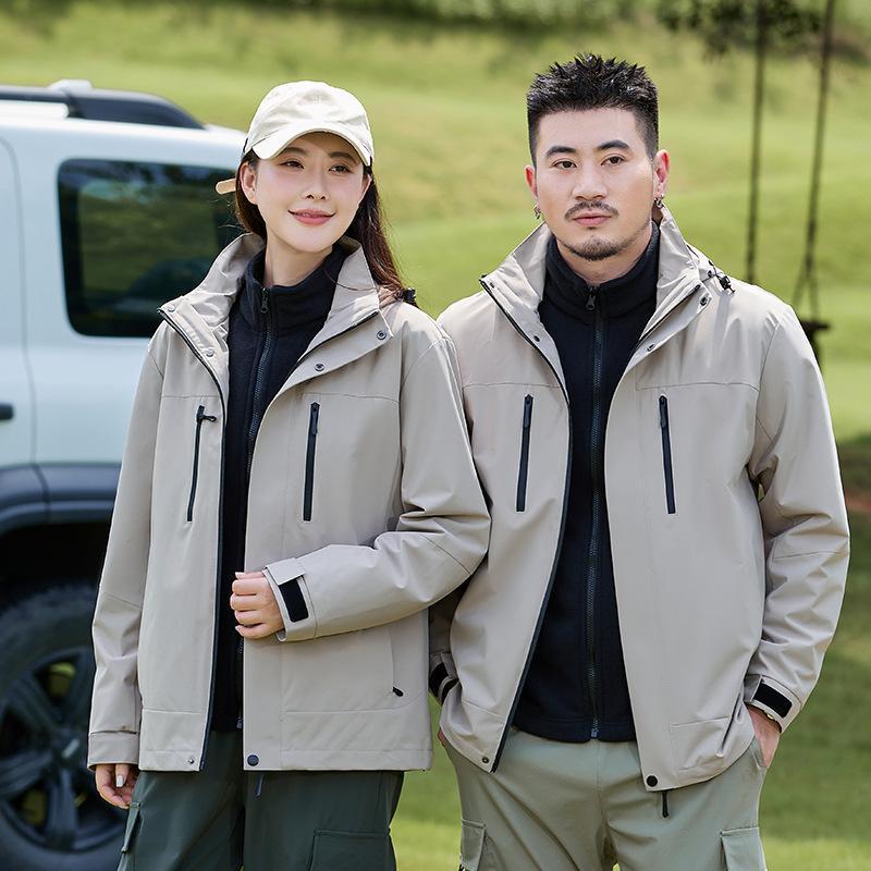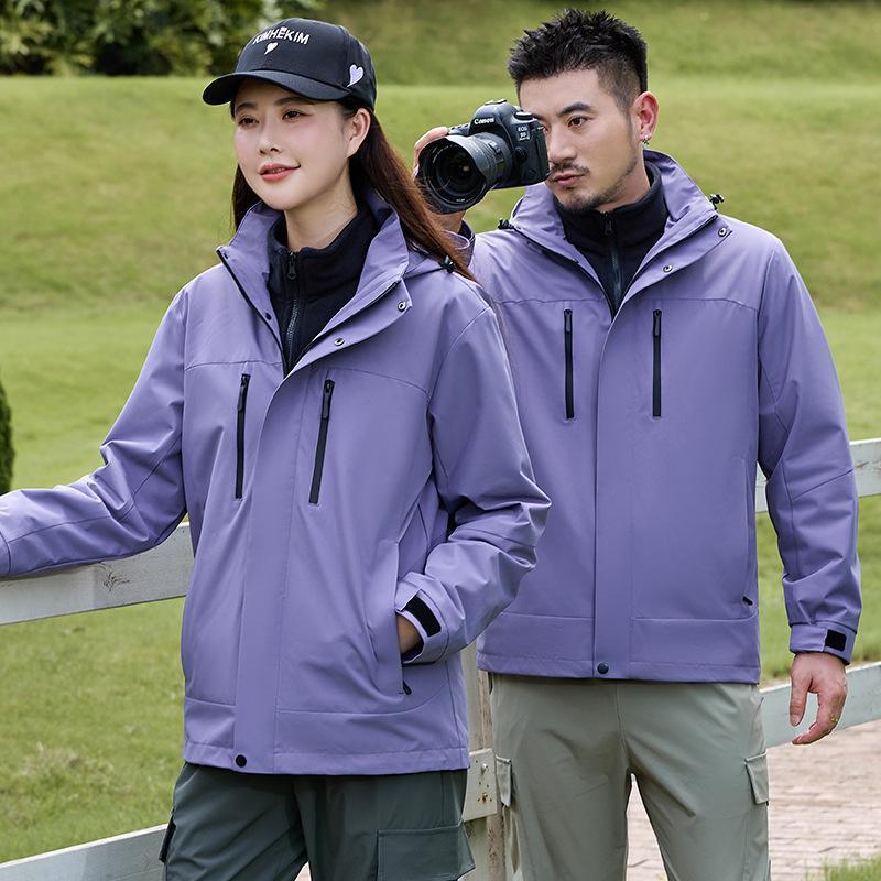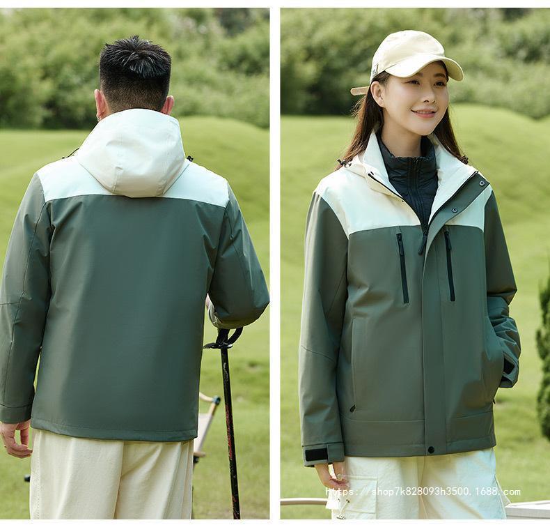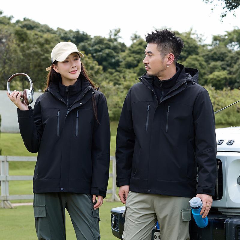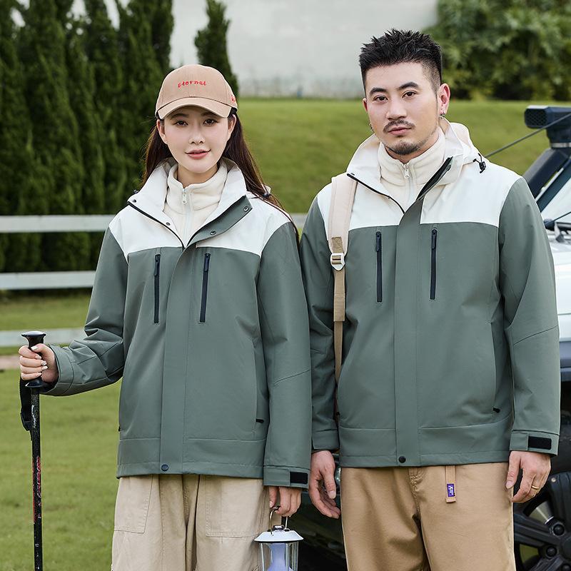 남성용 야외 방풍 방수 3 대 1 분리 가능한 등산 세트 여성용 다운 작업복 자수 없음스토어 가기
