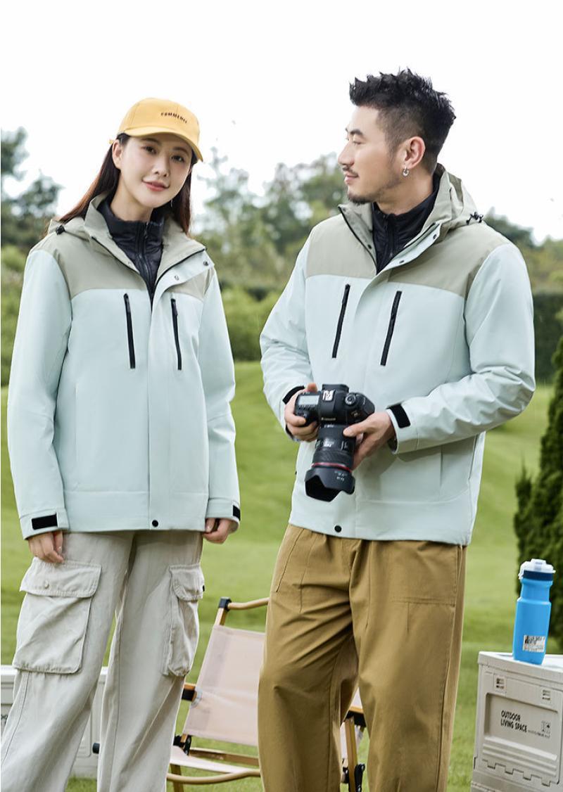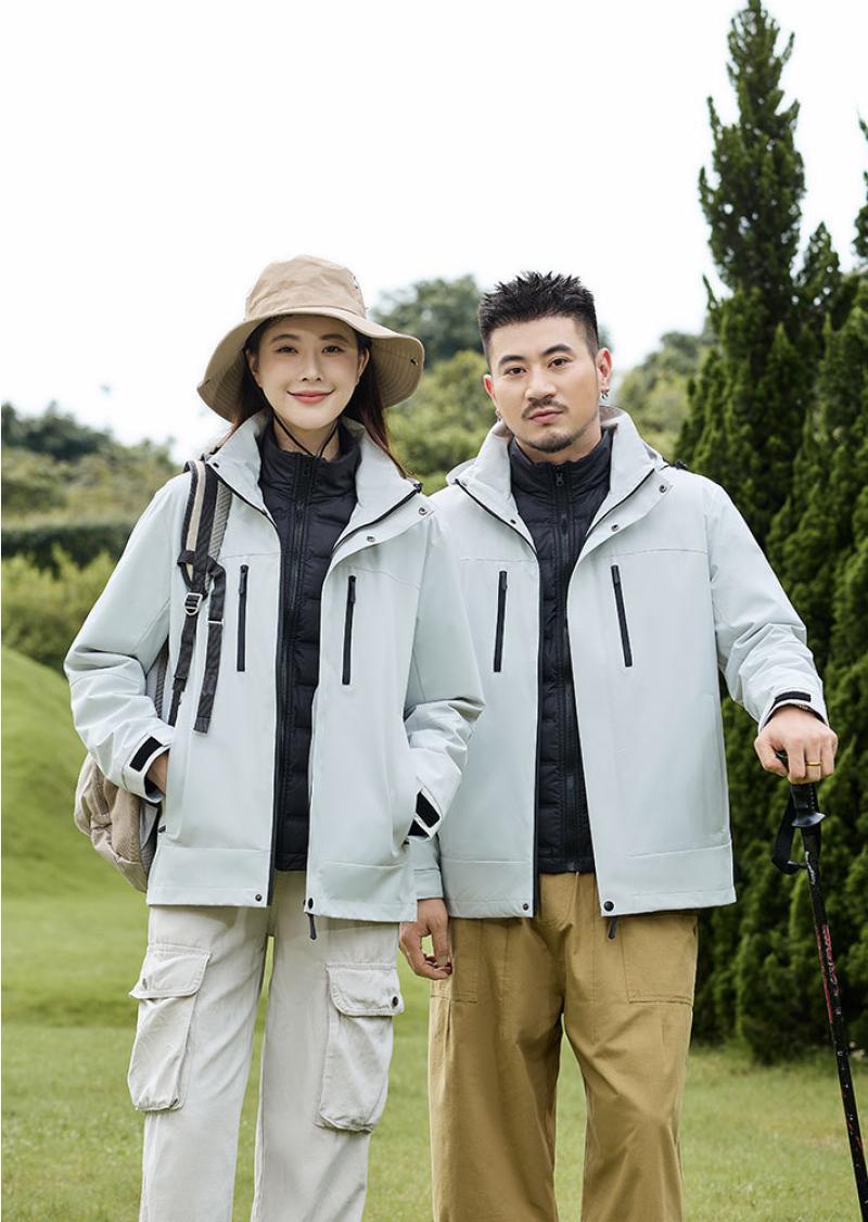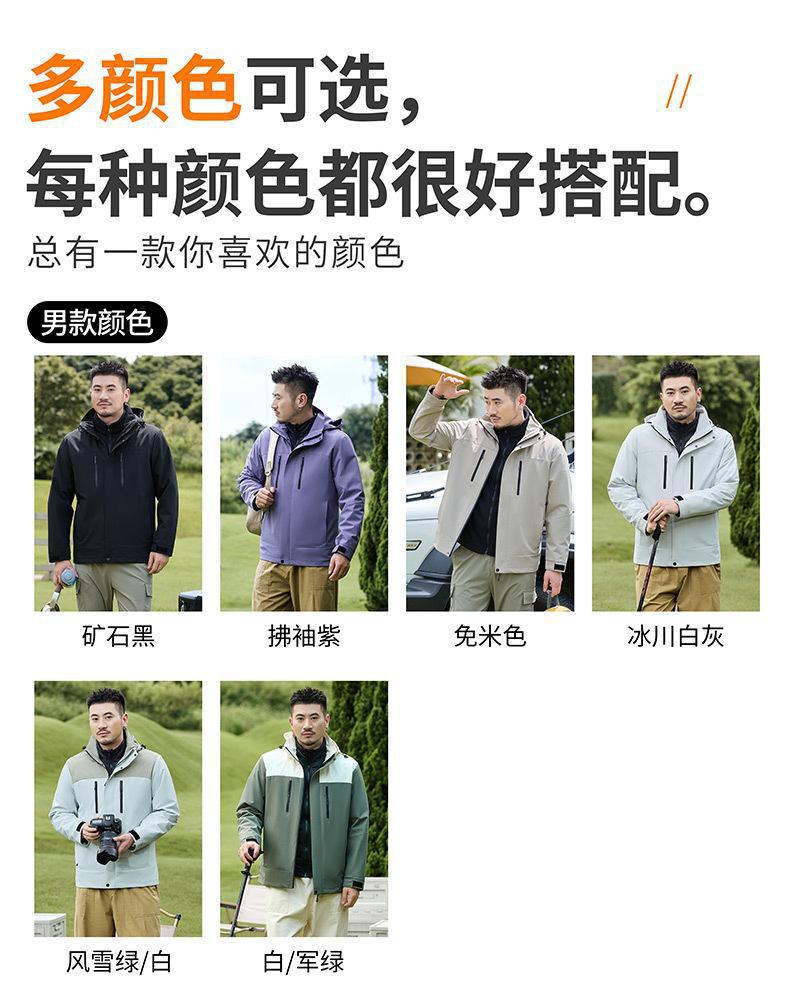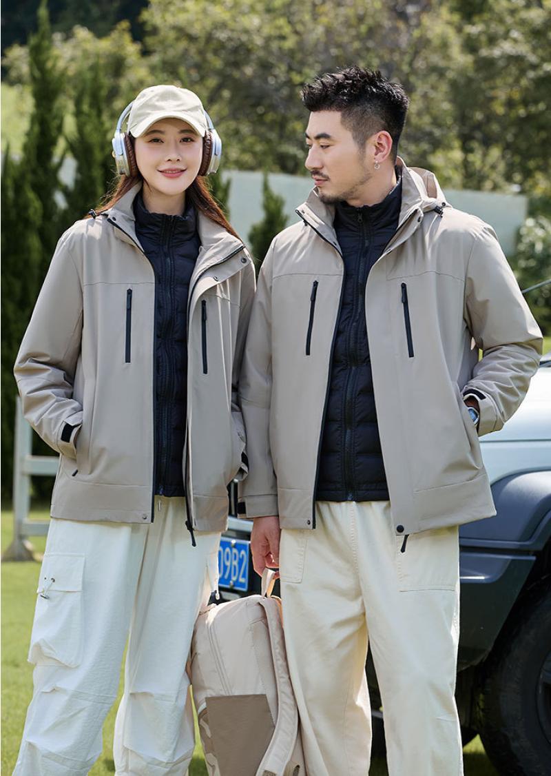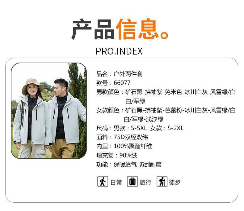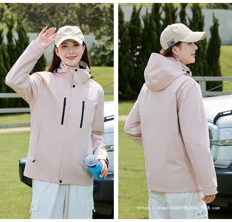 남성용 야외 방풍 방수 3 대 1 분리 가능한 등산 세트 여성용 다운 작업복 자수 없음스토어 가기