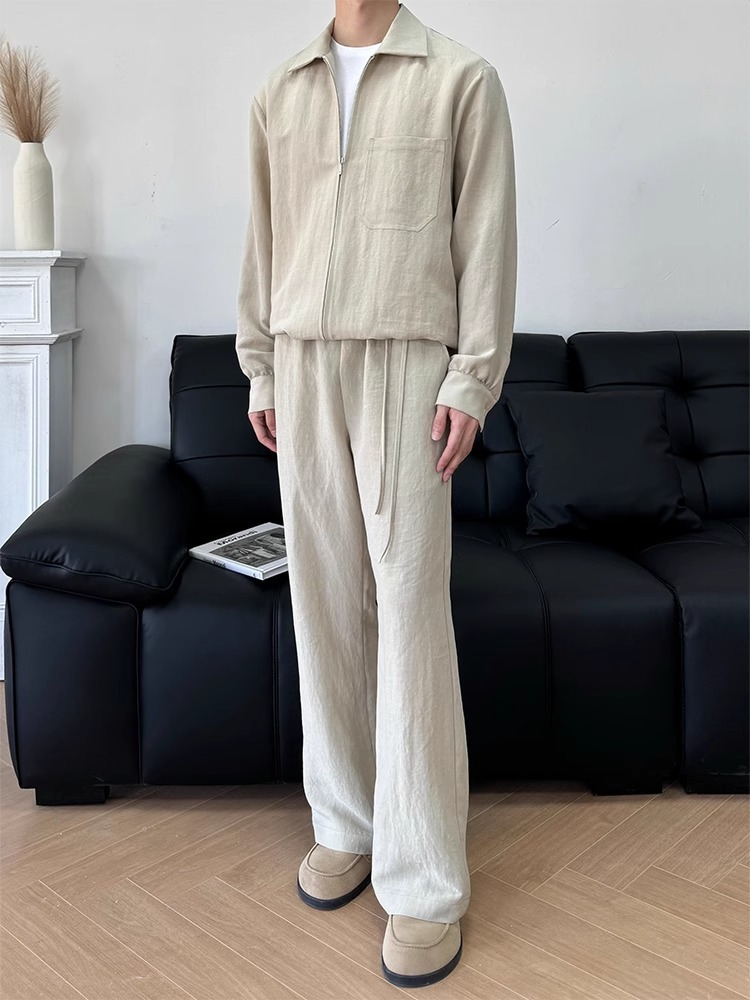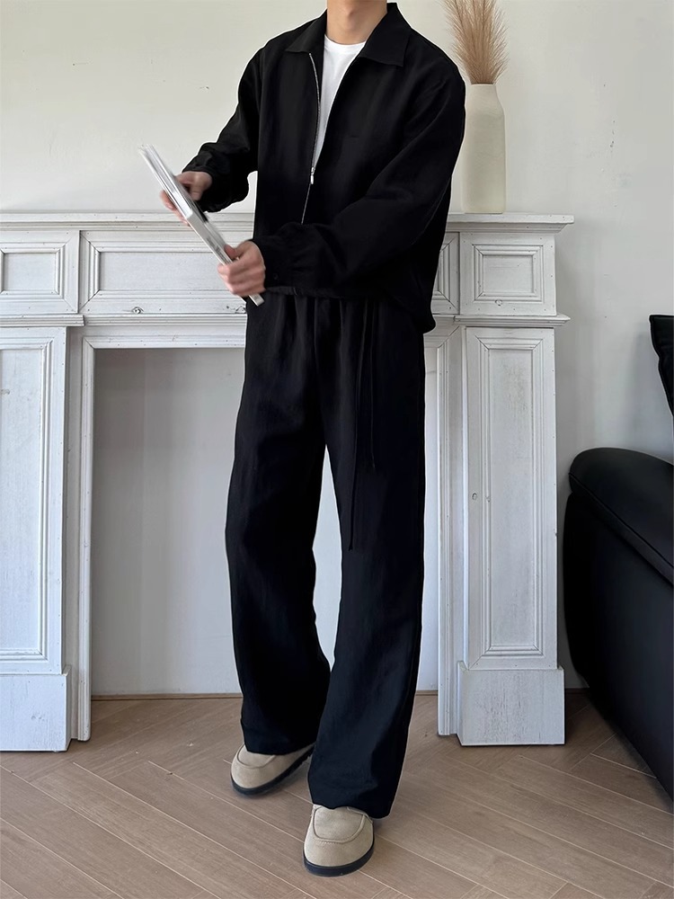 미국 복고풍 유행 캐주얼 바지 남자 2024 년 봄과 가을 새로운 느슨한 다리 넓은 다리 올매치 긴 바지