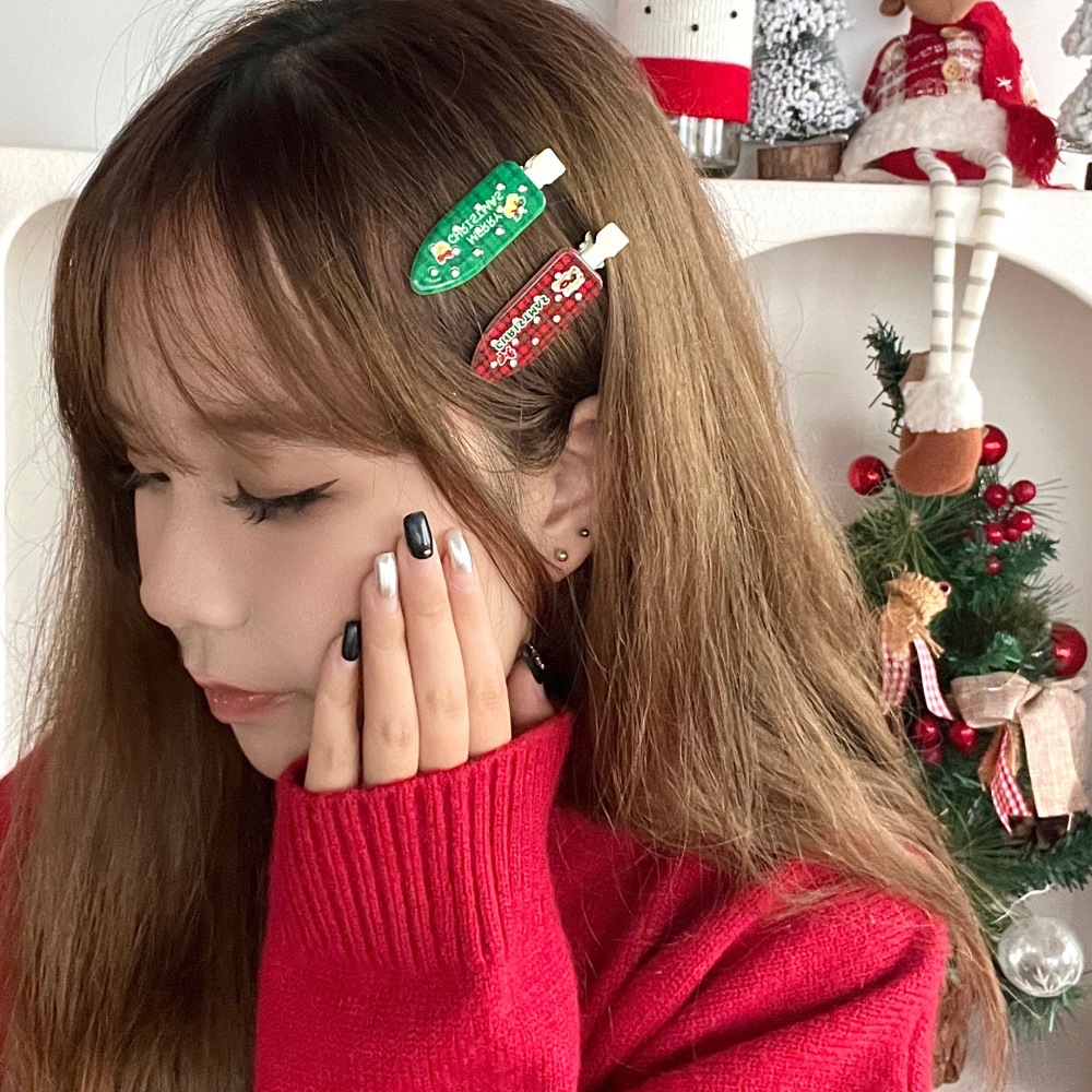 크리스마스 귀여운 격자 무늬 헤어핀 소녀의 모든 경기 원활한 클립 크리스마스 장식 Bangs 사이드 클립 스타 깨진 헤어핀