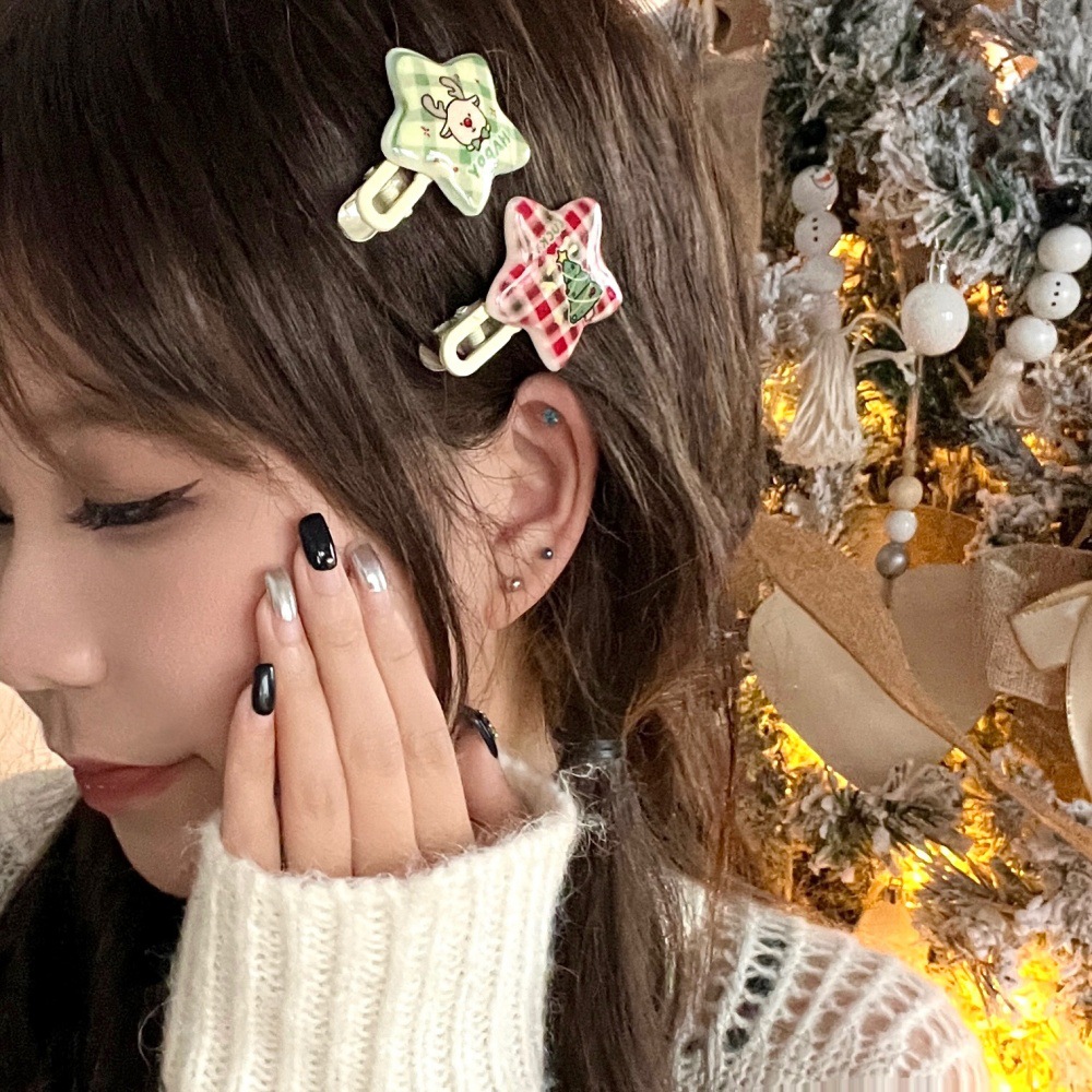 크리스마스 귀여운 격자 무늬 헤어핀 소녀의 모든 경기 원활한 클립 크리스마스 장식 Bangs 사이드 클립 스타 깨진 헤어핀스토어 가기