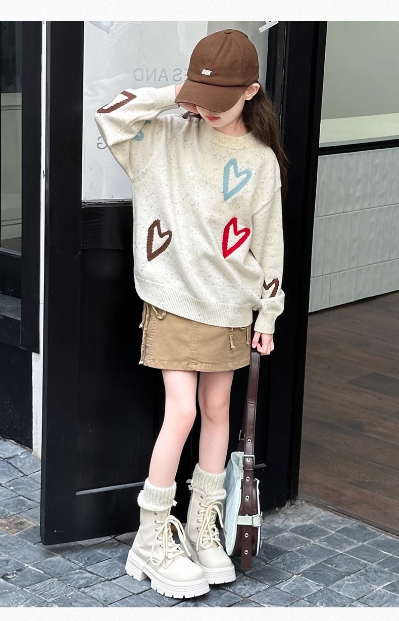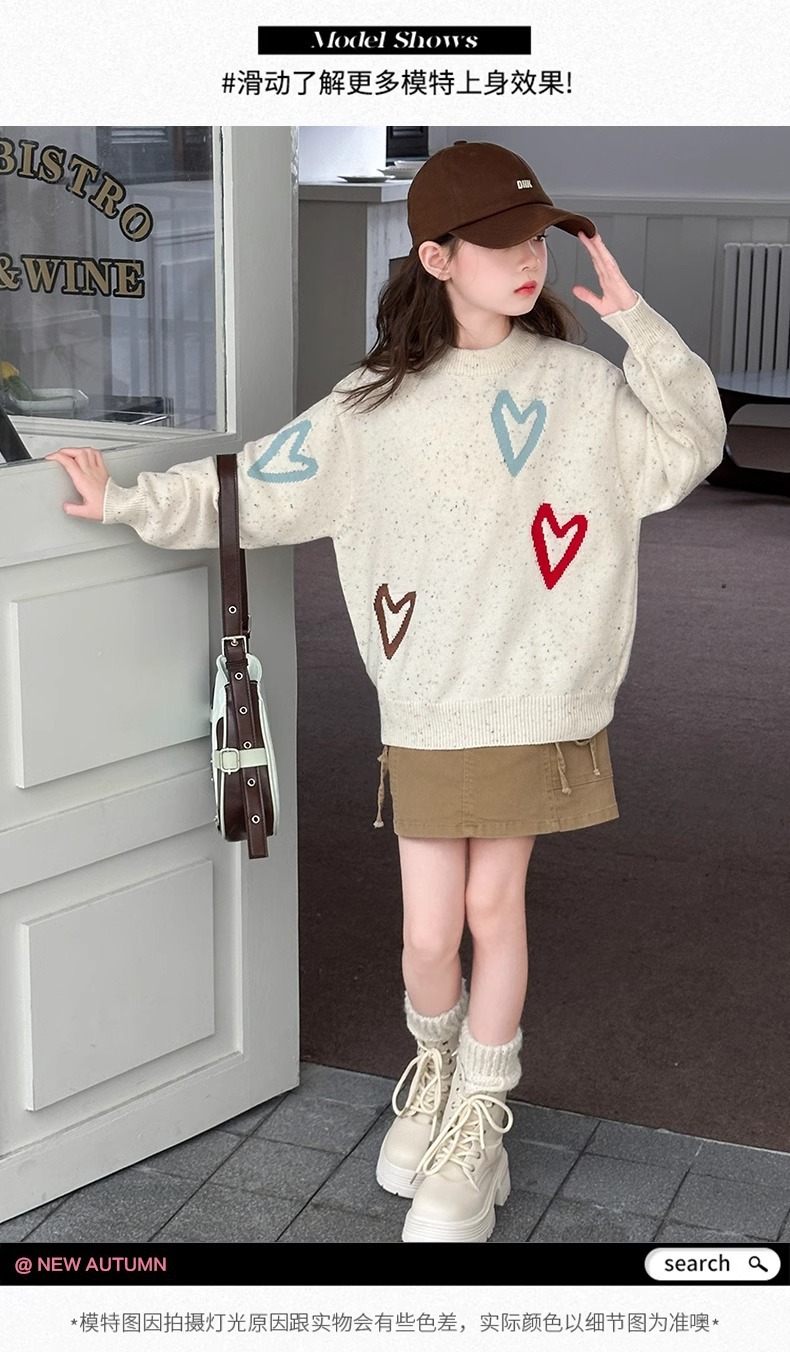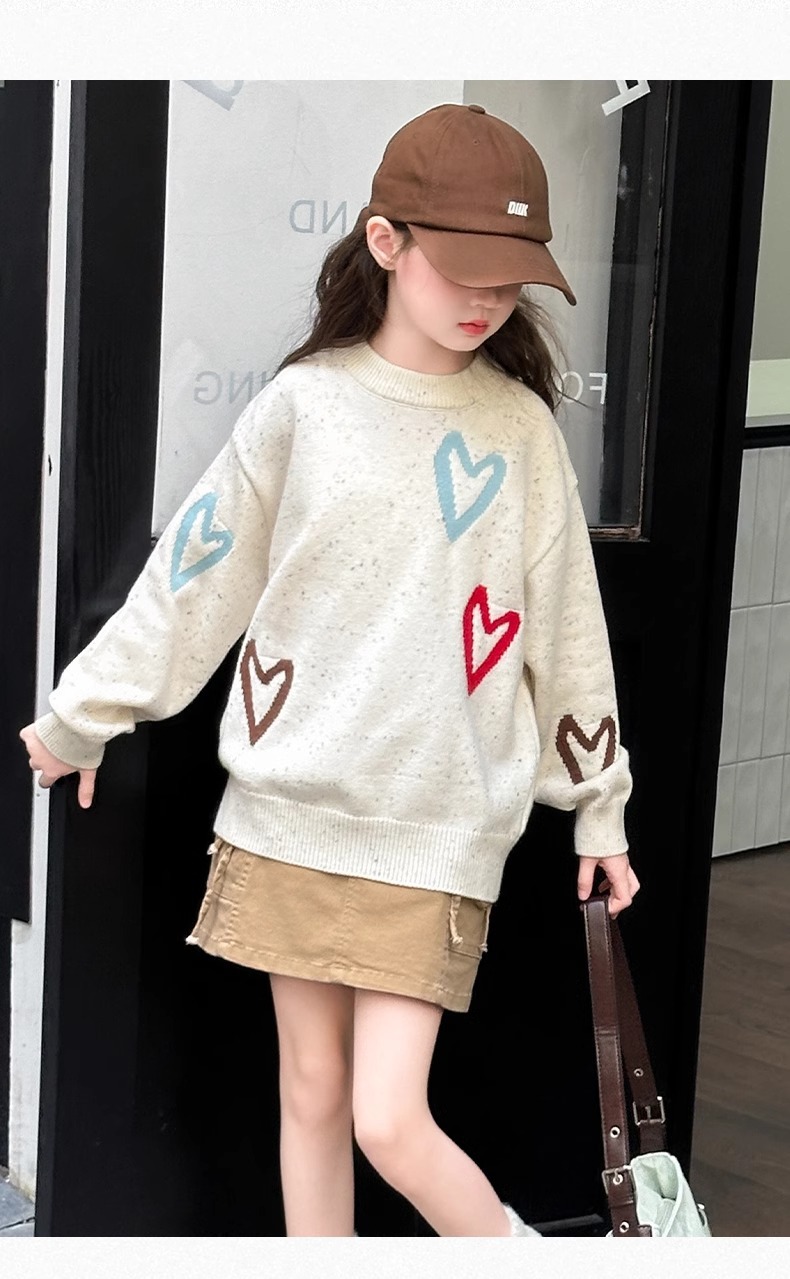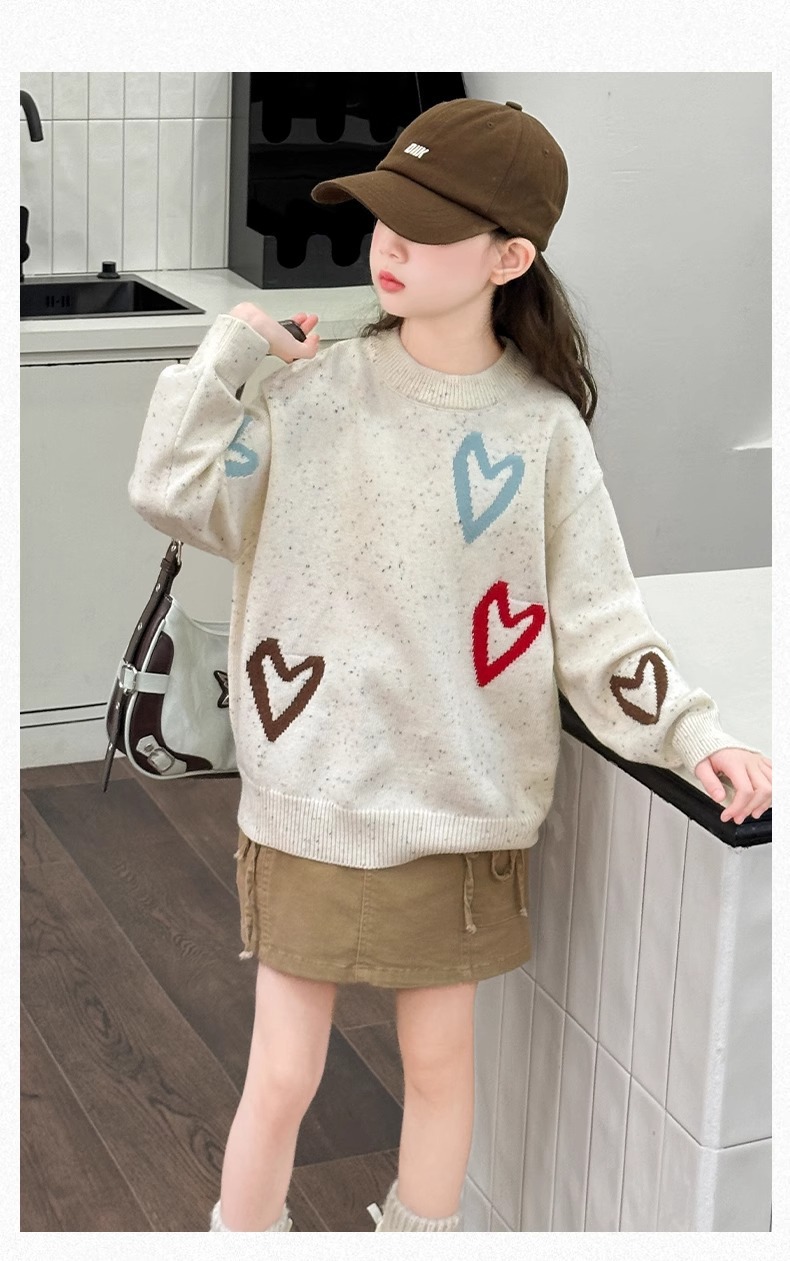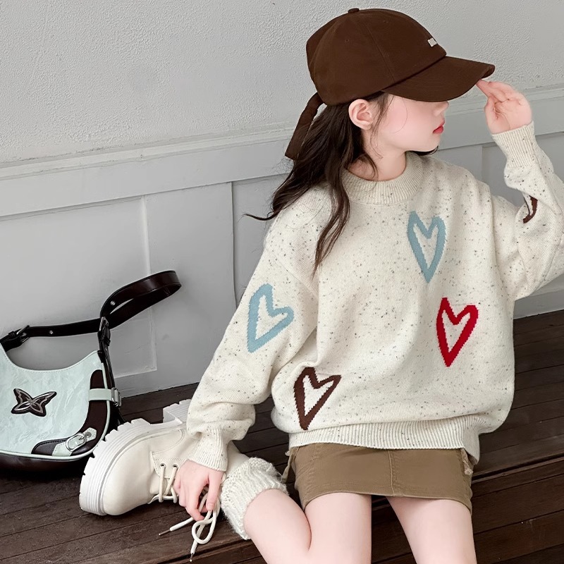 소녀들의 가을과 겨울 2024 새로운 어린이 한국 니트 스웨터 가을 서양식 소녀 풀오버 패셔너블 탑스토어 가기