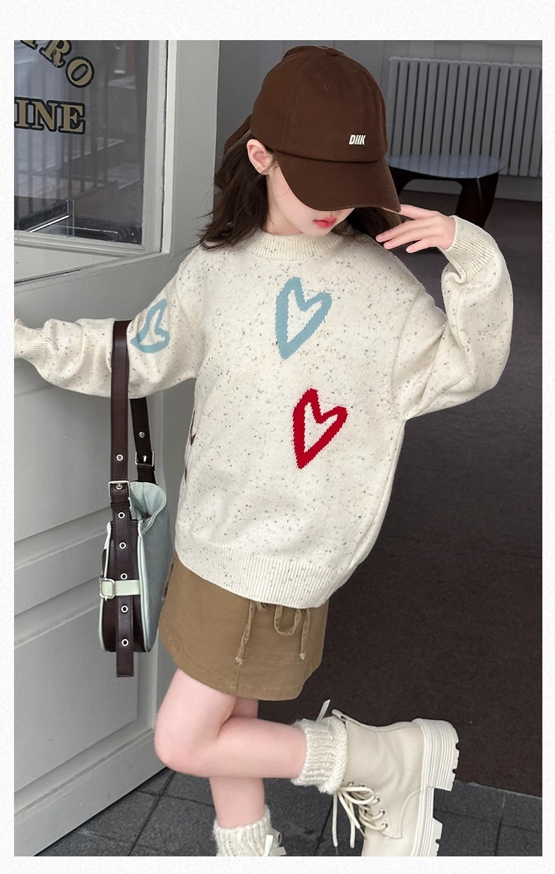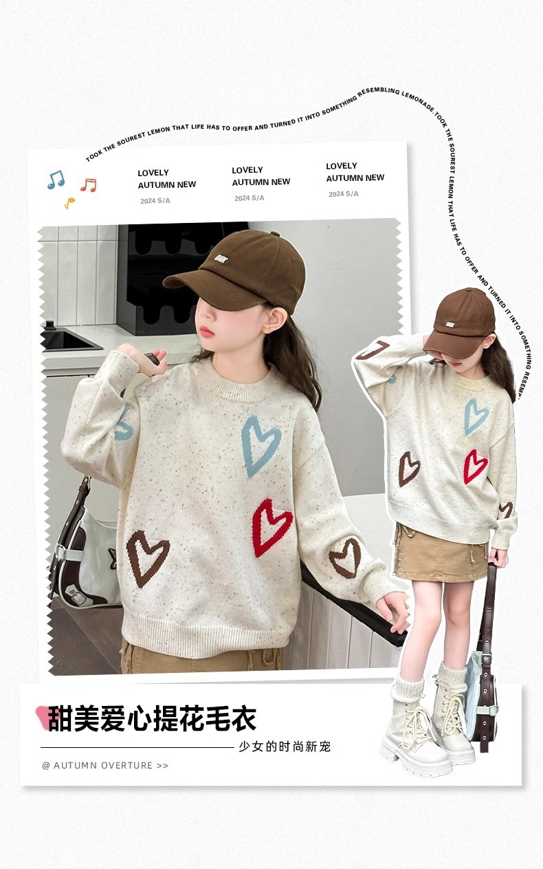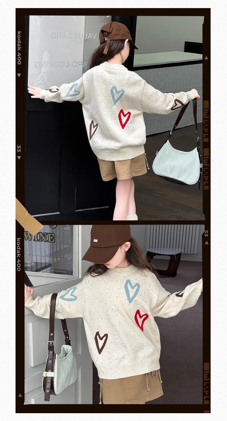 소녀들의 가을과 겨울 2024 새로운 어린이 한국 니트 스웨터 가을 서양식 소녀 풀오버 패셔너블 탑